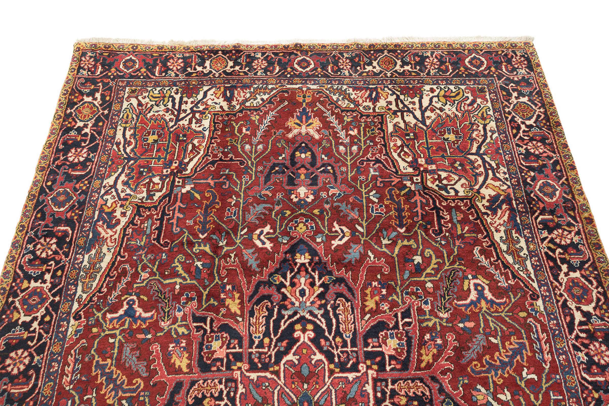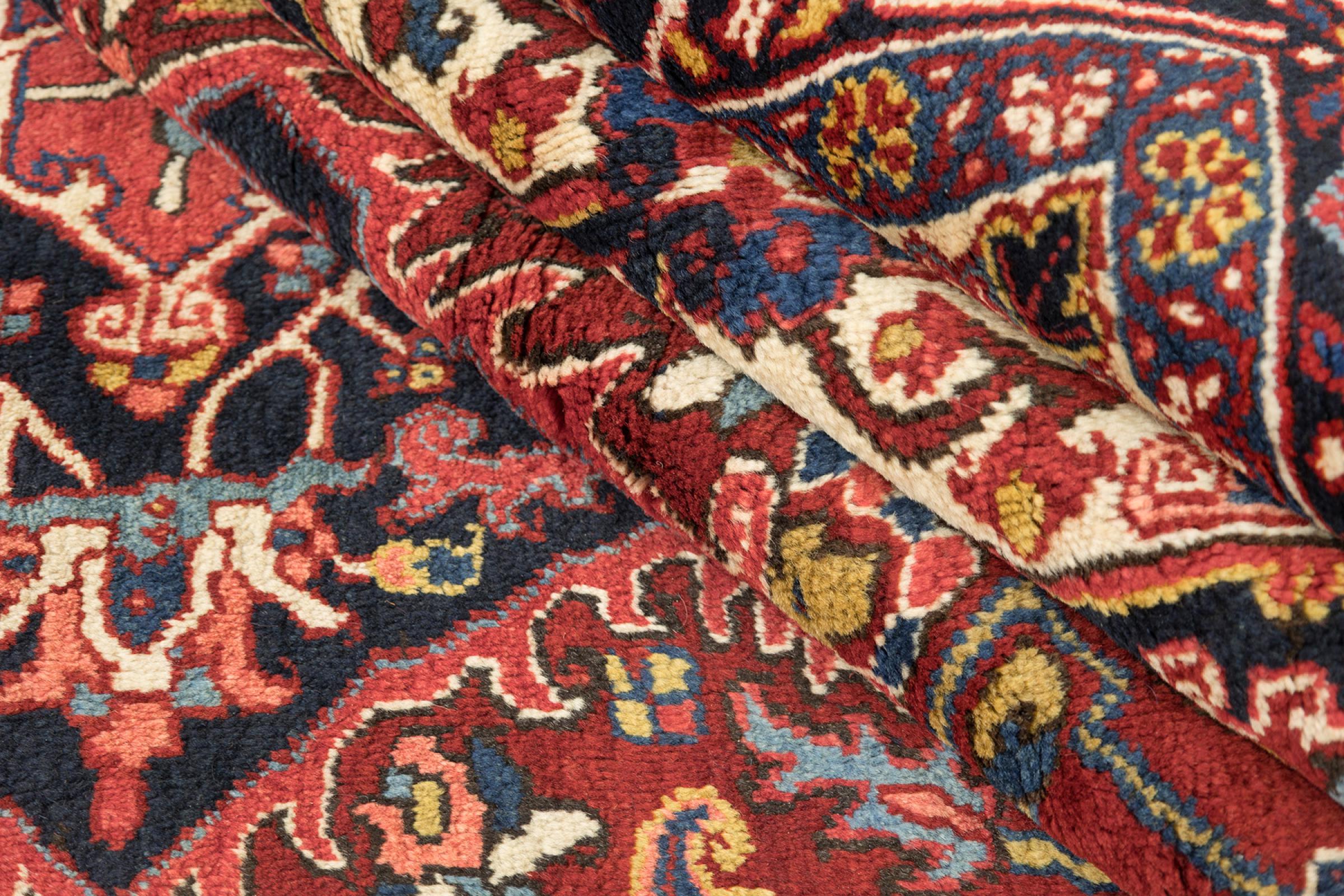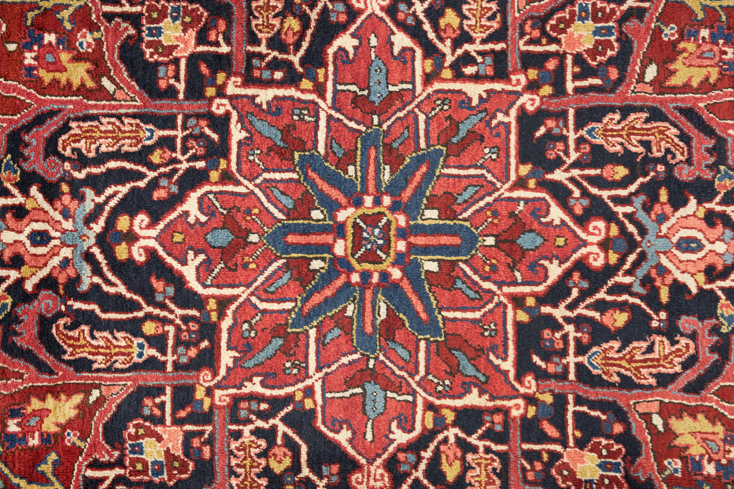This Heriz carpet is a beautiful example of Persian carpet craftsmanship. Its rustic design is a testament to its durability. It was hand-knotted in the city of Heriz, which is located near Tabriz in north-west Iran. Anyone looking for a Persian rug that will give pleasure for a long time and is highly modern will love this Heriz. The ornaments of Heriz rugs are extremely popular today and are seen as very modern. You will never give up a rug like this again.