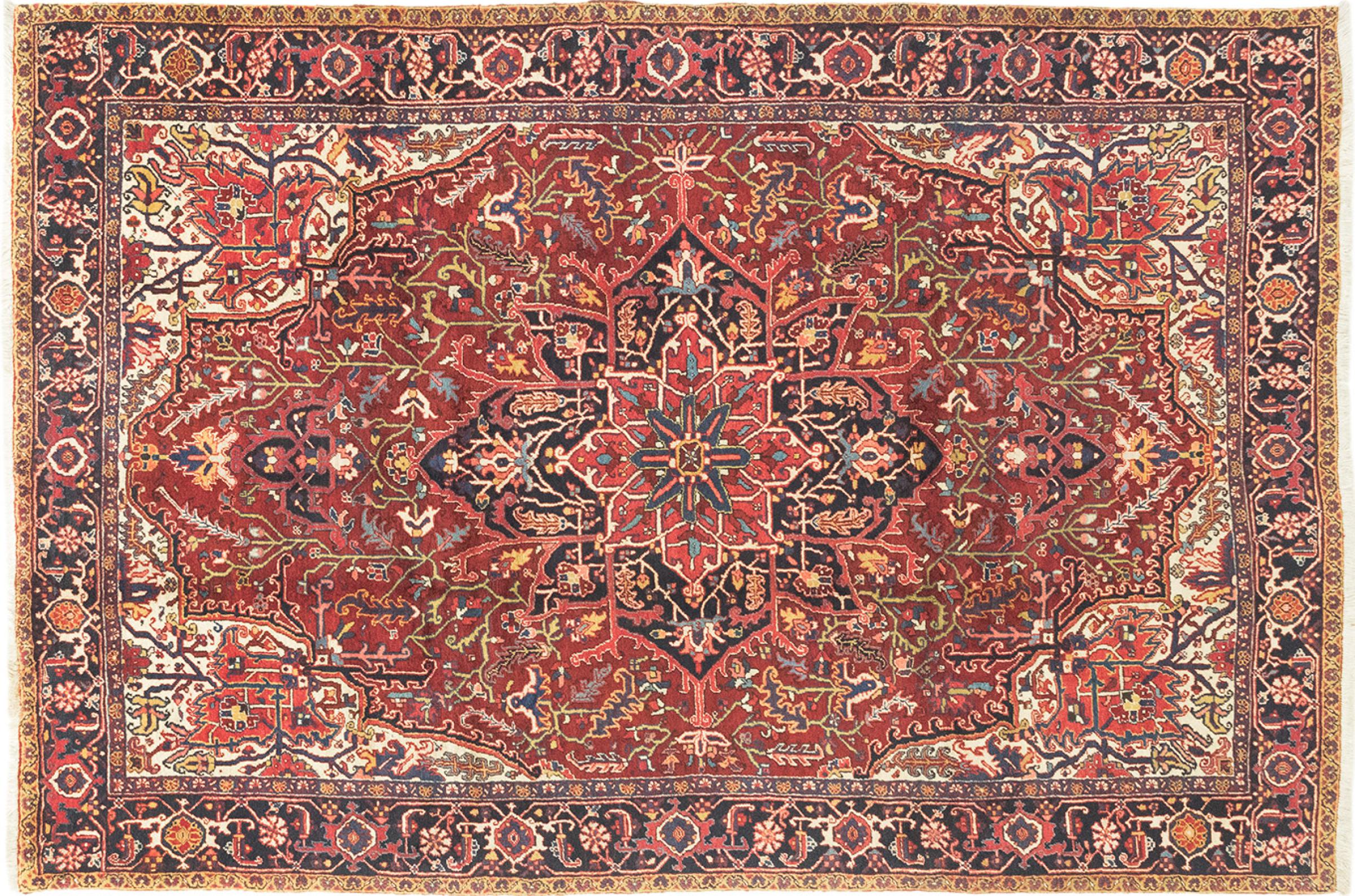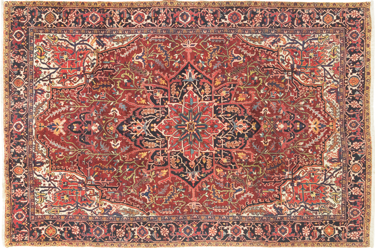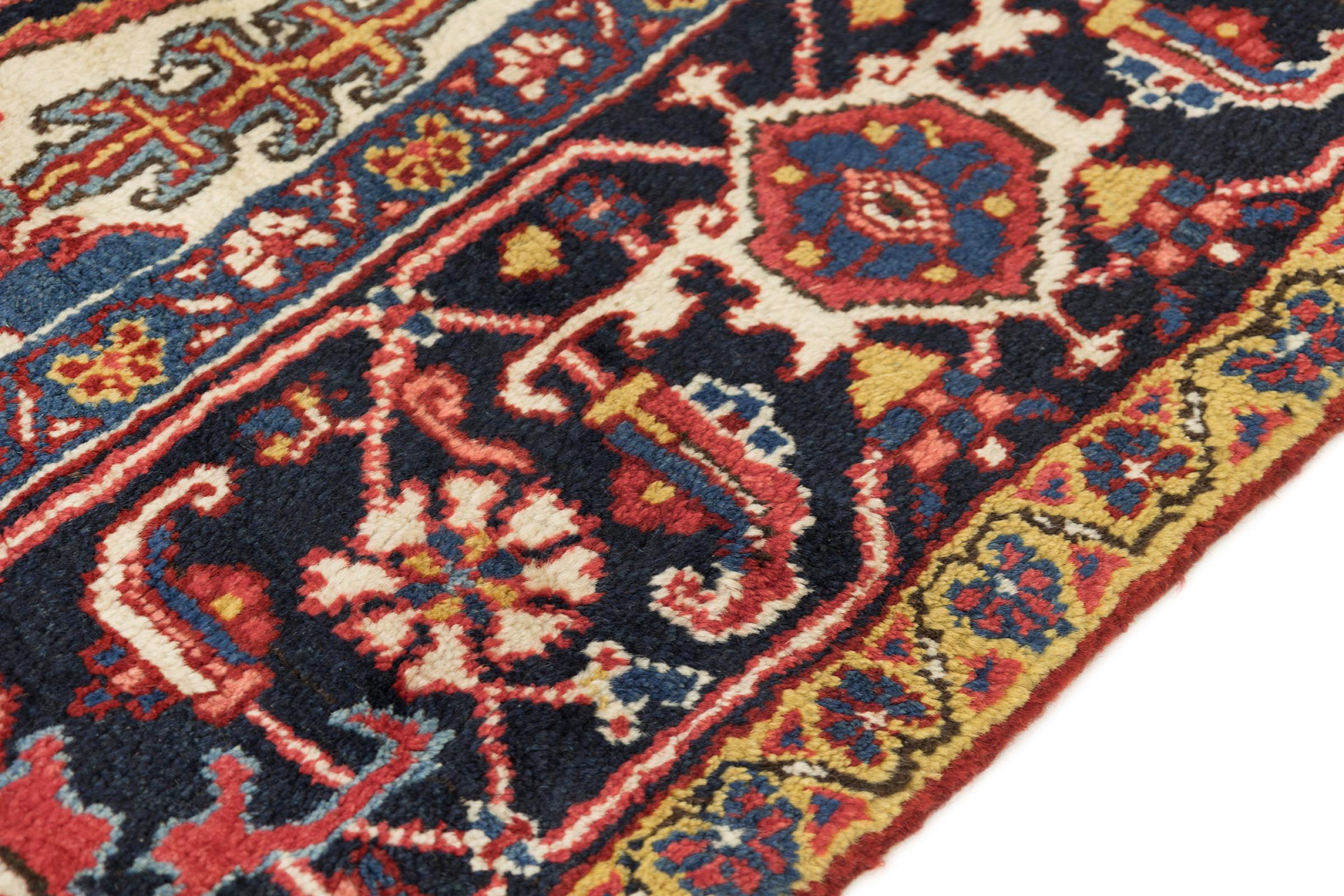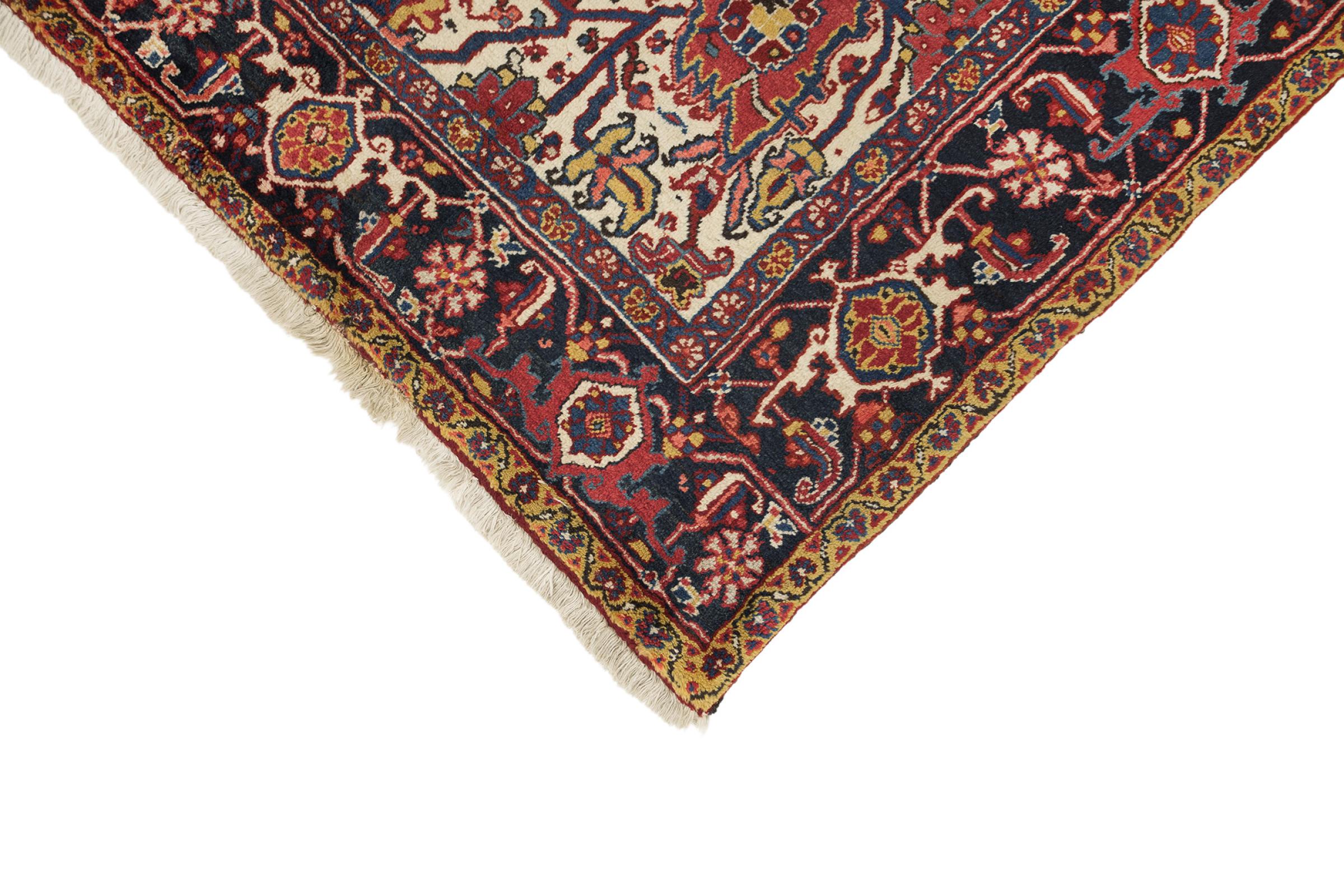 This Heriz carpet is a beautiful example of Persian carpet craftsmanship. Its rustic design is a testament to its durability. It was hand-knotted in the city of Heriz, which is located near Tabriz in north-west Iran. Anyone looking for a Persian rug that will give pleasure for a long time and is highly modern will love this Heriz. The ornaments of Heriz rugs are extremely popular today and are seen as very modern. You will never give up a rug like this again.