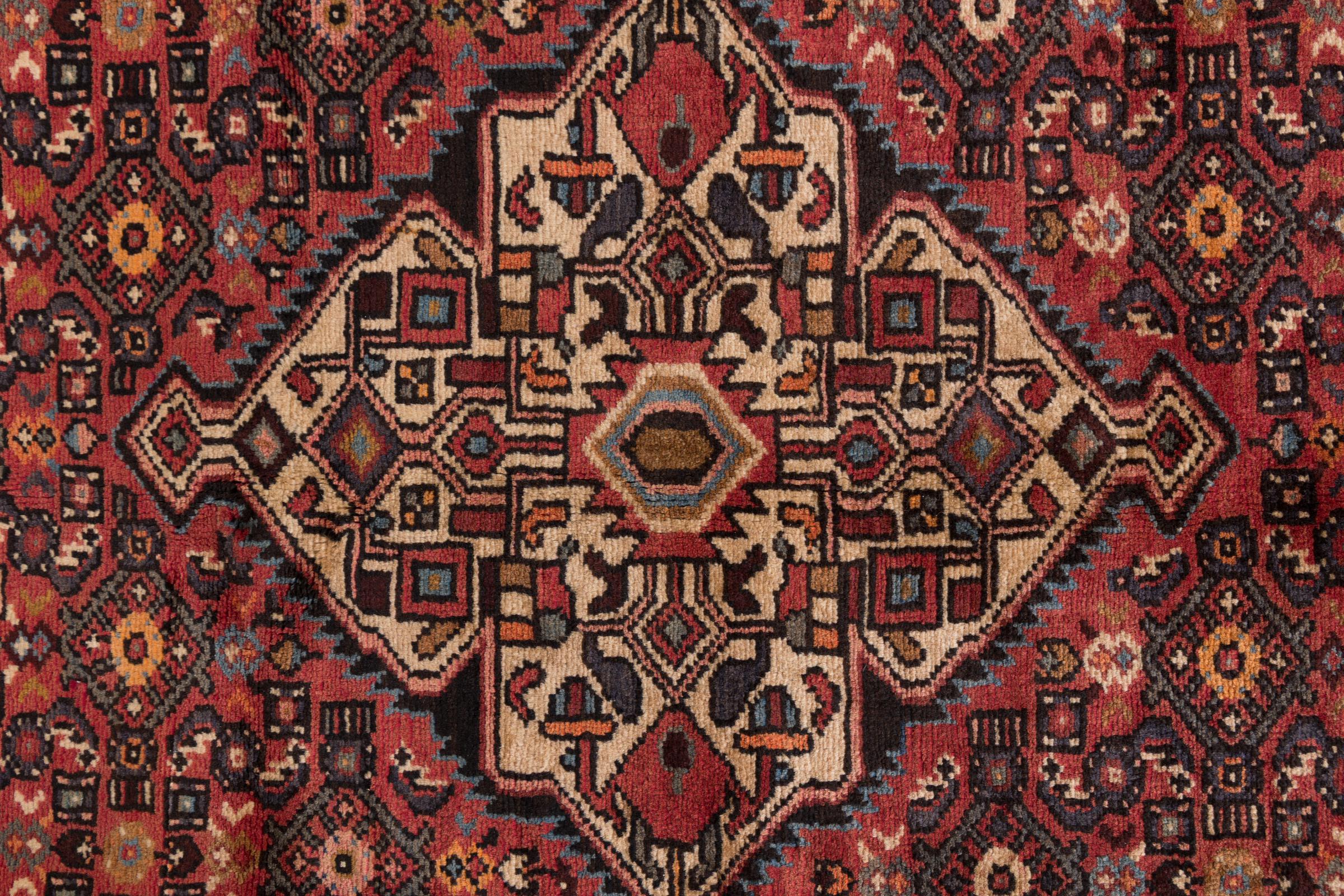This rug belongs to village and nomadic rugs from Iran, formerly Persia. This type of rug is knotted by hand in smaller towns and villages in old tradition. Even nomads still knot Persian rugs in the open air. The rugs are knotted without a draft and completely from the mind. They are characterized by classical ornaments, which are arranged in straight and geometrical patterns. Thanks to their cultural-traditional origin, these rugs have a unique character that embodies ancient Persia.