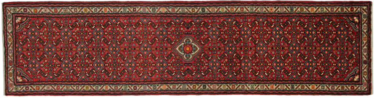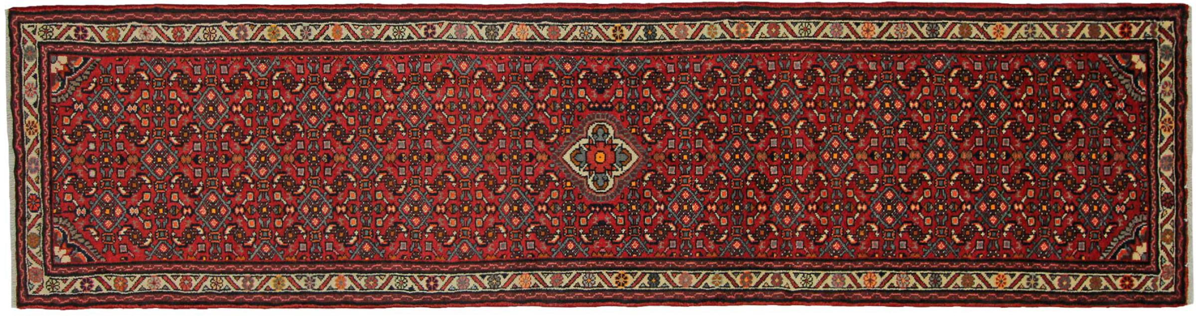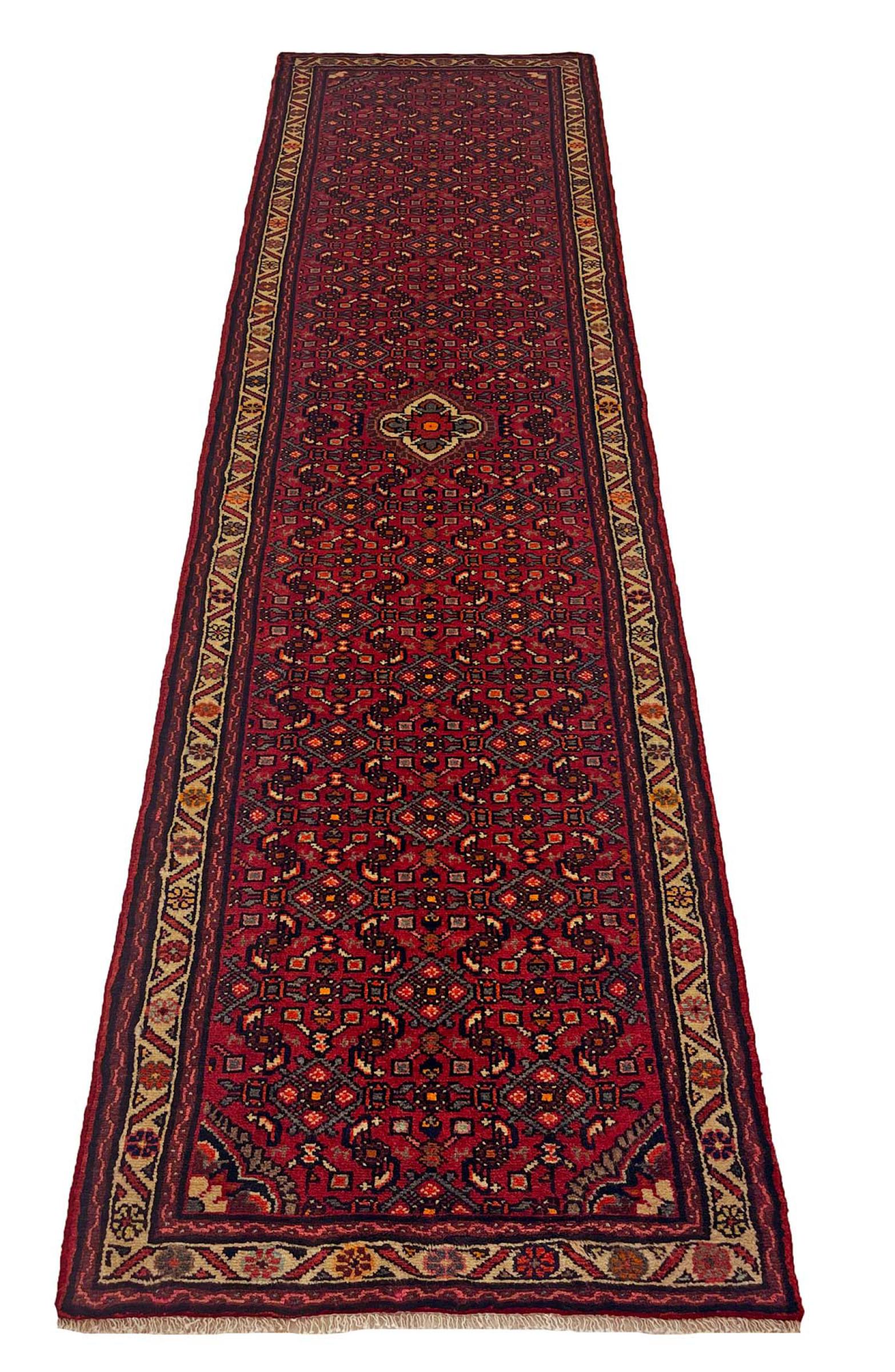 Carpet ID: 318720008737788 Size: 316x81 cm Thickness: ap. 12 mm Knot density: 128 000 - 160 000 / m² Manufacturing: Knotted by hand Pile: Handspun wool Warp: Cotton Origin: Persia Age: New Weight: ap. 9 kg Also know as Huseinabad In stock: Unique - Only 1 in stock