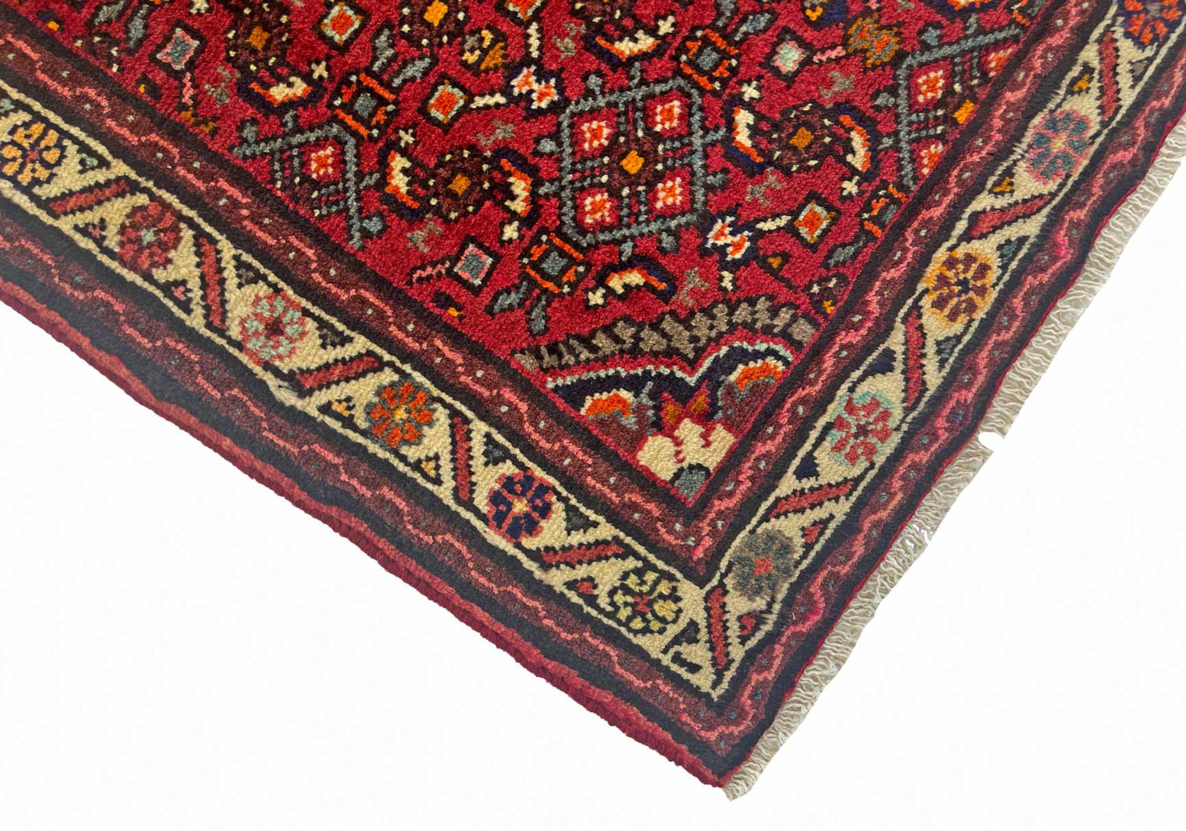 This handknotted Hosseinabad is traditional Persian carpet art. It was made in the small city of Hosseinabad near Hamadan. The high quality of the carpets of this region is convincing. Feel the Orient underneath your feet with this beautiful Hosseinabad.