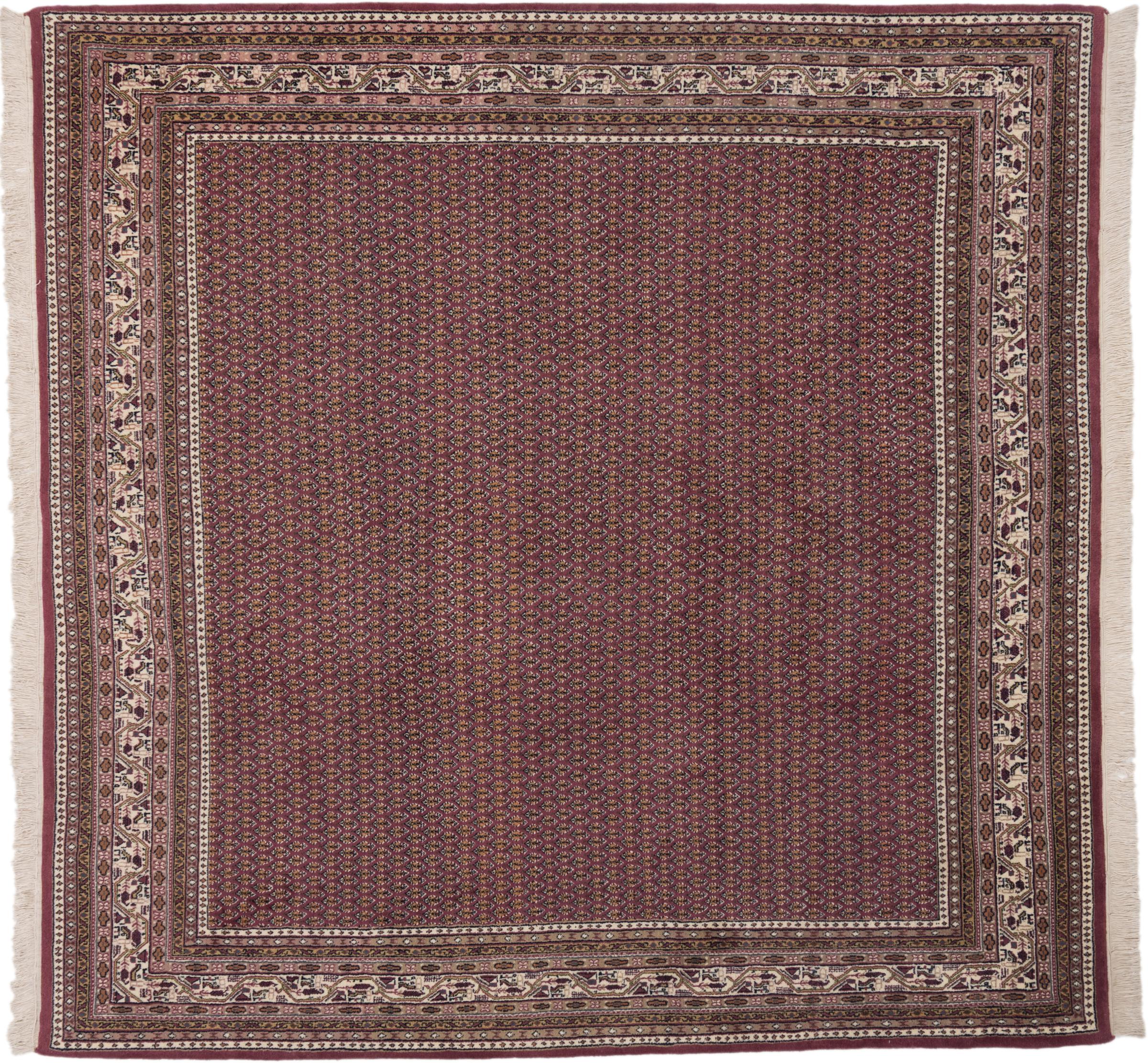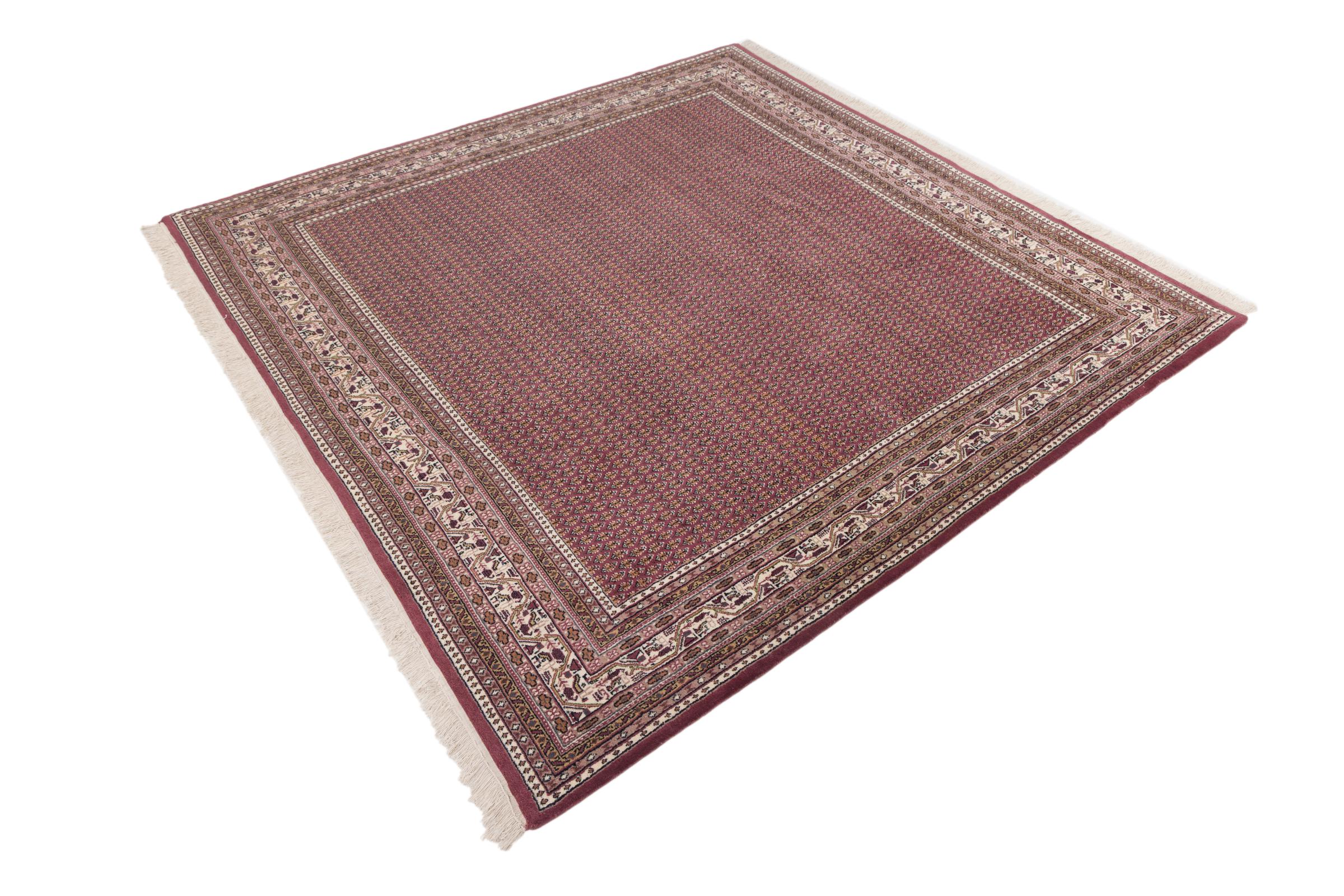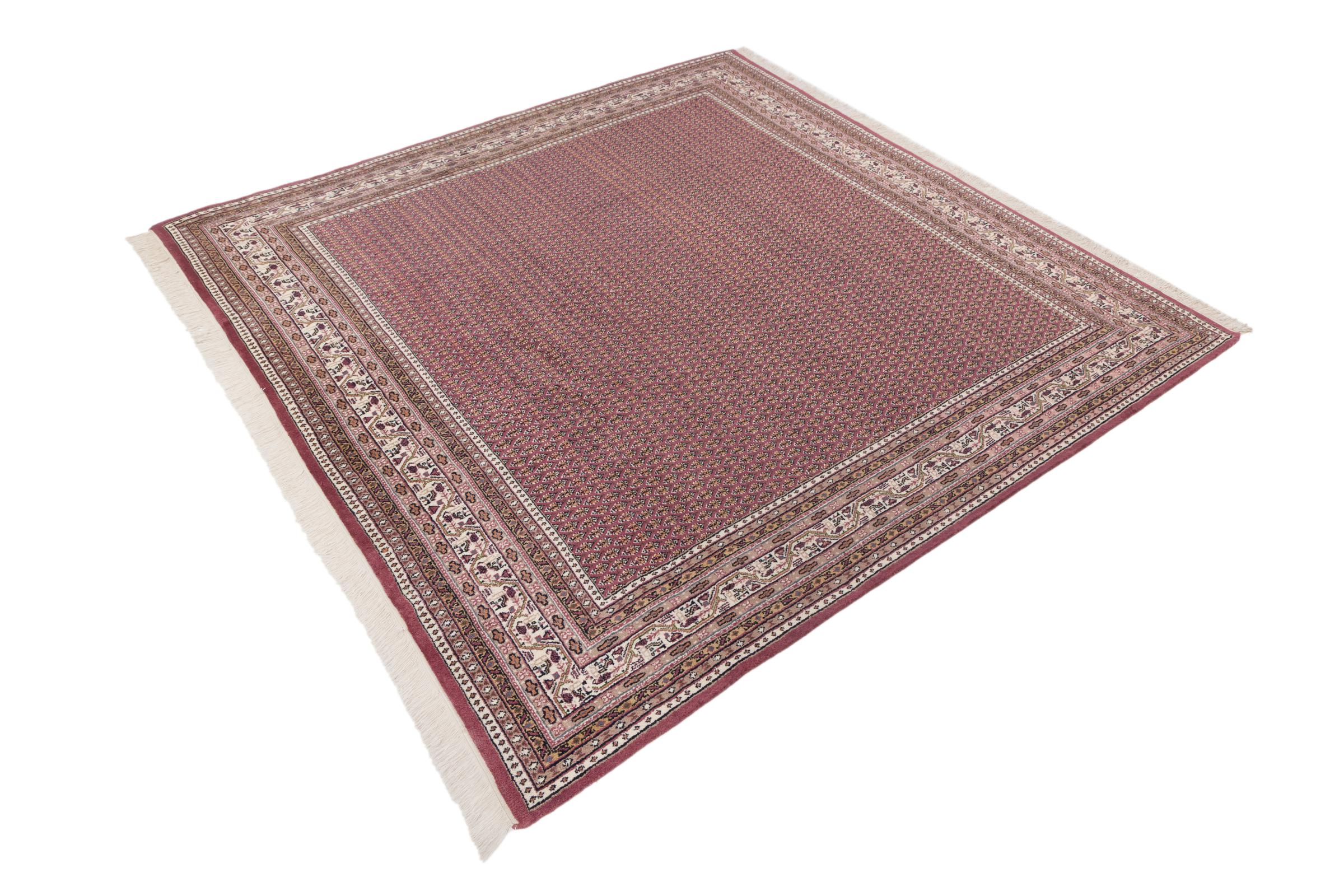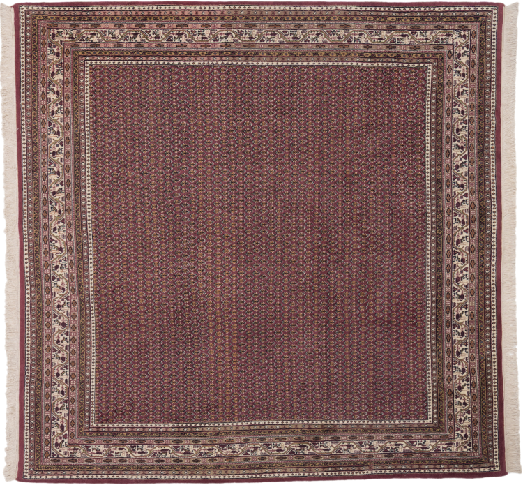 Carpet ID: 2767830017 Size: 247x247 cm Thickness: ap. 15 mm Knot density: 200 000 - 250 000 / m² Manufacturing: Knotted by hand Pile: Sheep wool Warp: Cotton Origin: India Age: New Weight: ap. 24 kg In stock: Unique - Only 1 in stock