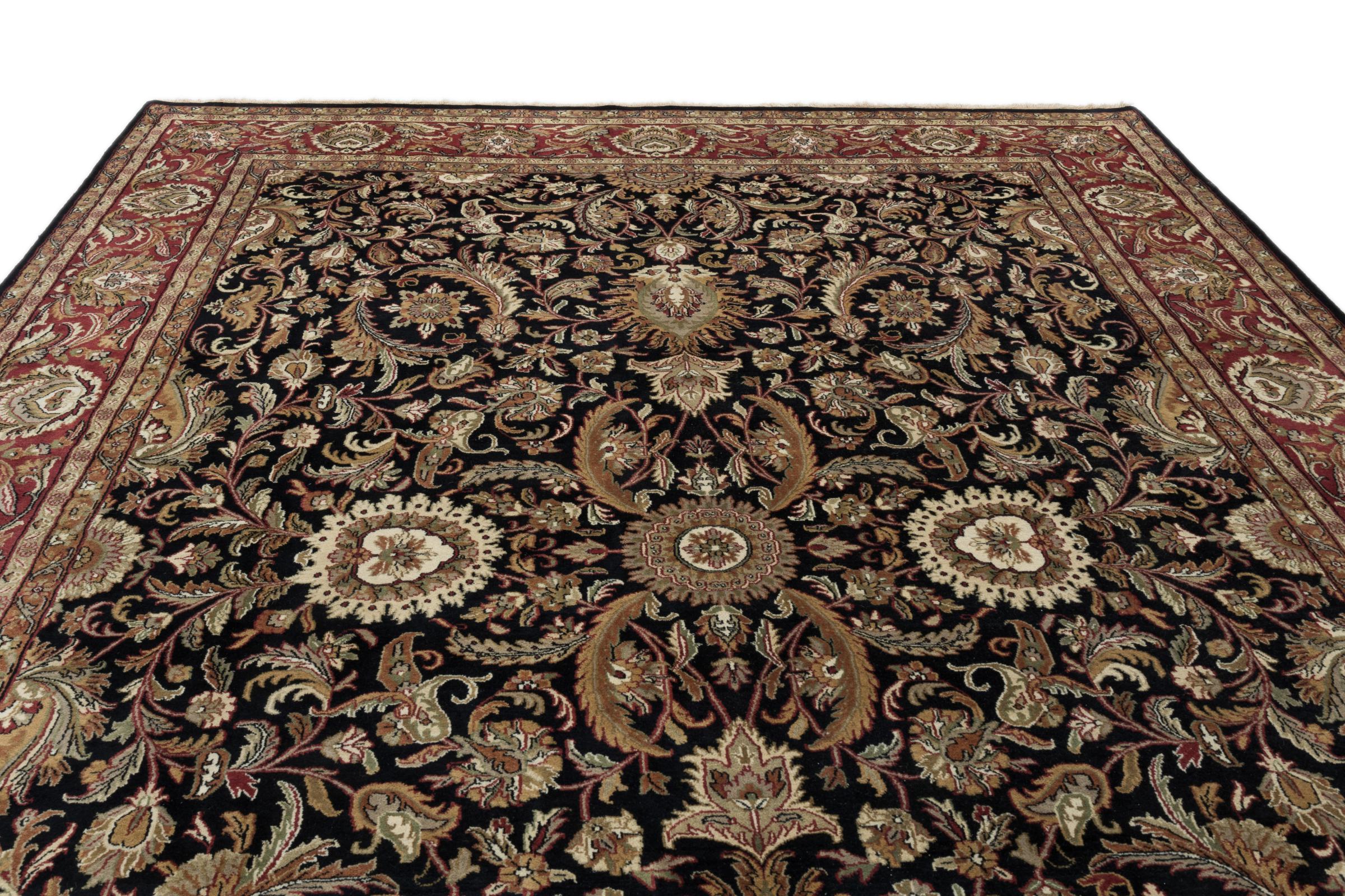 Carpet ID: 262824008992182 Size: 359x276 cm Thickness: ap. 12 mm Knot density: 200 000 - 250 000 / m² Manufacturing: Knotted by hand Pile: Handspun wool Warp: Cotton Origin: India Age: New Weight: ap. 40 kg In stock: Unique - Only 1 in stock