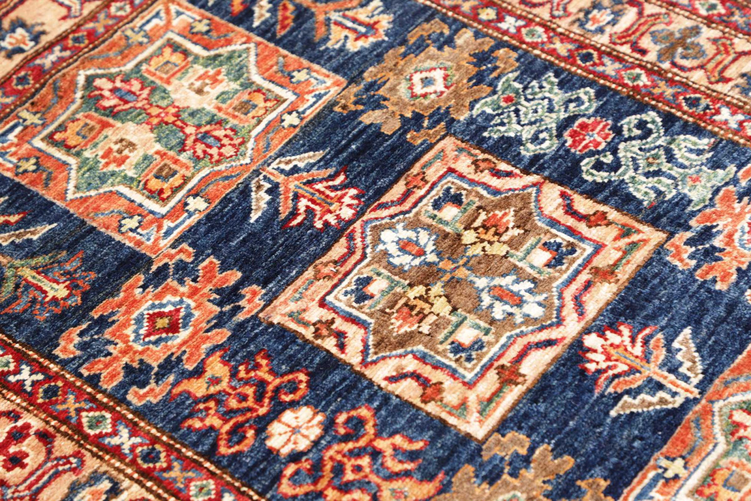 This rug is made of hand spun sheep wool of the highest quality. Especially in Iran (former Persia), Afghanistan and Pakistan wool is still spun by hand before the actual knotting of the rug begins. Wool has proven itself as a natural and extremely hard-wearing material over centuries. Among other things, it has dirt-repellent and heat-insulating properties. At the same time, wool is incomparably soft and has a natural shine.