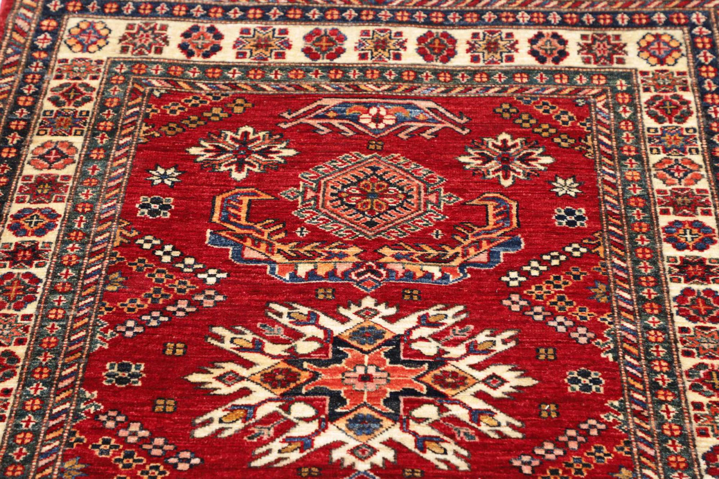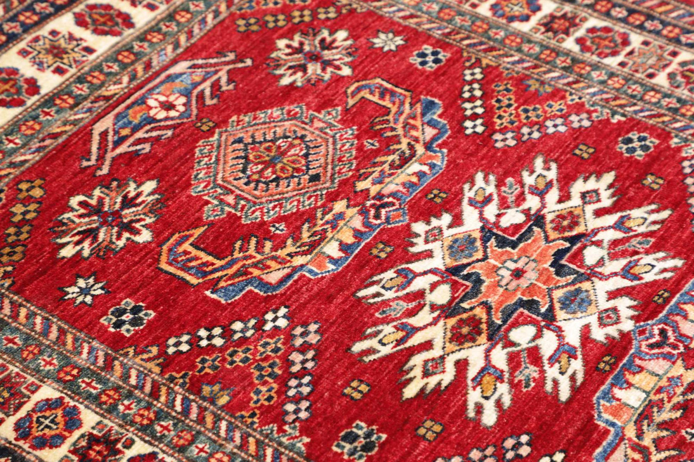 Kazak rugs are originally Caucasian rugs and are considered the best of their kind. They are hand-knotted from high-quality wool and are characterised by their design with warm natural colours and straight geometric shapes.
