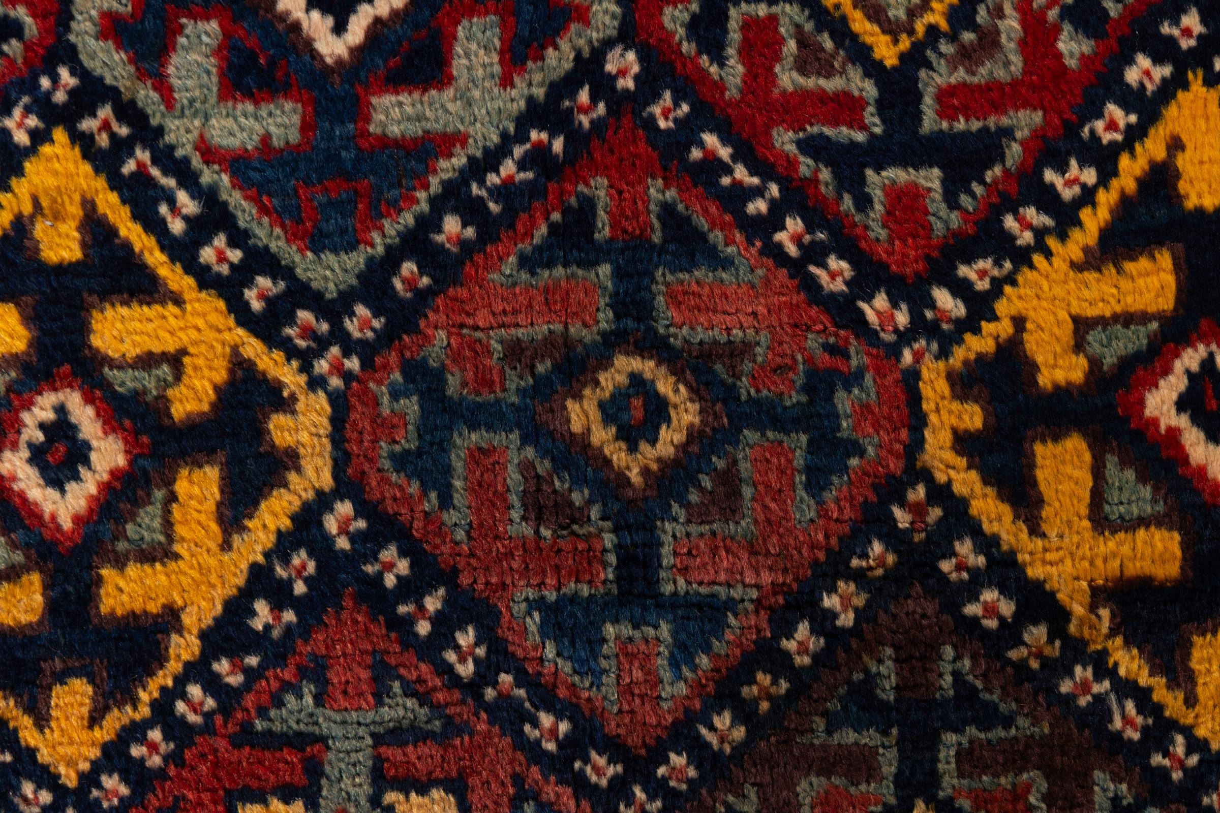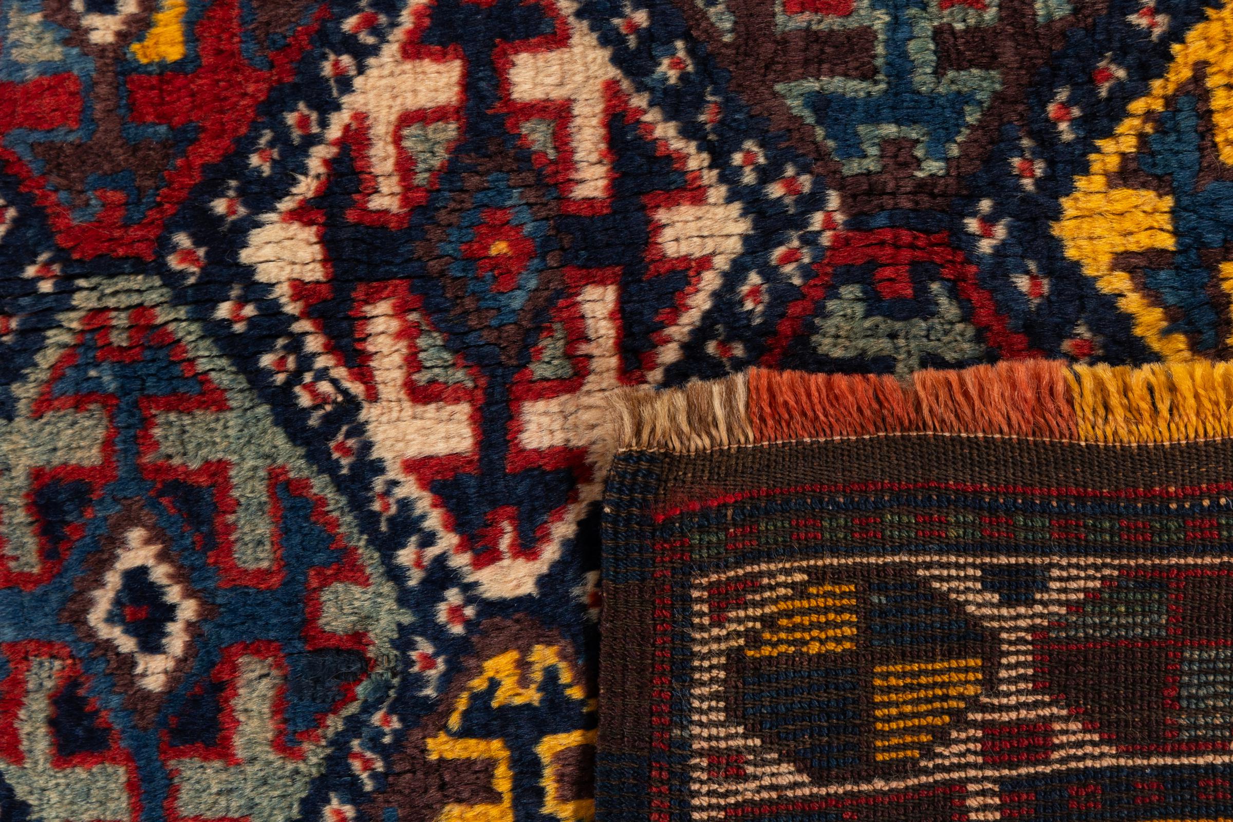 Carpet ID: 3070610023117 Size: 178x132 cm Thickness: ap. 5 mm Knot density: 200 000 - 250 000 / m² Manufacturing: Knotted by hand Pile: Sheep wool Warp: Sheep wool Condition / Conservation Perfect Origin: Azerbaijan / Russia Age: Antique, over 80 years Weight: ap. 6 kg In stock: Unique - Only 1 in stock