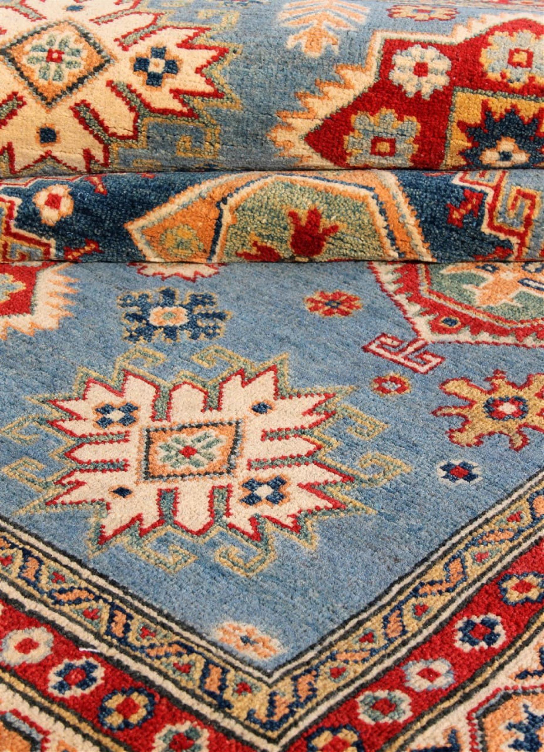 Kazak rugs are originally Caucasian rugs and are considered the best of their kind. They are hand-knotted from high-quality wool and are characterised by their design with warm natural colours and straight geometric shapes.