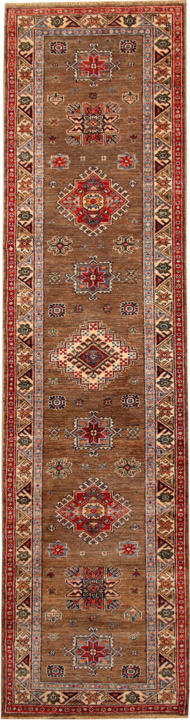 Kazak rugs are originally Caucasian rugs and are considered the best of their kind. They are hand-knotted from high-quality wool and are characterised by their design with warm natural colours and straight geometric shapes.