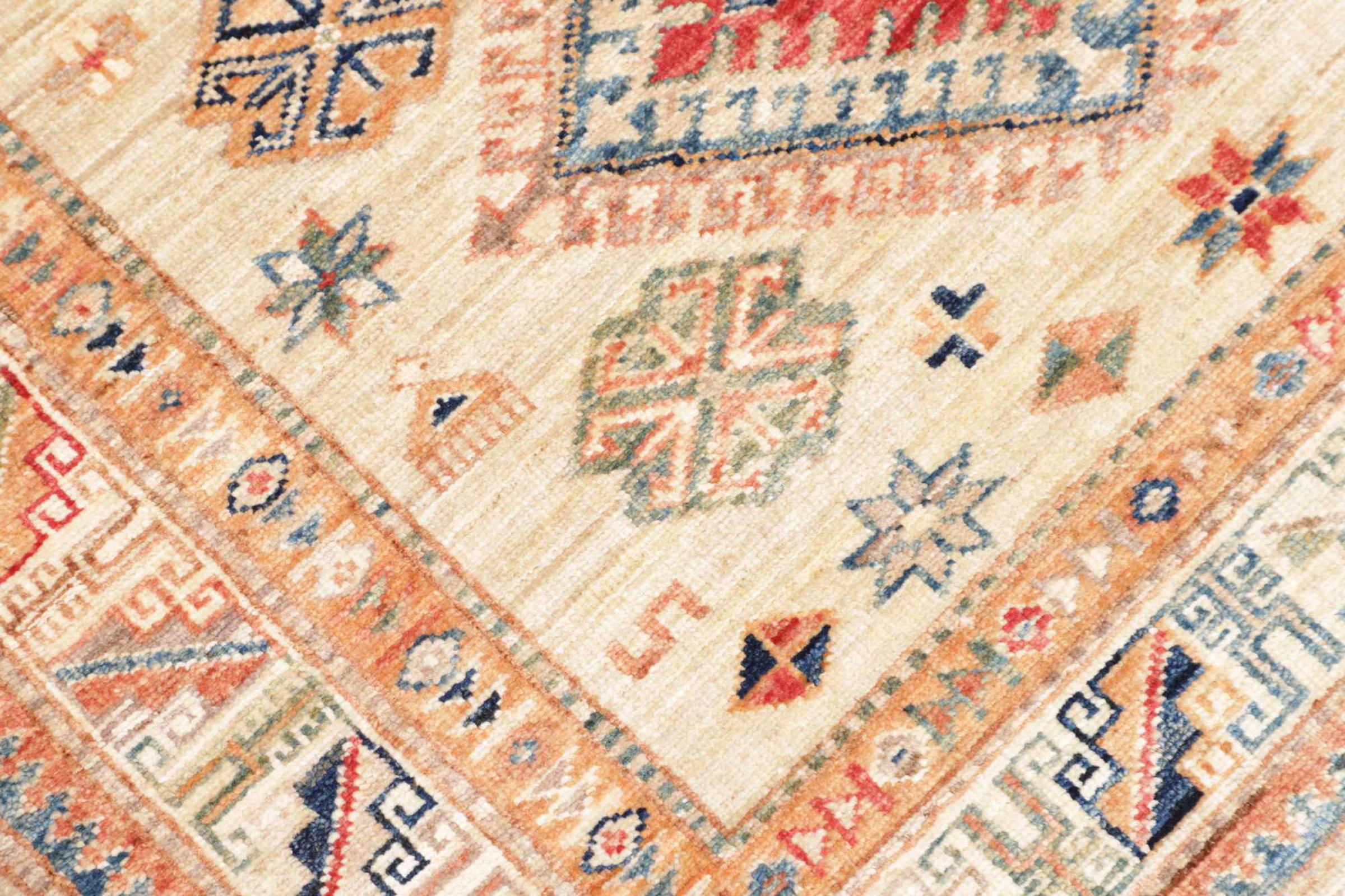 Kazak rugs are originally Caucasian rugs and are considered the best of their kind. They are hand-knotted from high-quality wool and are characterised by their design with warm natural colours and straight geometric shapes.