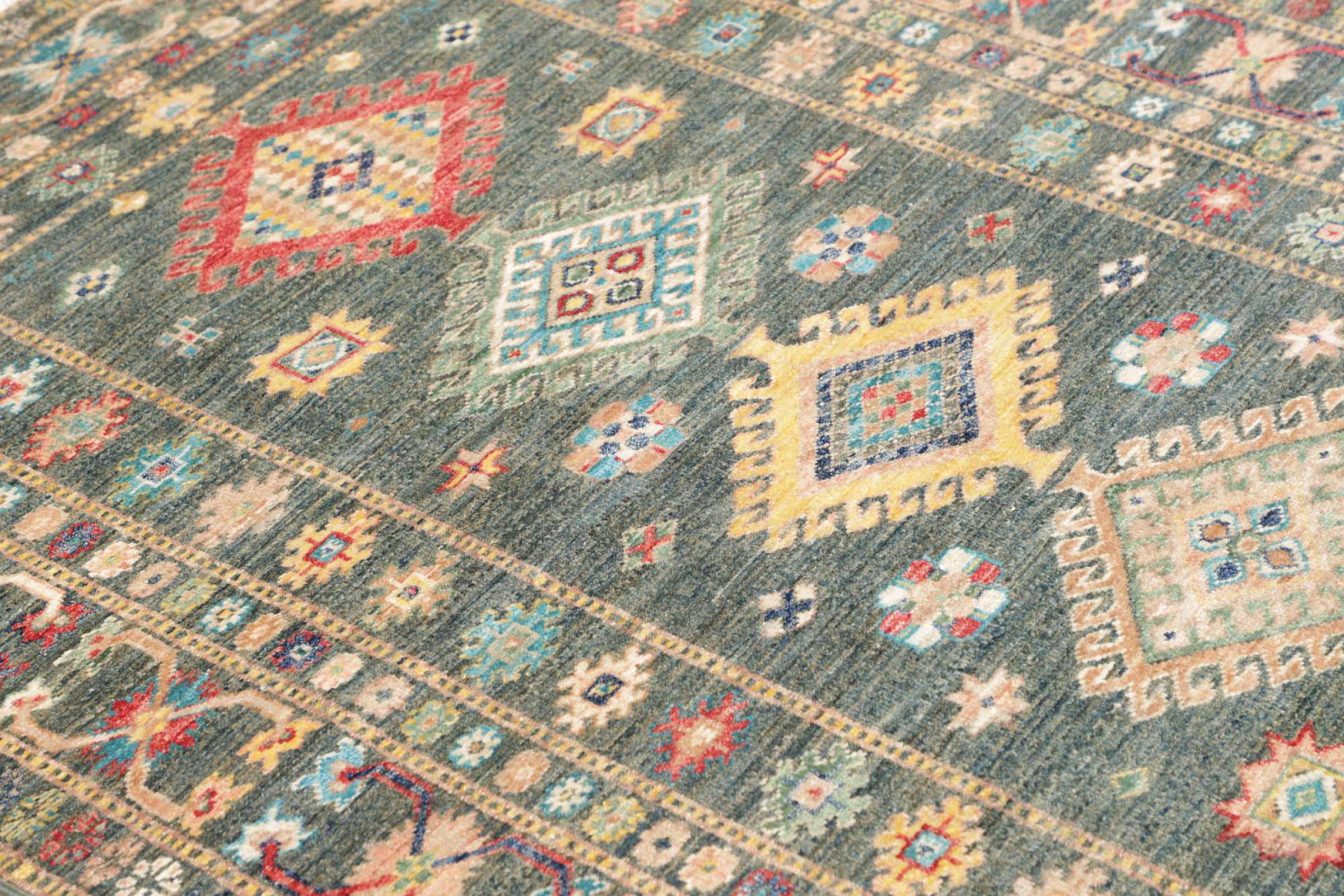 This rug is made of hand spun sheep wool of the highest quality. Especially in Iran (former Persia), Afghanistan and Pakistan wool is still spun by hand before the actual knotting of the rug begins. Wool has proven itself as a natural and extremely hard-wearing material over centuries. Among other things, it has dirt-repellent and heat-insulating properties. At the same time, wool is incomparably soft and has a natural shine.