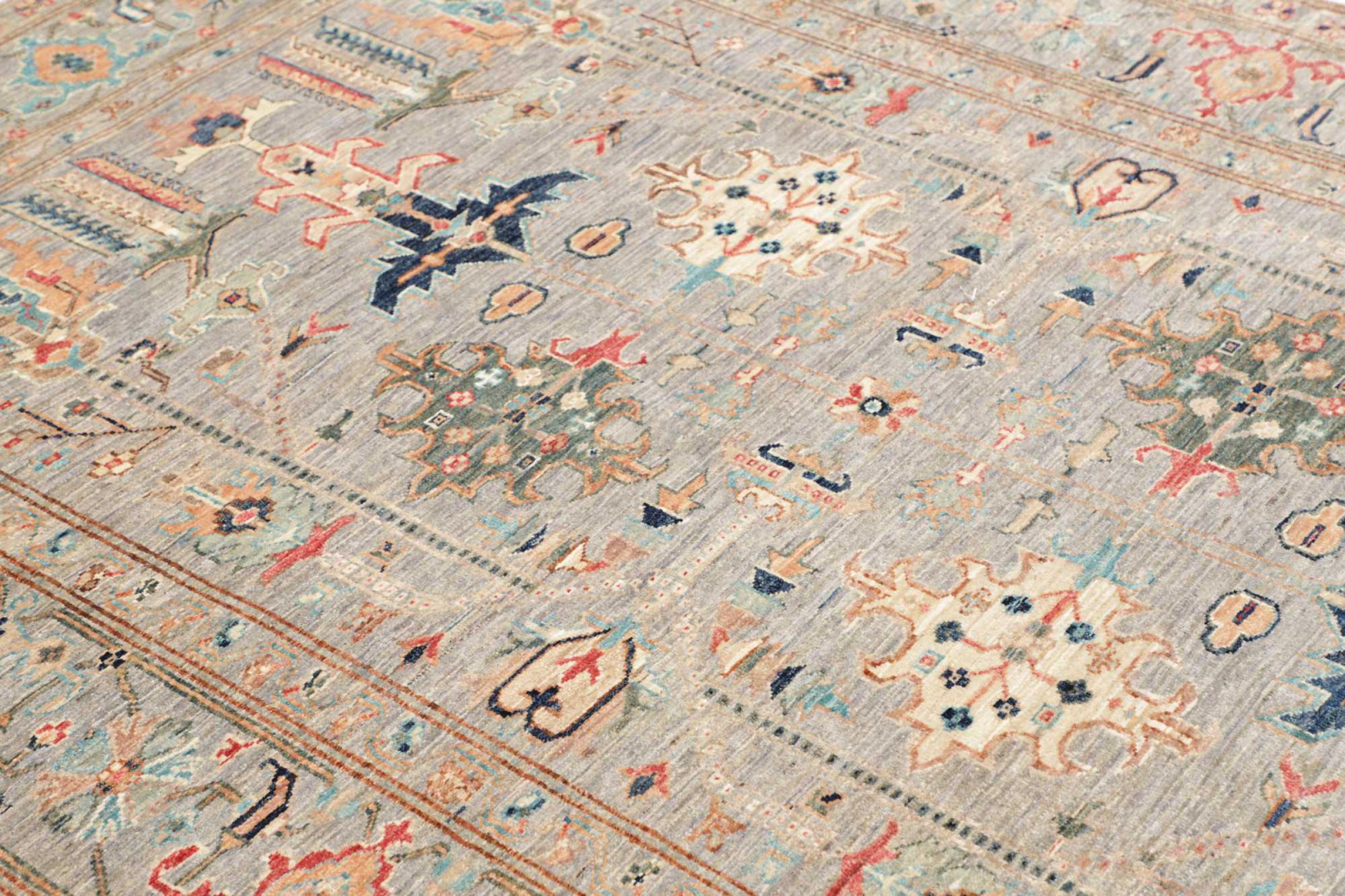 This rug is made of hand spun sheep wool of the highest quality. Especially in Iran (former Persia), Afghanistan and Pakistan wool is still spun by hand before the actual knotting of the rug begins. Wool has proven itself as a natural and extremely hard-wearing material over centuries. Among other things, it has dirt-repellent and heat-insulating properties. At the same time, wool is incomparably soft and has a natural shine.