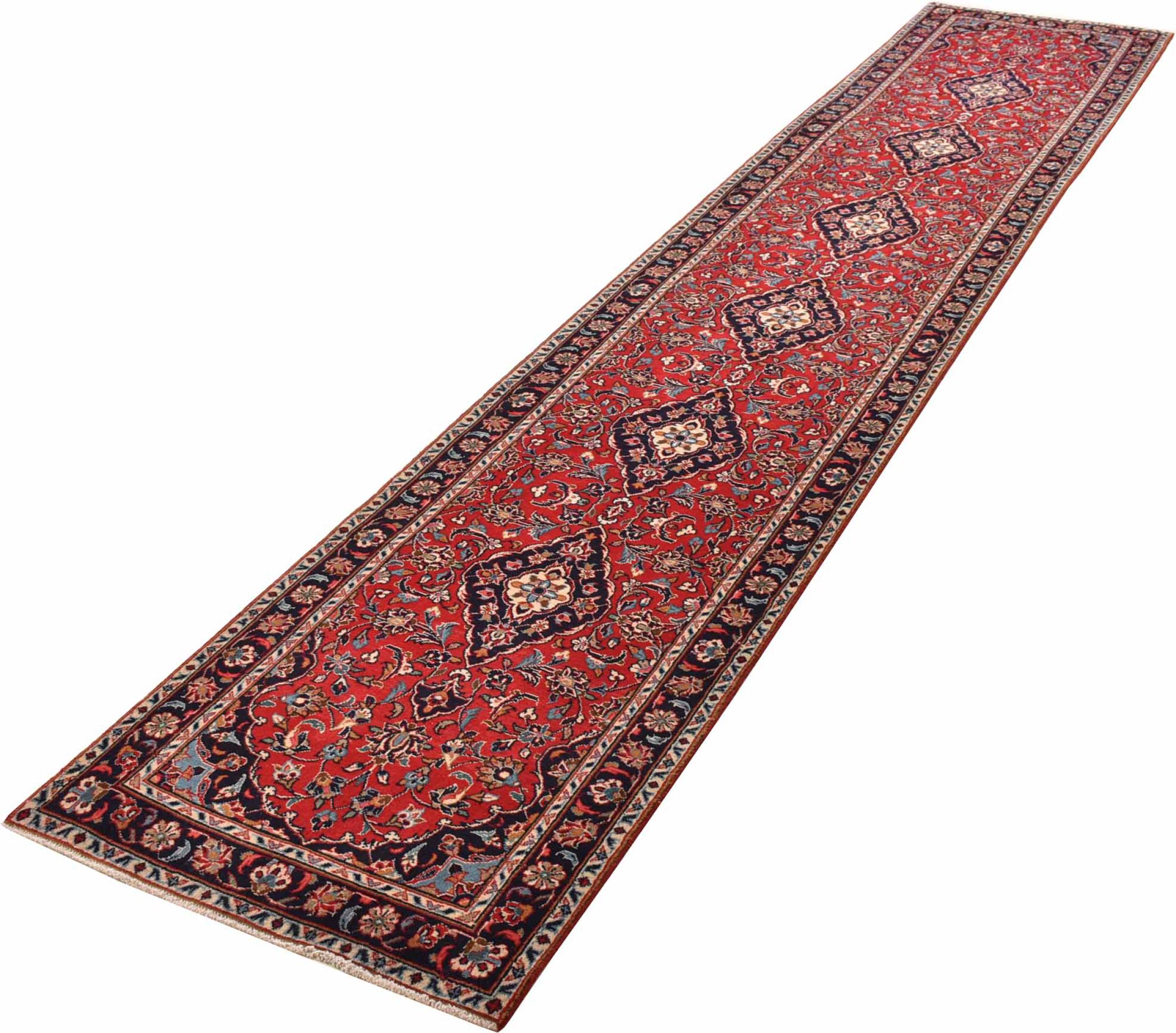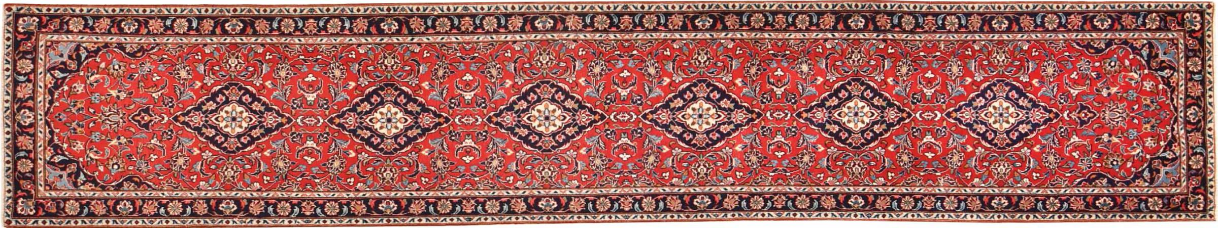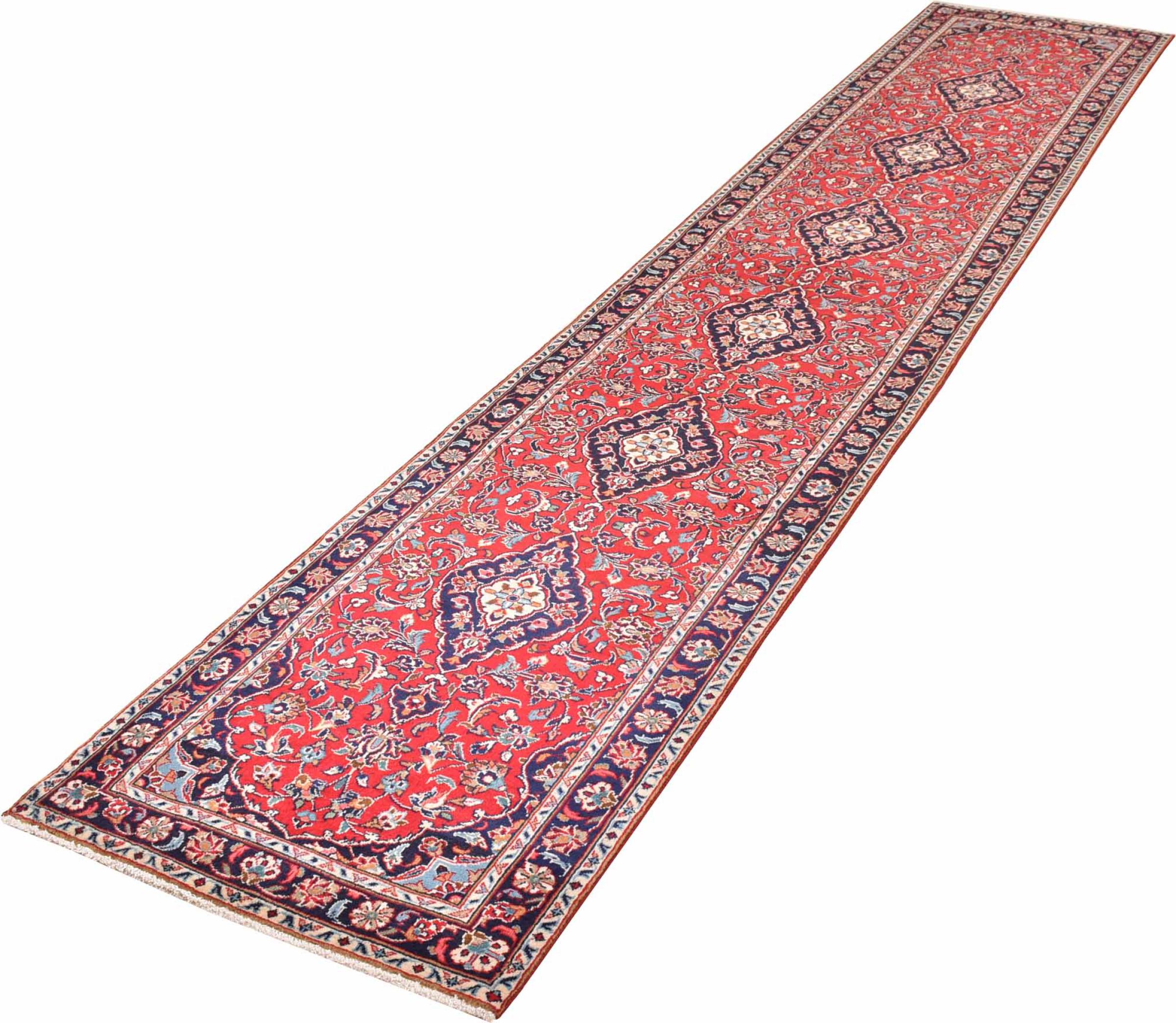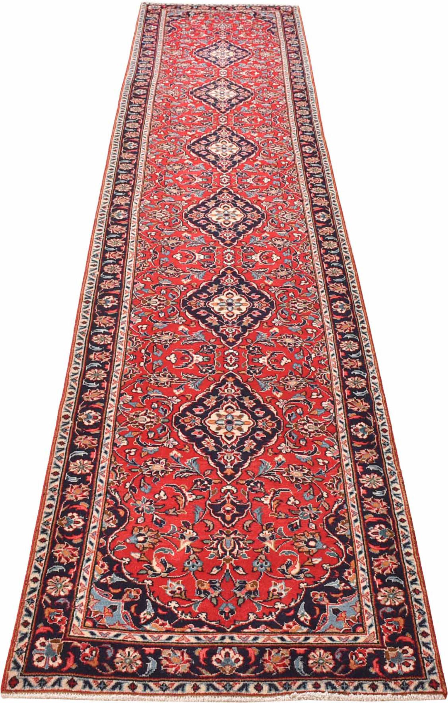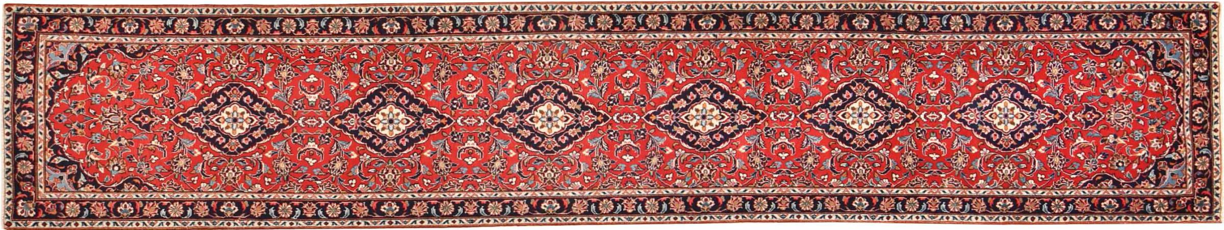 Carpet ID: 300924008480069 Size: 417x76 cm Thickness: ap. 12 mm Knot density: 160 000 - 200 000 / m² Manufacturing: Knotted by hand Pile: Handspun wool Warp: Cotton Origin: Persia Age: New Weight: ap. 11 kg In stock: Unique - Only 1 in stock