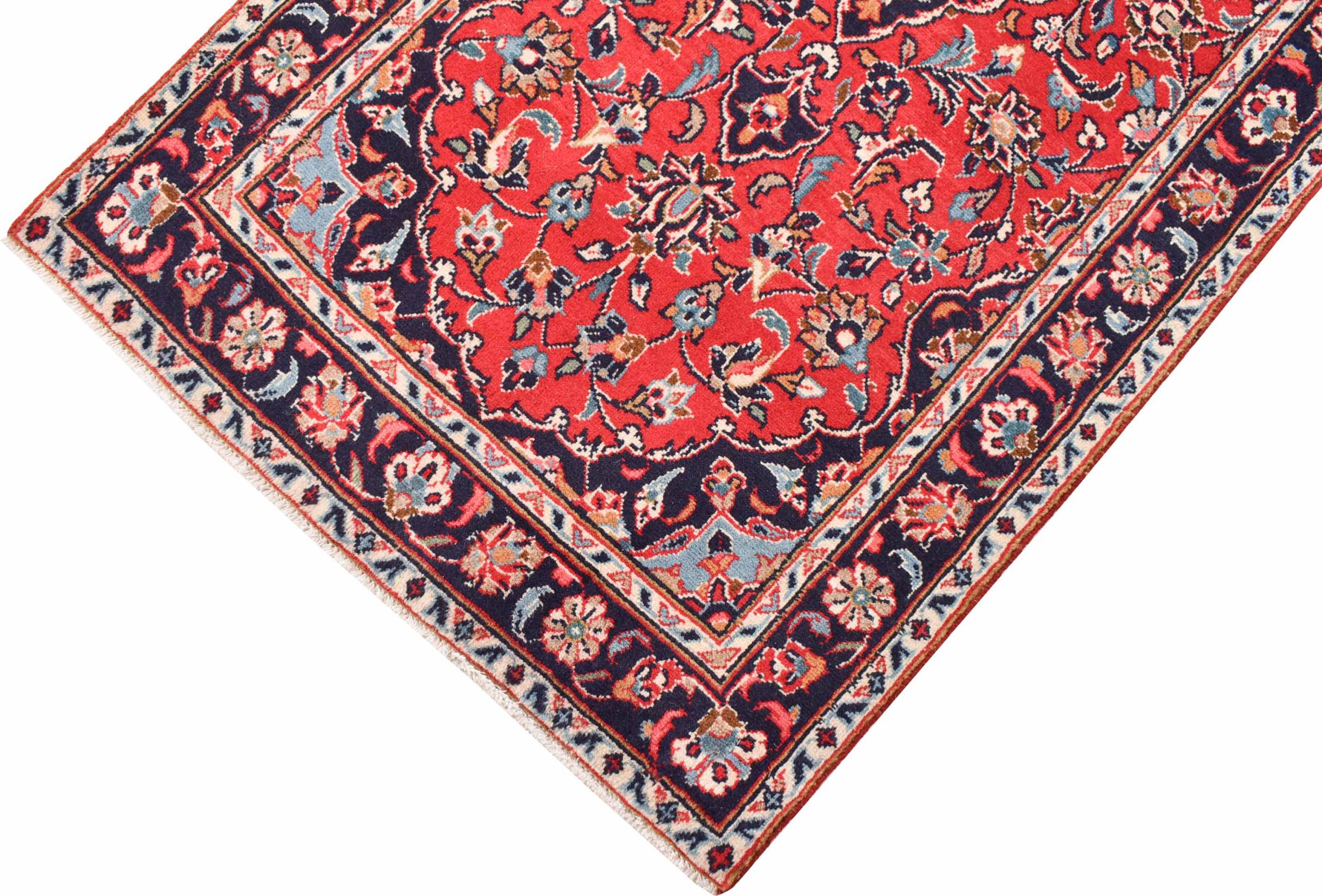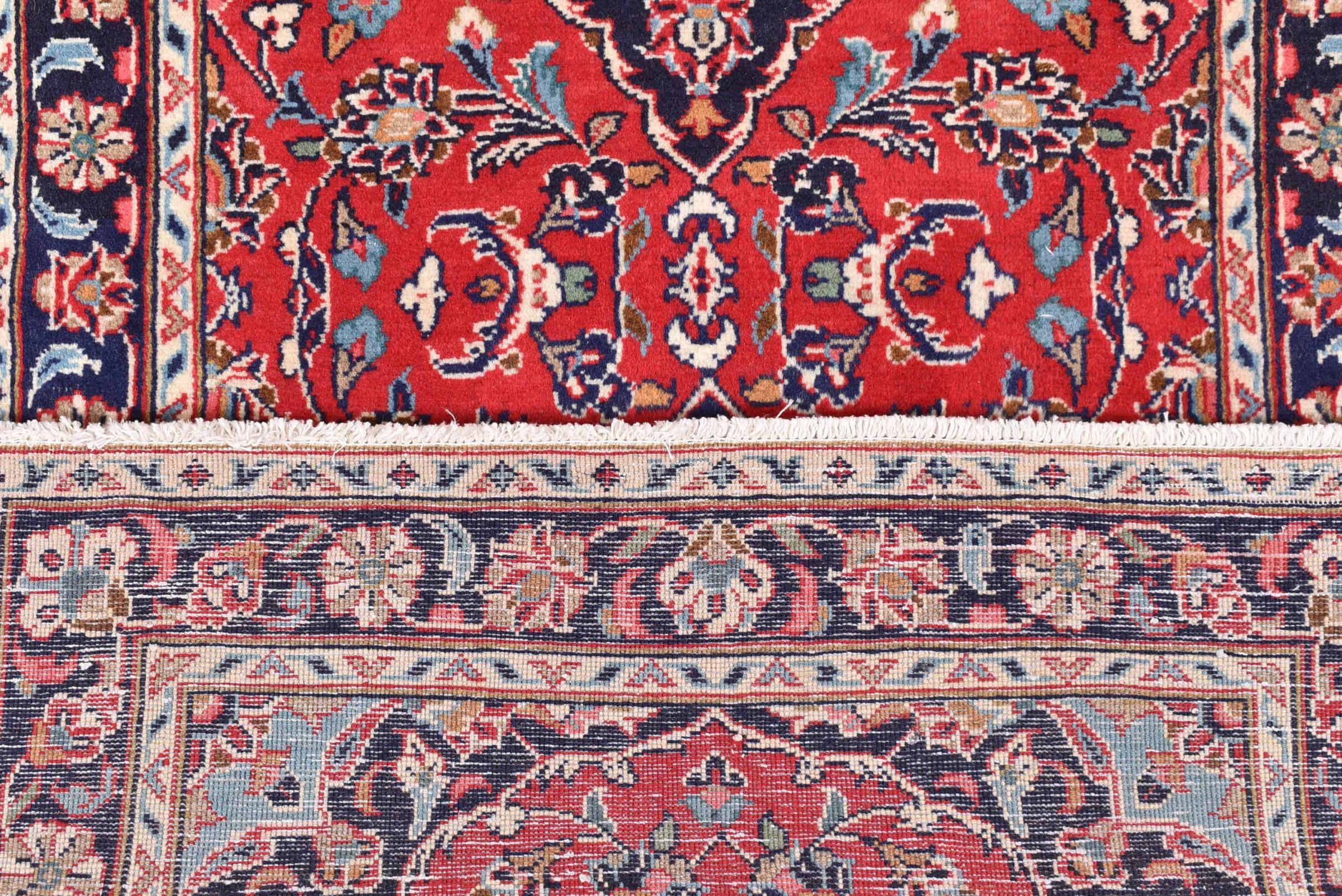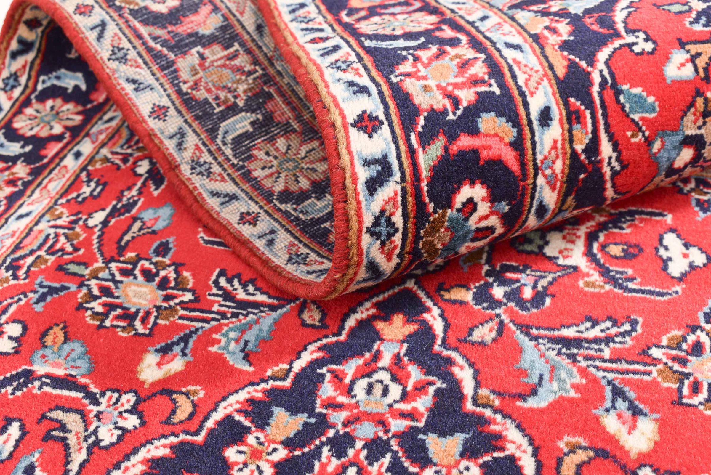 Hand knotted rugs from the city of Kashan (Keshan) are known worldwide. Not only do these Persian rugs have a very popular design, but their quality is undisputedly one of the best. In the Persian Empire the city was considered one of the most important trading places along the famous Silk Road. Kashan rugs usually have a central medallion, floral ornaments and a red background. They are made of high-quality sheep's wool and vegetable dyes.