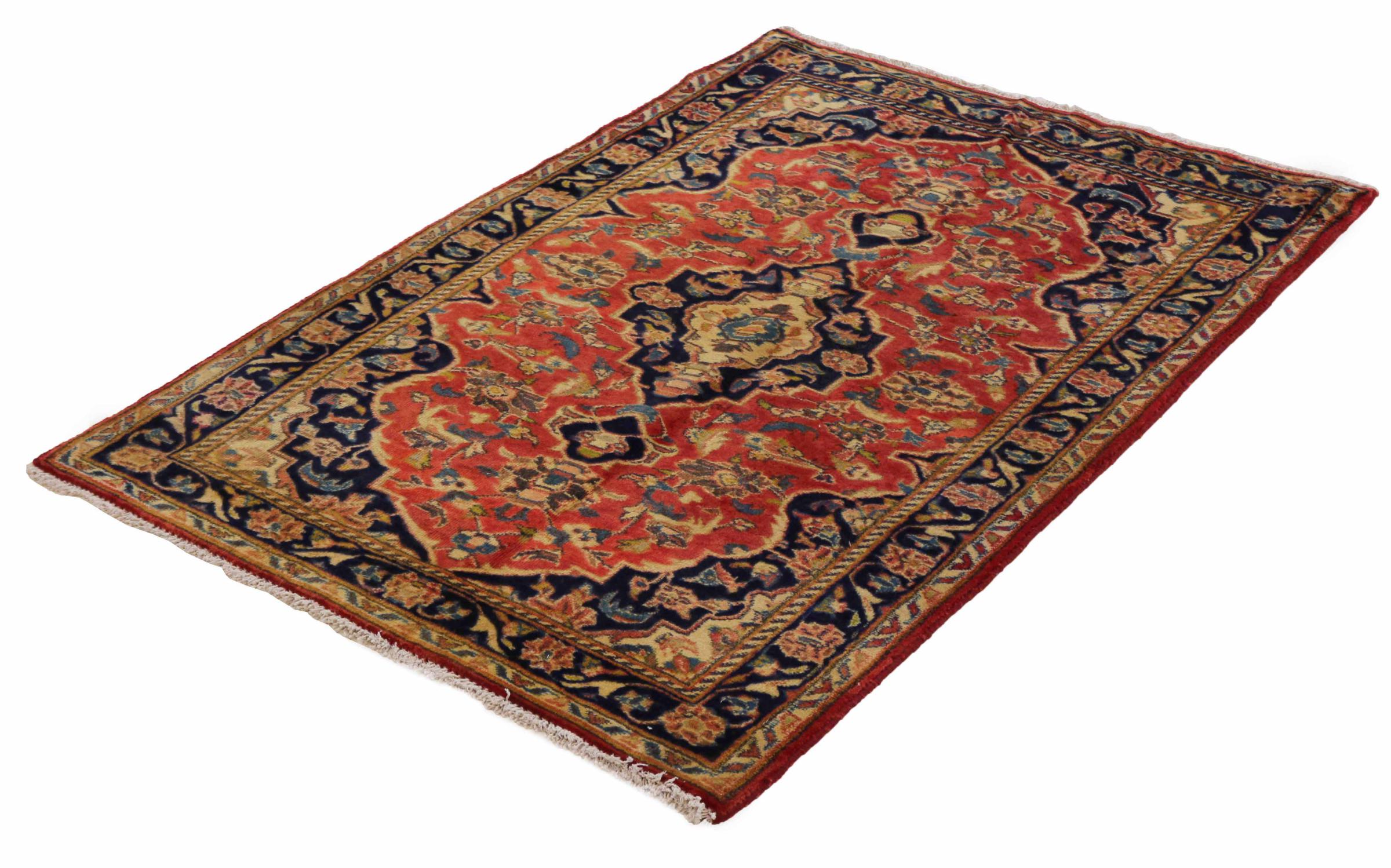 Hand knotted rugs from the city of Kashan (Keshan) are known worldwide. Not only do these Persian rugs have a very popular design, but their quality is undisputedly one of the best. In the Persian Empire the city was considered one of the most important trading places along the famous Silk Road. Kashan rugs usually have a central medallion, floral ornaments and a red background. They are made of high-quality sheep's wool and vegetable dyes.