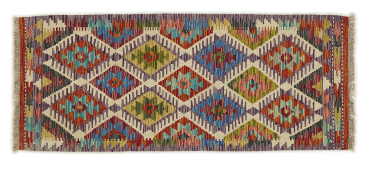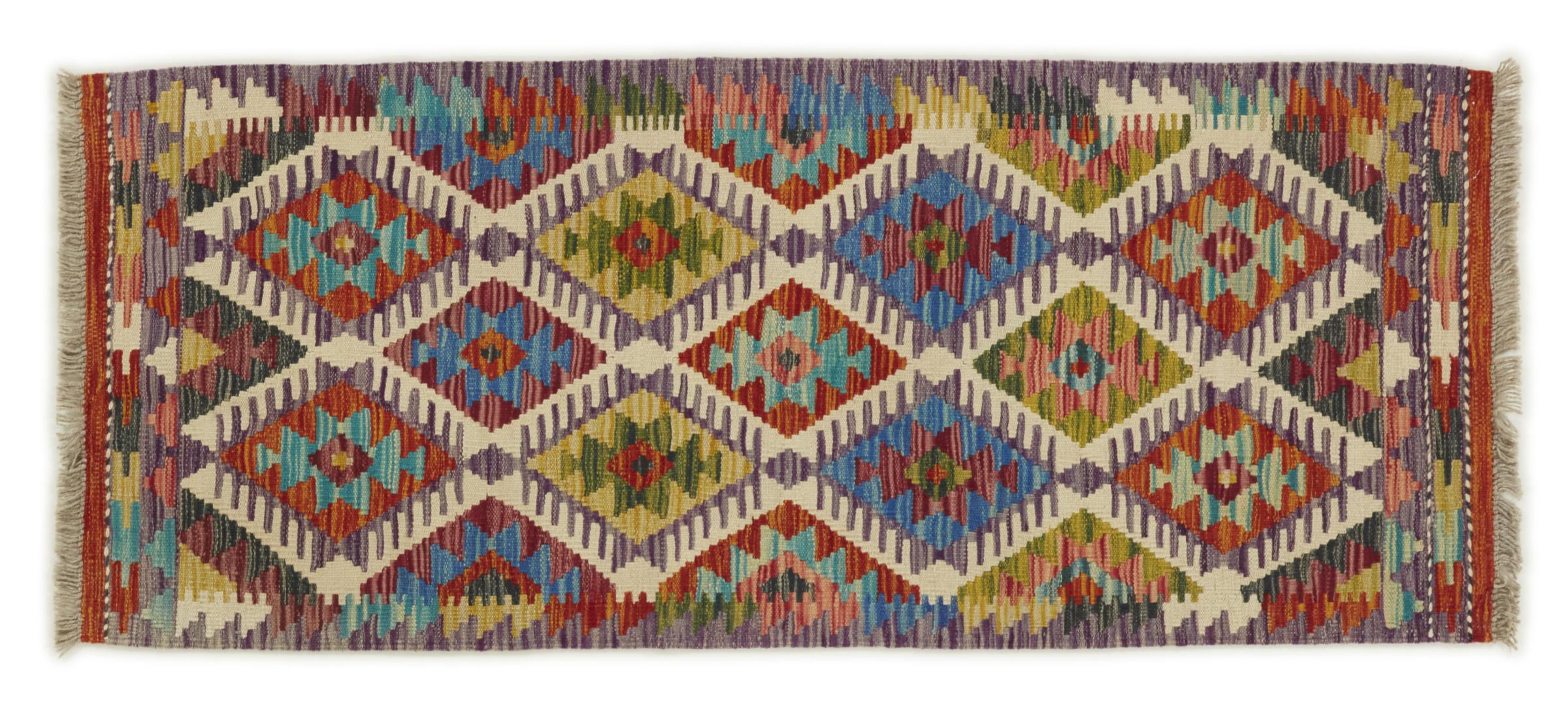 These kilim rugs show a decisive difference to hand-knotted rugs - they are woven by hand. Thus, they do not have a high pile of wool and are often flatter and rougher than knotted wool rugs. Their making is less elaborate and so they are usually much more affordable. As an advantage, kilim rugs are also much lighter and can be laid out from the front and back side. Hand-woven kilims originally come from the former Persia and are now also often made in Afghanistan. They have rather simple, straightforward patterns, which are determined by their weaving technique.