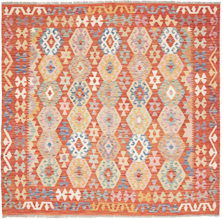 Carpet ID: 311119003559426 Size: 196x206 cm Thickness: ap. 3 mm Manufacturing: Woven by hand Pile: Handspun wool Warp: Sheep wool Origin: Afghanistan Age: New Weight: ap. 6 kg In stock: Unique - Only 1 in stock