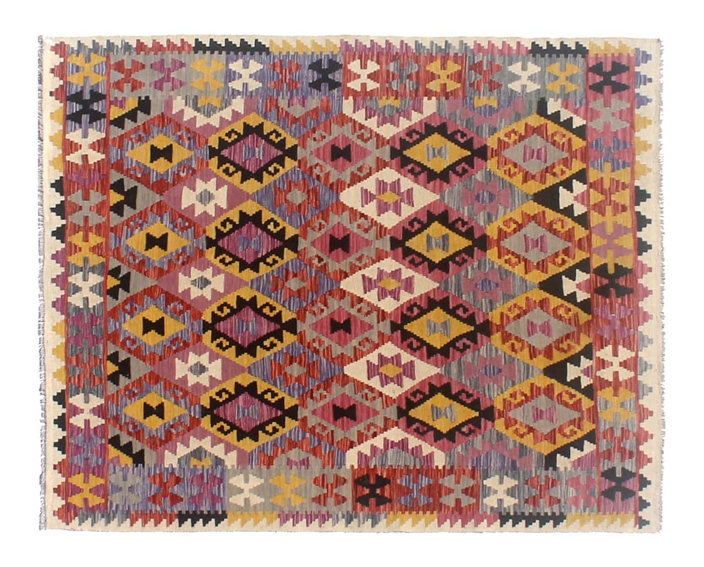 This handwoven Kilim Afghan is a wonderful and unique piece of art. Hard to believe that these modern colours and patterns have already been used centuries ago. This carpet has been woven by hand in old tradition in Afghanistan. It delivers a portion of contemporary history, which you won't find in this specific design a second time. It consists of high-grade natural wool and gives your home a personalised touch.