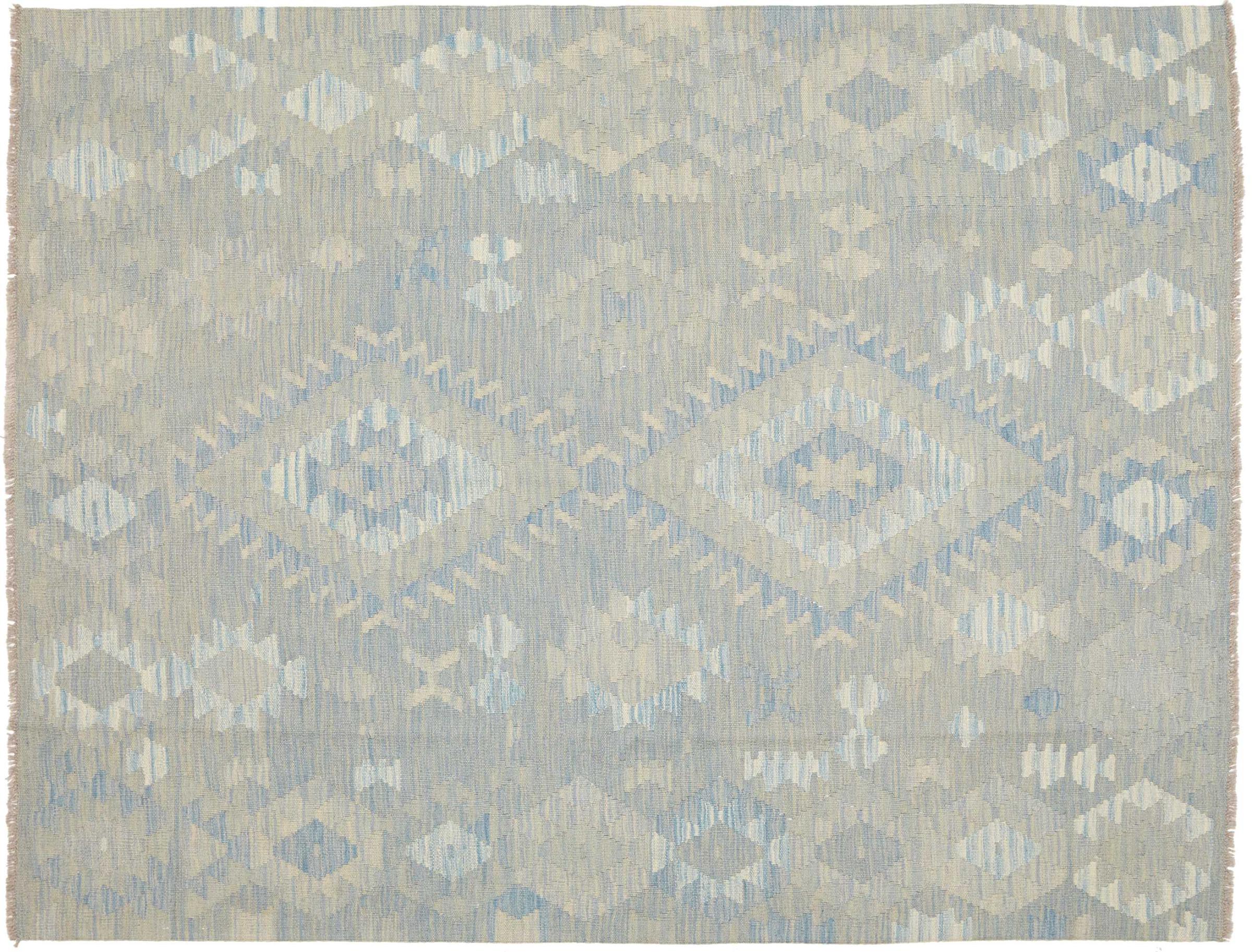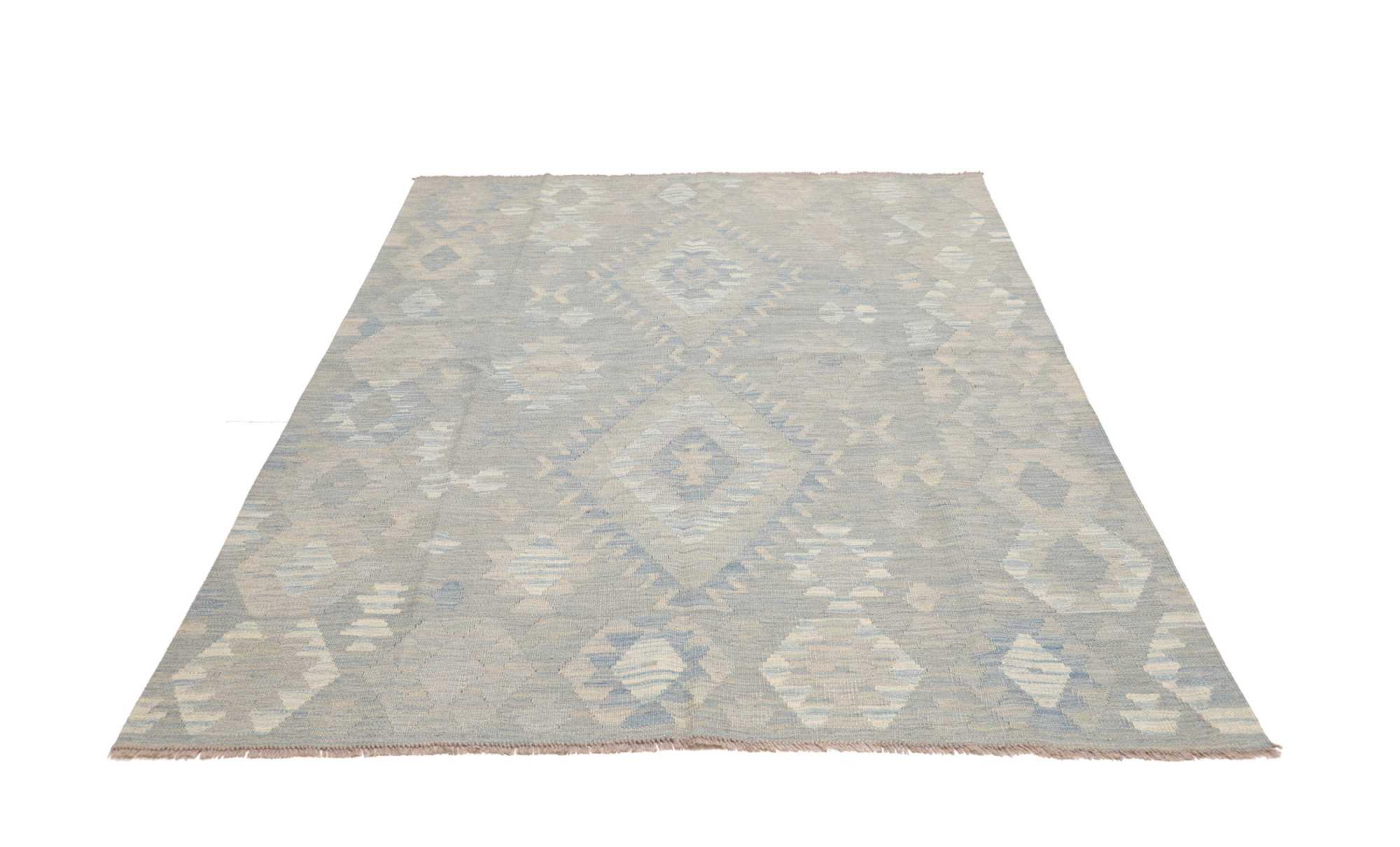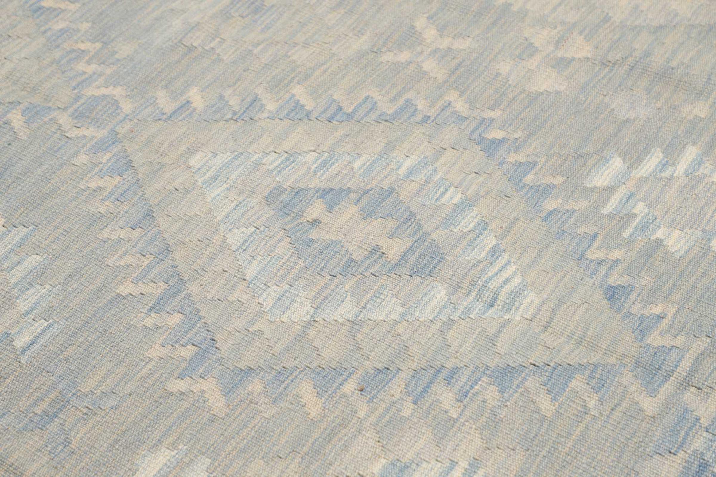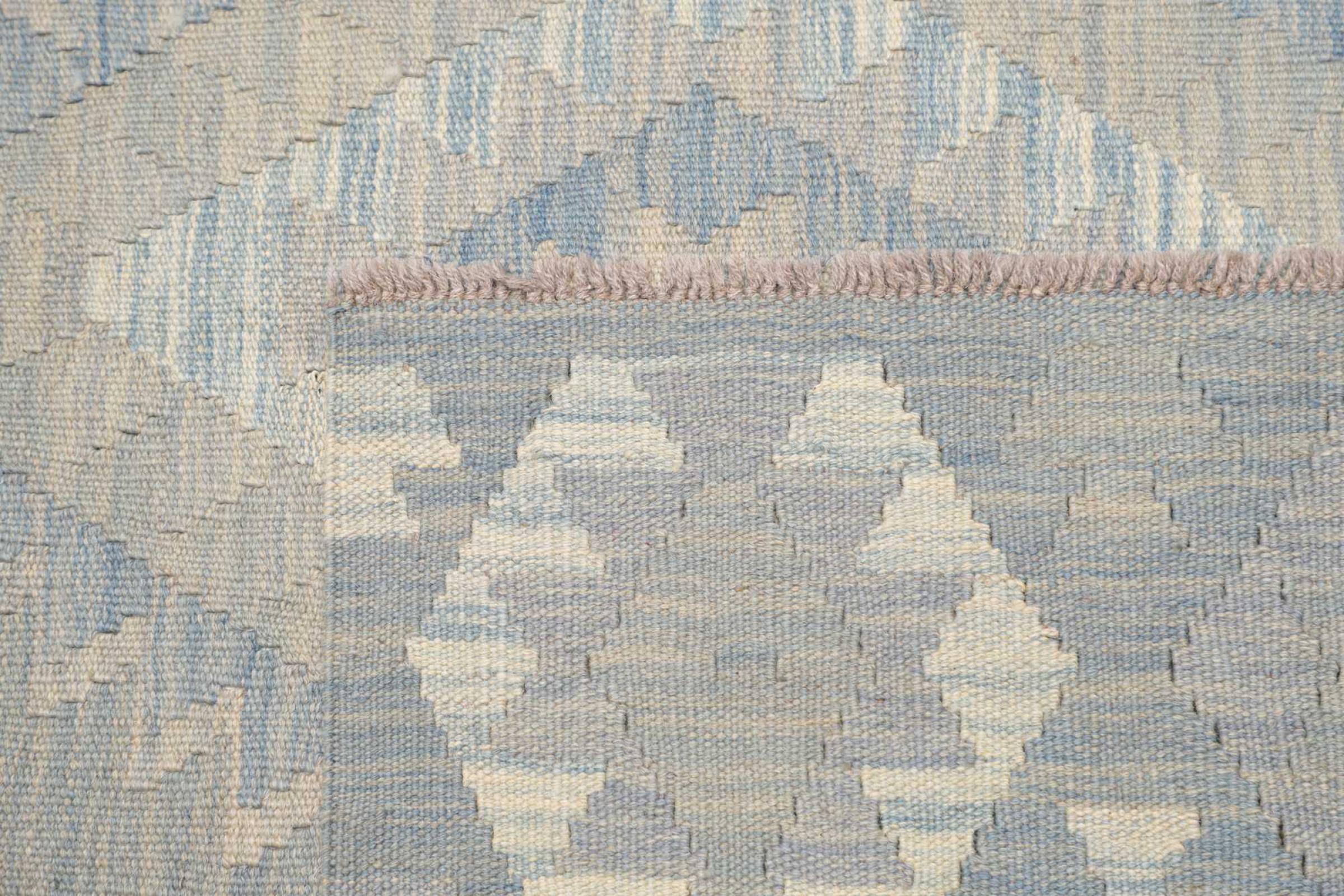 This handwoven Kilim Afghan is a wonderful and unique piece of art. Hard to believe that these modern colours and patterns have already been used centuries ago. This carpet has been woven by hand in old tradition in Afghanistan. It delivers a portion of contemporary history, which you won't find in this specific design a second time. It consists of high-grade natural wool and gives your home a personalised touch.