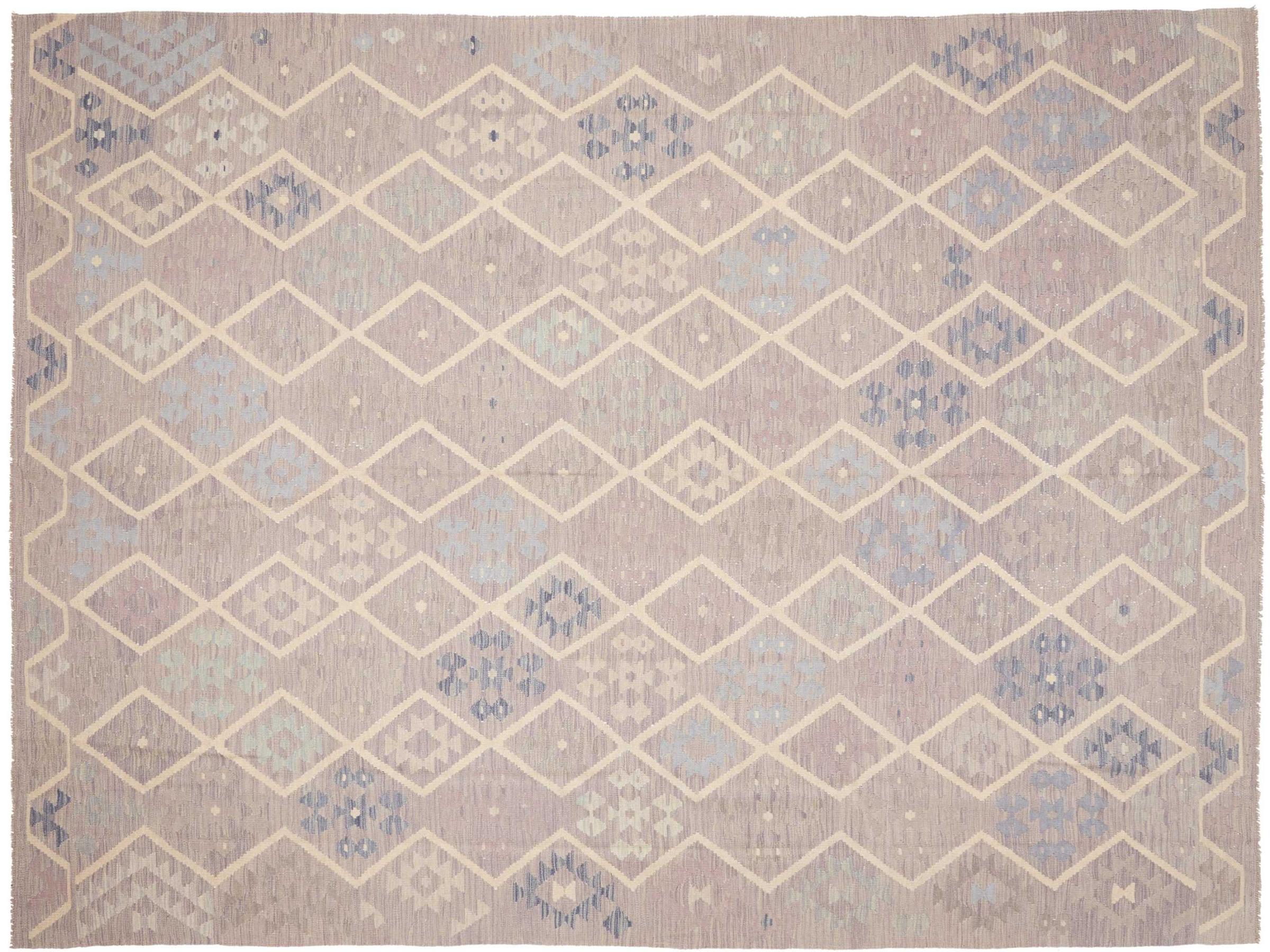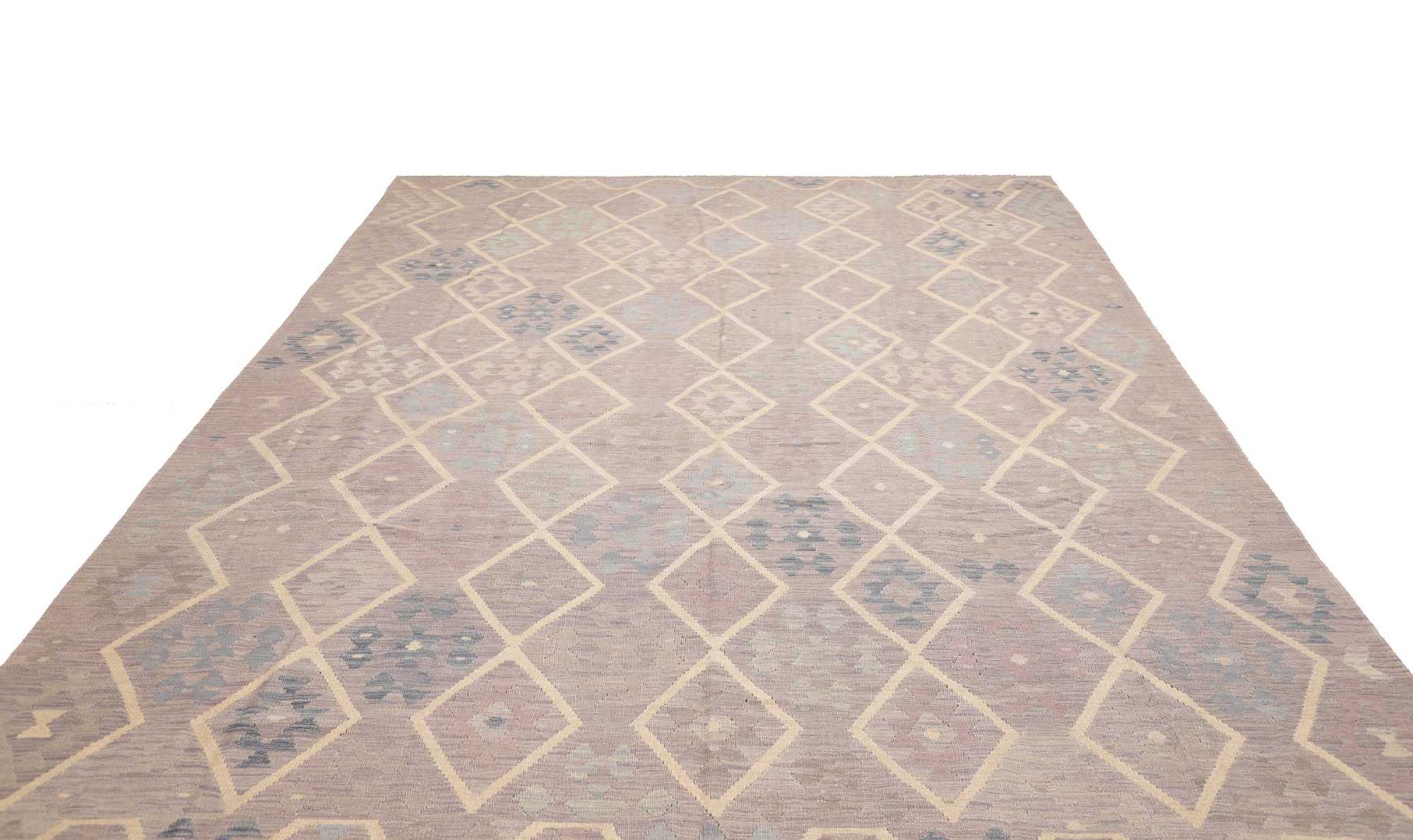 This handwoven Kilim Afghan is a wonderful and unique piece of art. Hard to believe that these modern colours and patterns have already been used centuries ago. This carpet has been woven by hand in old tradition in Afghanistan. It delivers a portion of contemporary history, which you won't find in this specific design a second time. It consists of high-grade natural wool and gives your home a personalised touch.