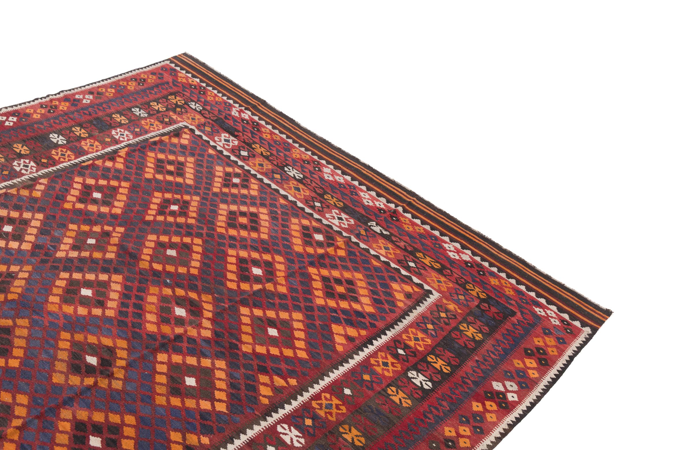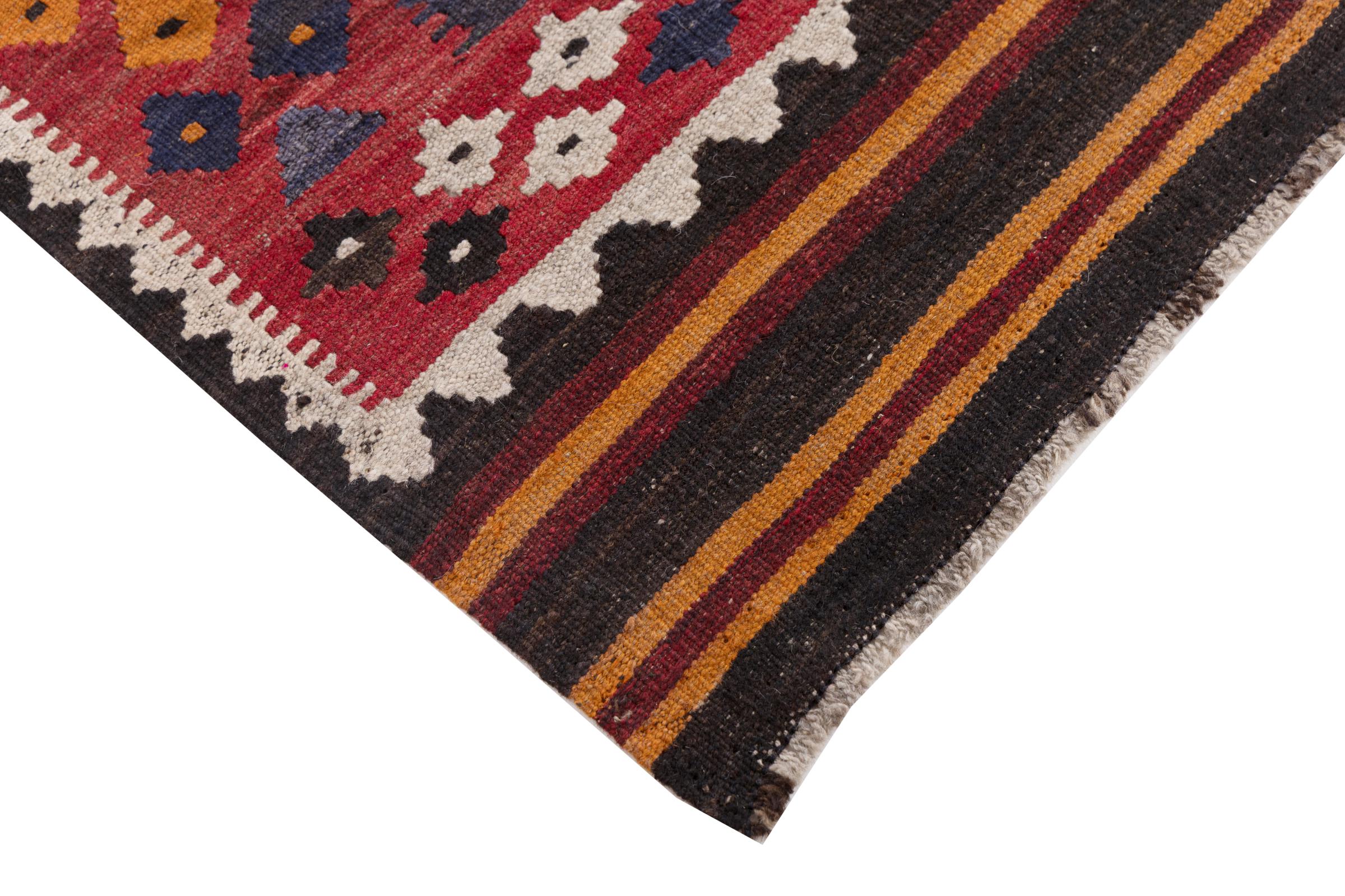This handwoven Kilim Afghan is a wonderful and unique piece of art. Hard to believe that these modern colours and patterns have already been used centuries ago. This carpet has been woven by hand in old tradition in Afghanistan. It delivers a portion of contemporary history, which you won't find in this specific design a second time. It consists of high-grade natural wool and gives your home a personalised touch.