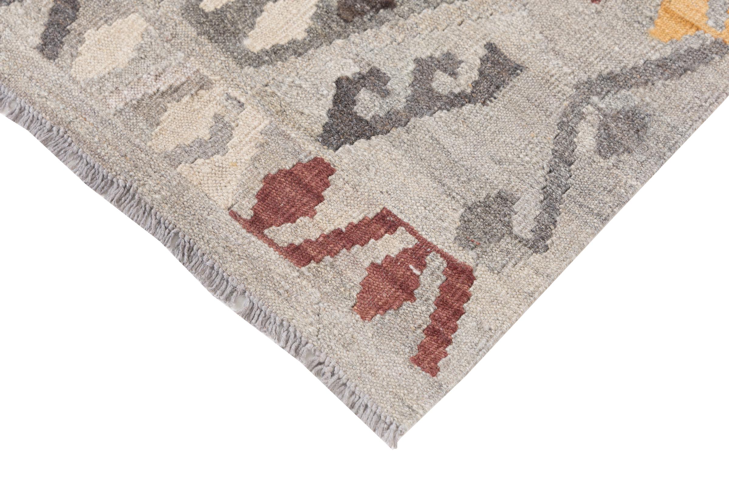 Our Kilim Afghan Heritage collection is in each and every detail exceptional. It combines the most traditional way of crafting a Kilim with contemporary modern design elements. Not only has this carpet been woven by hand, its wool has also been spun by hand like for Kilims centuries ago. The geometric patterns make this carpet a pure enrichment for modern interior concepts. It is going to deeply impress you and your guests. You won't get more value for your money than for this Kilim Heritage.