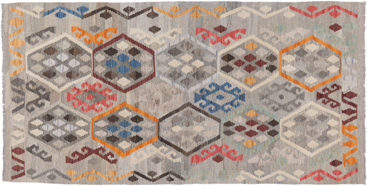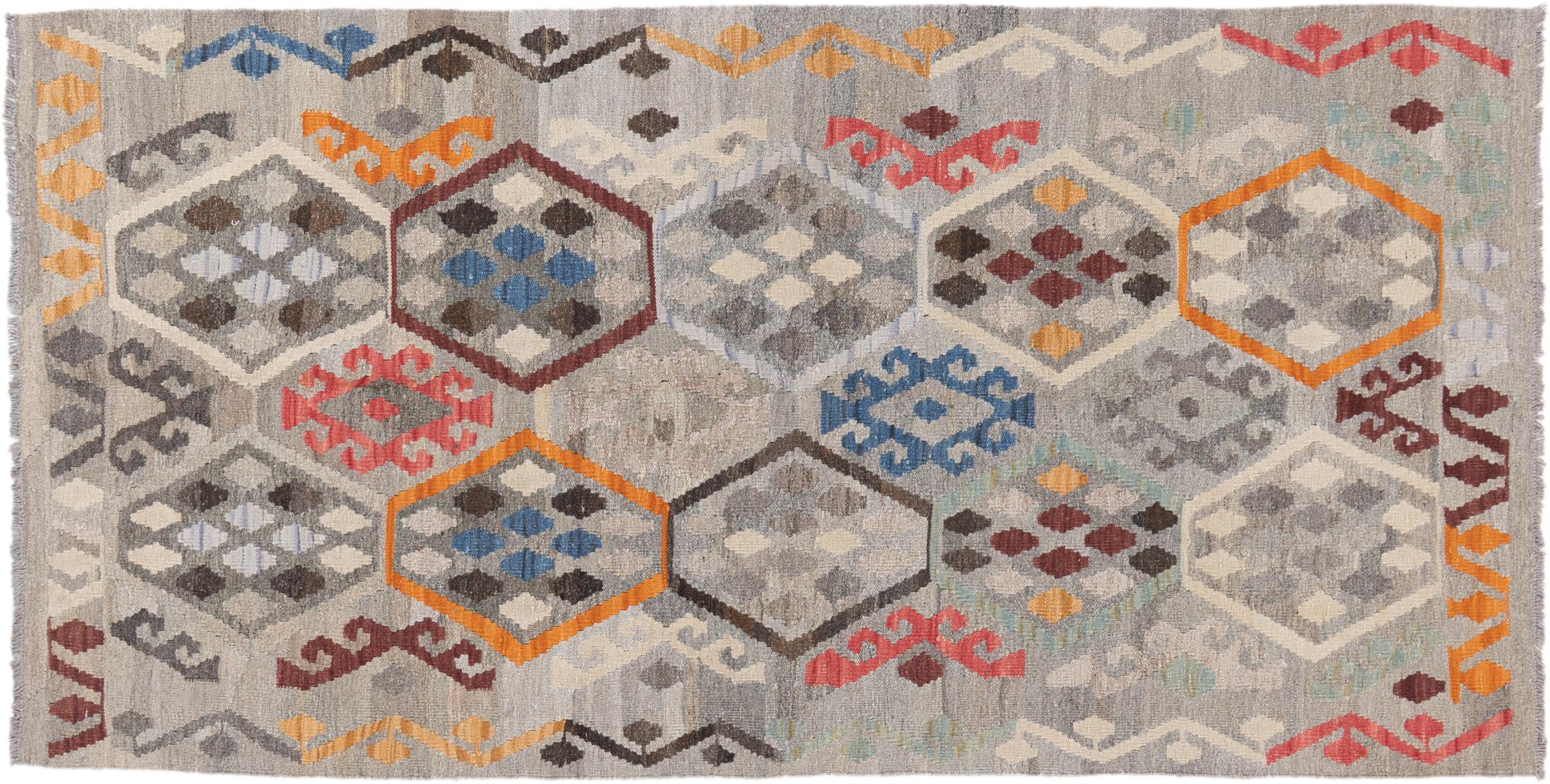 Carpet ID: 2949690049077 Size: 198x100 cm Thickness: ap. 3 mm Manufacturing: Woven by hand Pile: Handspun wool Warp: Sheep wool Origin: Afghanistan Age: New Weight: ap. 3 kg Also know as Kilim, Qilim, Chilim, Afgan, Afghán In stock: Unique - Only 1 in stock