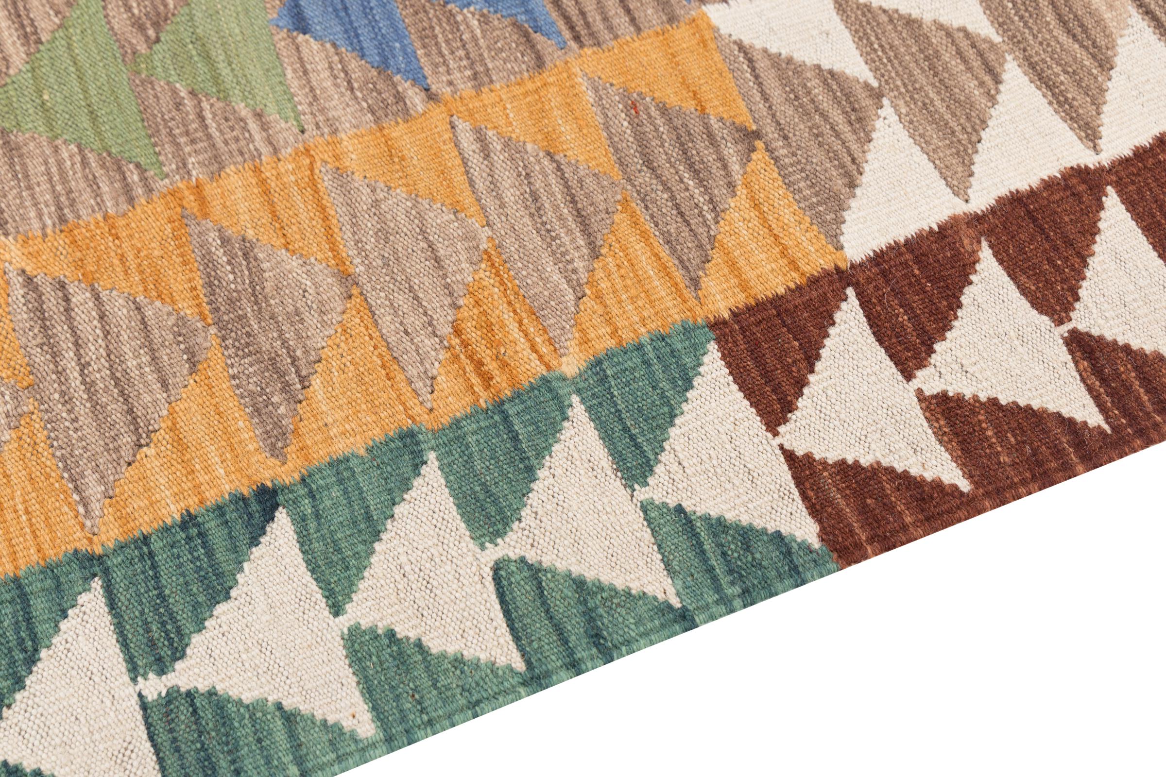 Our Kilim Afghan Heritage collection is in each and every detail exceptional. It combines the most traditional way of crafting a Kilim with contemporary modern design elements. Not only has this carpet been woven by hand, its wool has also been spun by hand like for Kilims centuries ago. The geometric patterns make this carpet a pure enrichment for modern interior concepts. It is going to deeply impress you and your guests. You won't get more value for your money than for this Kilim Heritage.