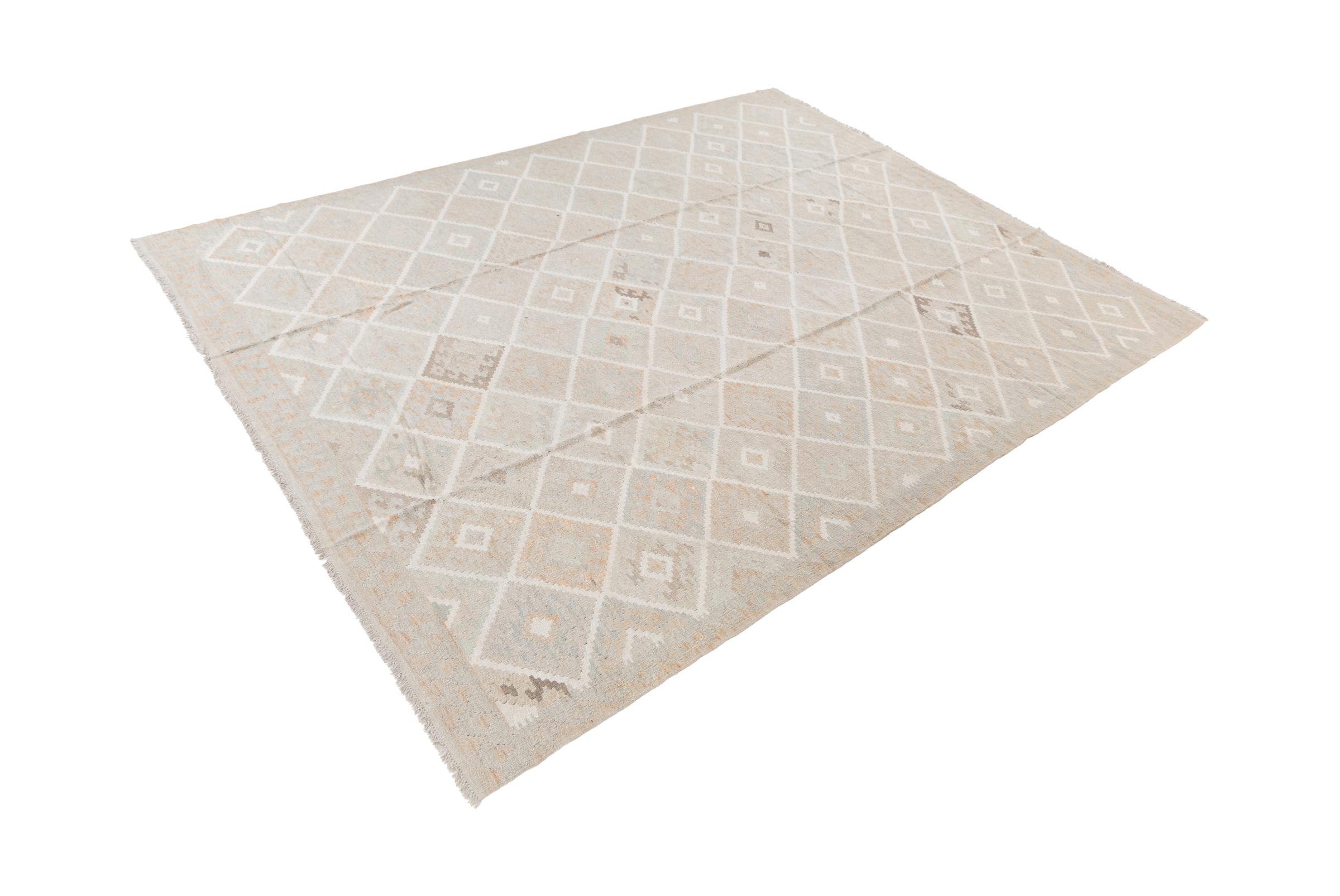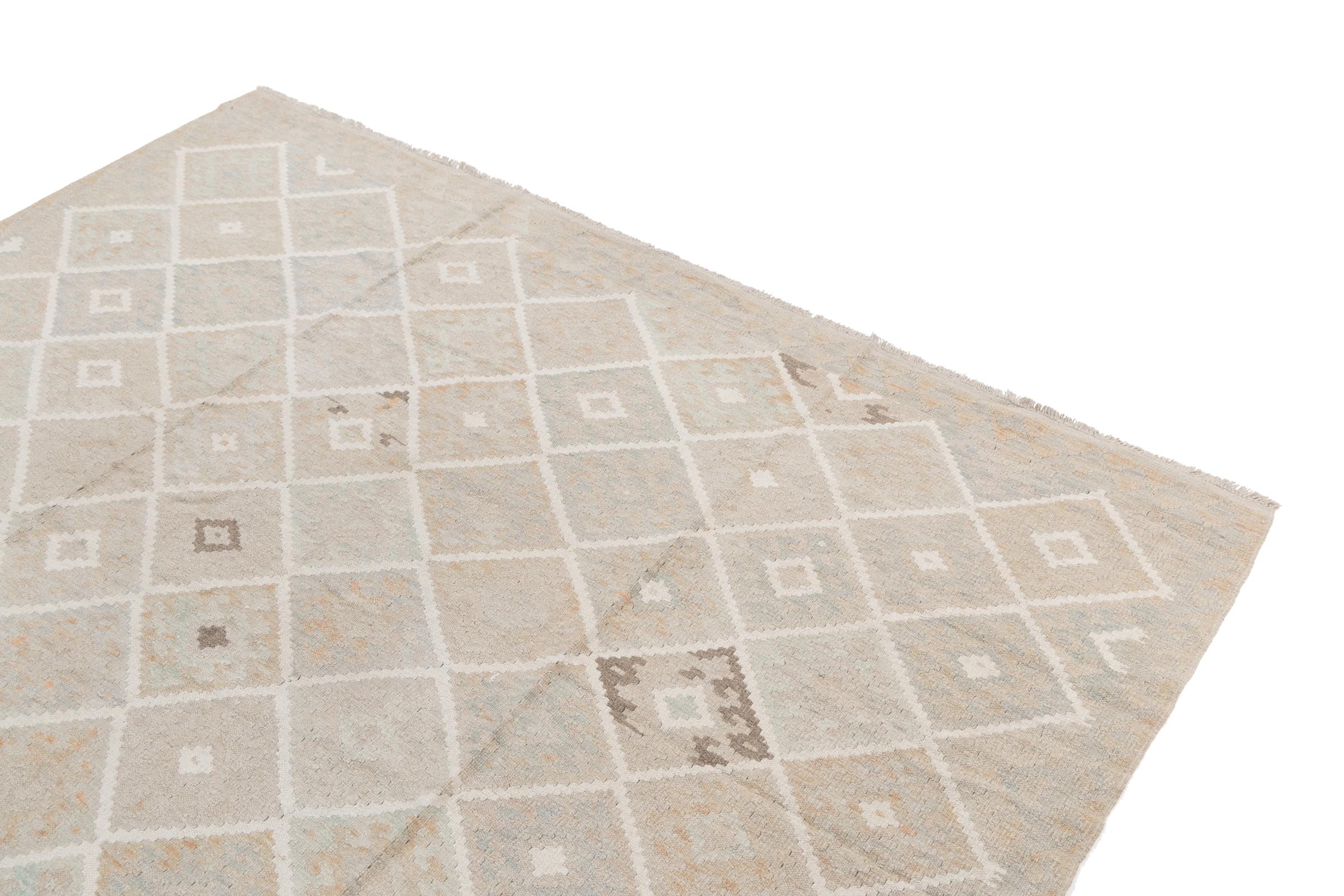 Our Kilim Afghan Heritage collection is in each and every detail exceptional. It combines the most traditional way of crafting a Kilim with contemporary modern design elements. Not only has this carpet been woven by hand, its wool has also been spun by hand like for Kilims centuries ago. The geometric patterns make this carpet a pure enrichment for modern interior concepts. It is going to deeply impress you and your guests. You won't get more value for your money than for this Kilim Heritage.