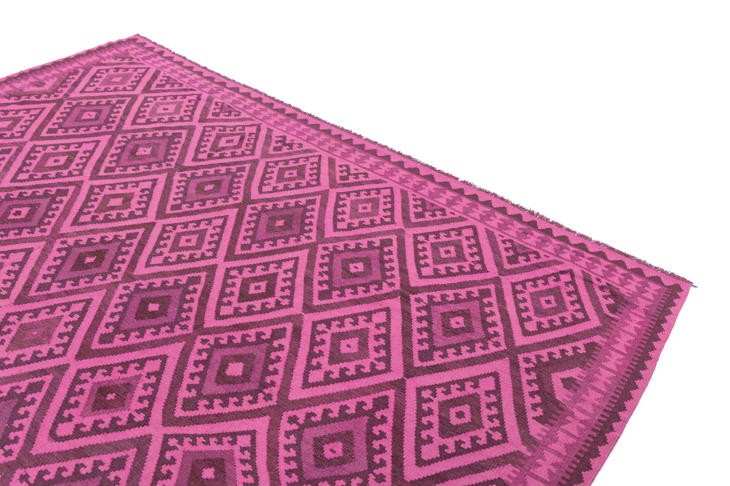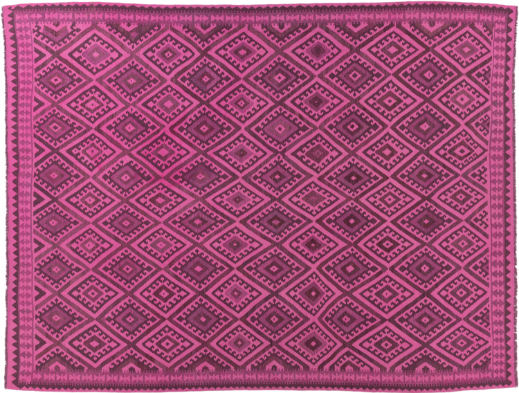 This rug was made as a flat weave by hand on a loom. Flatweave is the term used to describe rugs that have no pile. As the name promises, these rugs are woven and not knotted. This results in a flat rug with a structured surface. Flatweaves are not as soft and usually thinner than knotted rugs. At the same time they are much less complex to manufacture and can usually be laid out from both sides (front and back). Their patterns are usually geometric, which is determined by the fabric.