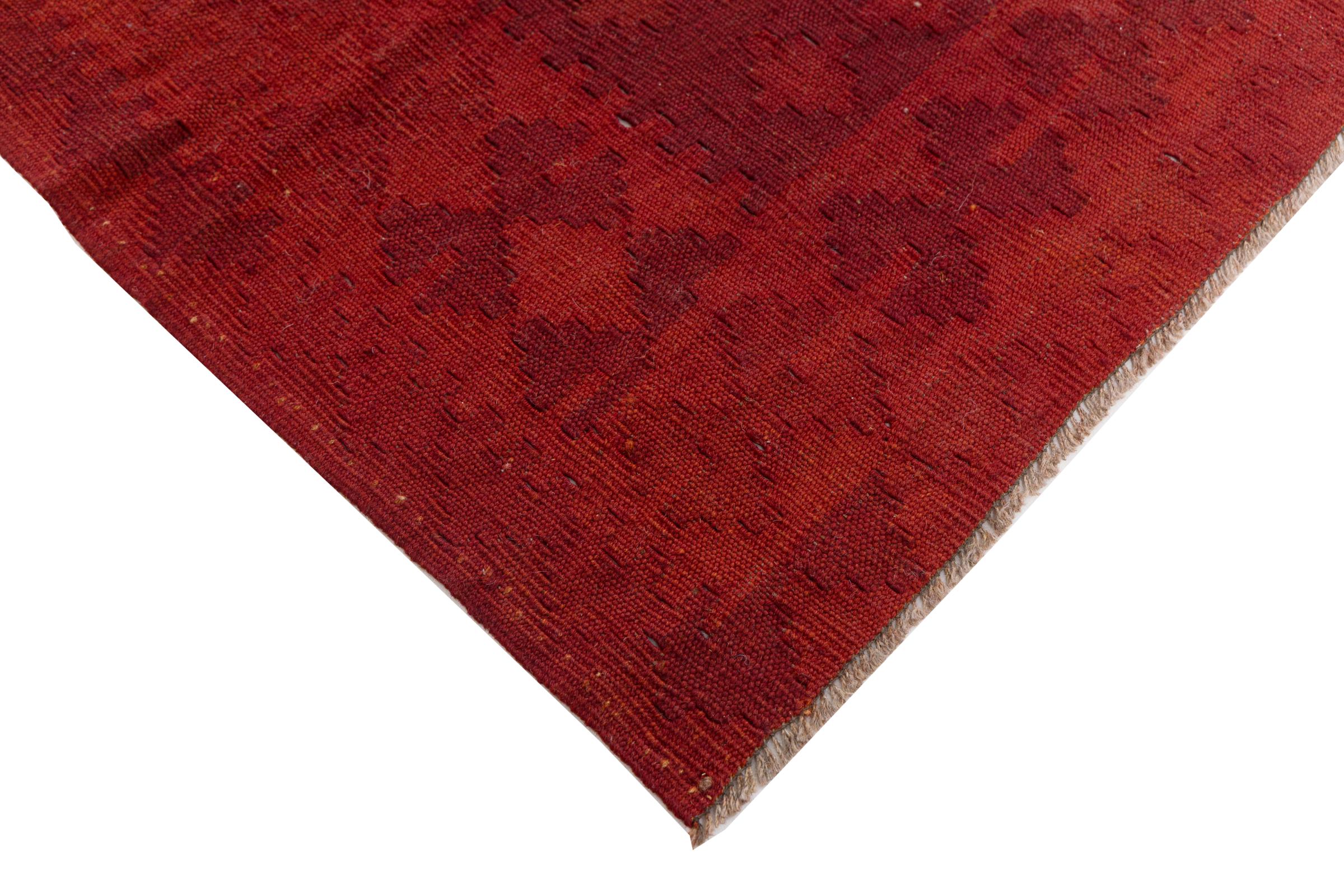 This rug was made as a flat weave by hand on a loom. Flatweave is the term used to describe rugs that have no pile. As the name promises, these rugs are woven and not knotted. This results in a flat rug with a structured surface. Flatweaves are not as soft and usually thinner than knotted rugs. At the same time they are much less complex to manufacture and can usually be laid out from both sides (front and back). Their patterns are usually geometric, which is determined by the fabric.