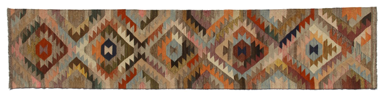 These kilim rugs show a decisive difference to hand-knotted rugs - they are woven by hand. Thus, they do not have a high pile of wool and are often flatter and rougher than knotted wool rugs. Their making is less elaborate and so they are usually much more affordable. As an advantage, kilim rugs are also much lighter and can be laid out from the front and back side. Hand-woven kilims originally come from the former Persia and are now also often made in Afghanistan. They have rather simple, straightforward patterns, which are determined by their weaving technique.
