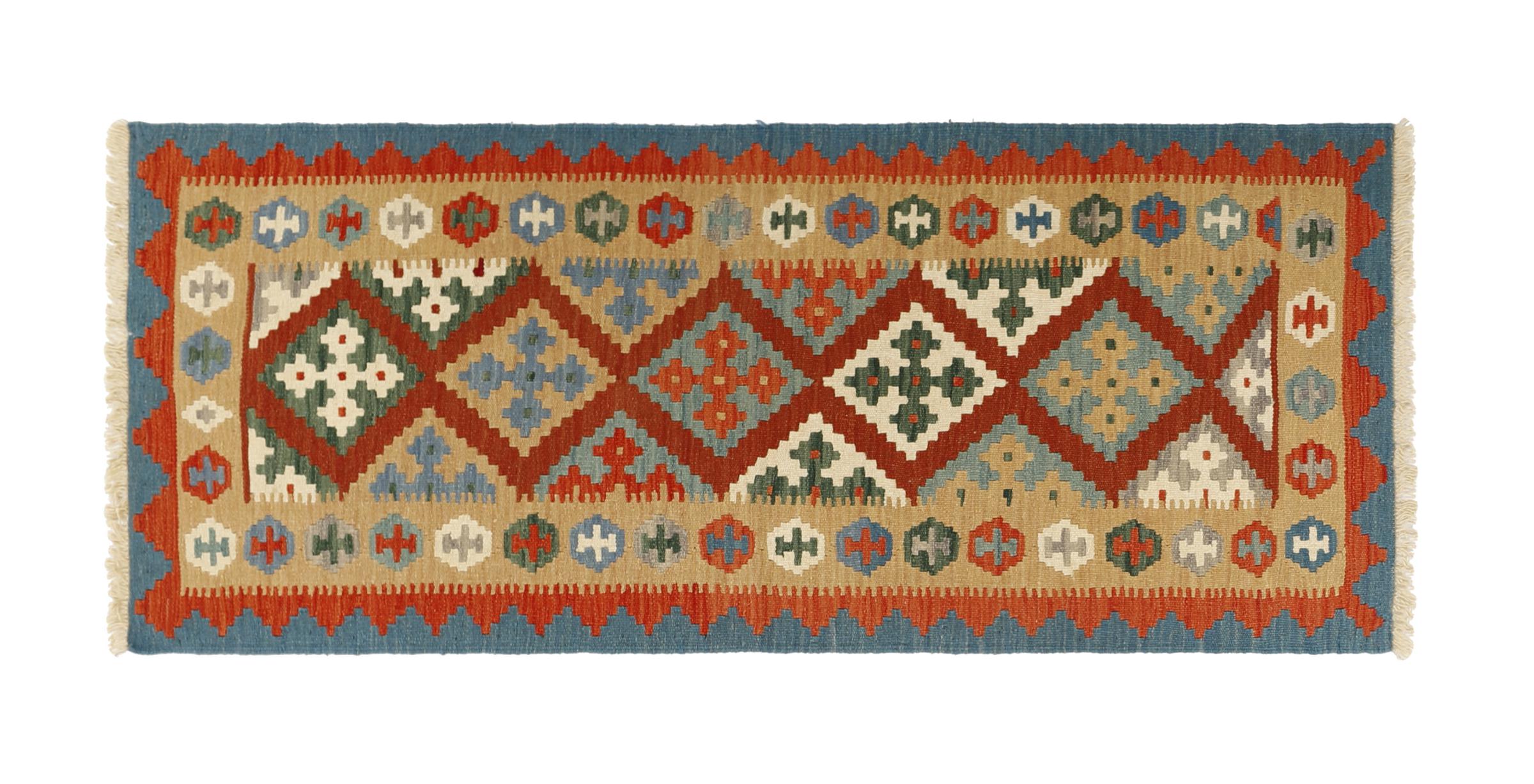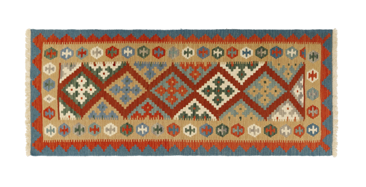 These kilim rugs show a decisive difference to hand-knotted rugs - they are woven by hand. Thus, they do not have a high pile of wool and are often flatter and rougher than knotted wool rugs. Their making is less elaborate and so they are usually much more affordable. As an advantage, kilim rugs are also much lighter and can be laid out from the front and back side. Hand-woven kilims originally come from the former Persia and are now also often made in Afghanistan. They have rather simple, straightforward patterns, which are determined by their weaving technique.