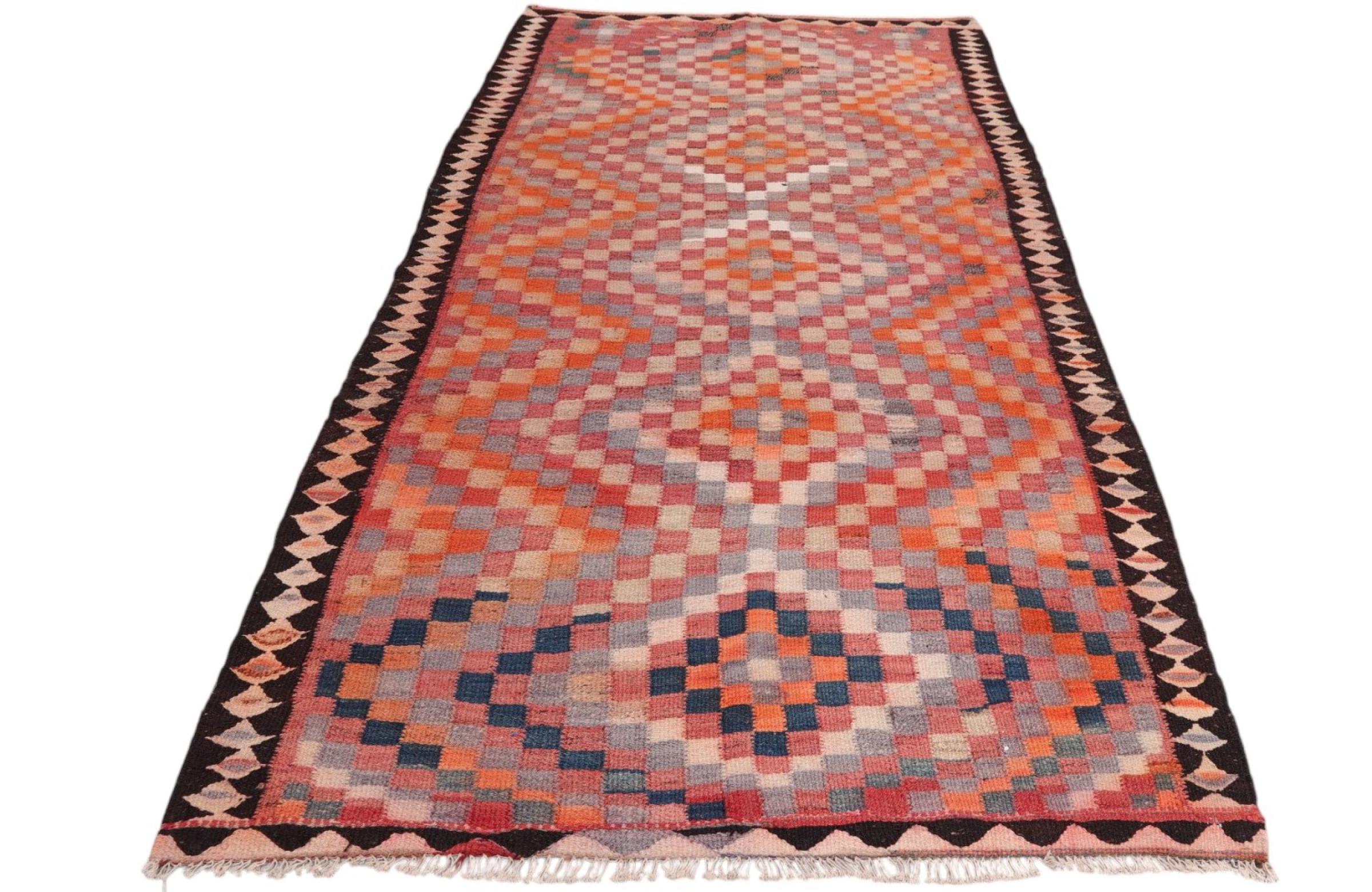This handwoven Kilim Fars combines Persian patterns with the old tradition of flat fabrics. It represents a beautiful composition of contemporary Persian elements and a modern style. Due to the carpet's geometric patterns and its warm colours, this type of rug is extremely popular in modern interior magazines. Additionally, this Kilim can be used in many different ways. Whether you would like to use it as a bed cover or as a carpet in front of your sofa – a Kilim Fars fulfils nearly all wishes.