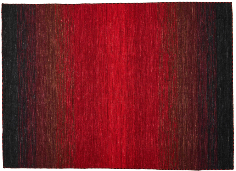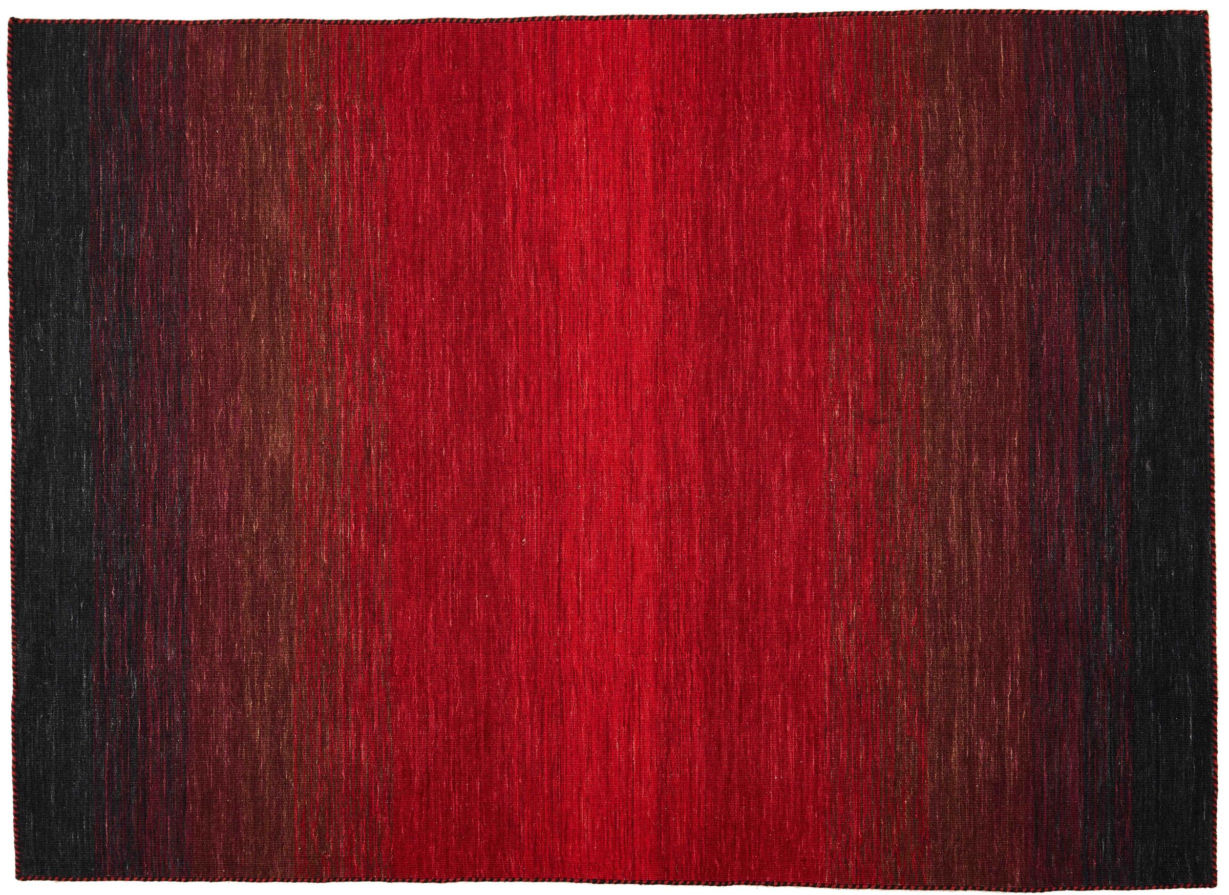 This rug was made as a flat weave by hand on a loom. Flatweave is the term used to describe rugs that have no pile. As the name promises, these rugs are woven and not knotted. This results in a flat rug with a structured surface. Flatweaves are not as soft and usually thinner than knotted rugs. At the same time they are much less complex to manufacture and can usually be laid out from both sides (front and back). Their patterns are usually geometric, which is determined by the fabric.