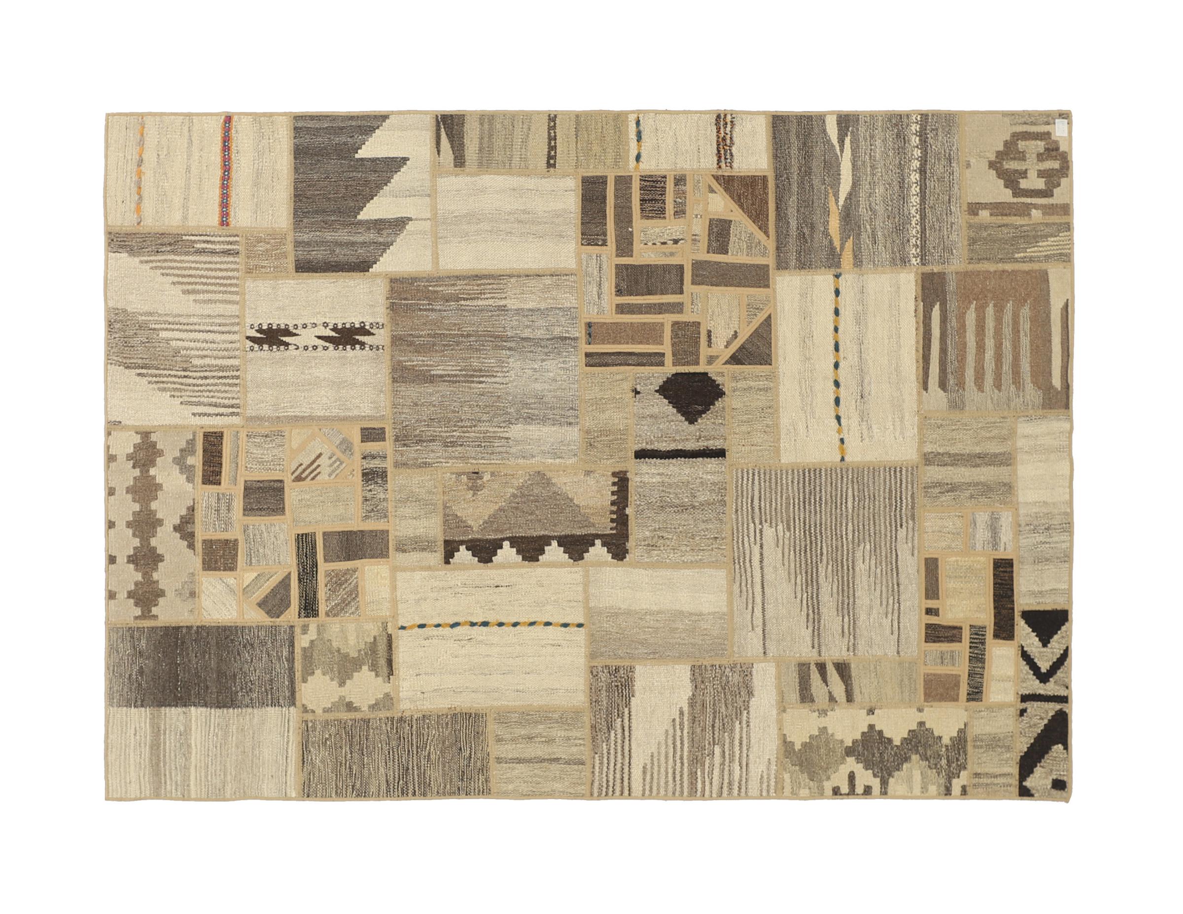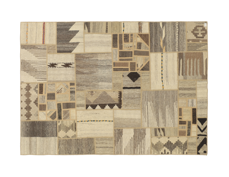 This beautiful patchwork kilim combines the fine craftsmanship of talented master carpet weavers from Iran, Afghanistan, Turkey and the Caucasus. The individual pieces of traditionally produced kilims have been cleaned, processed and assembled into a new pattern. The result is an oriental rug with a unique design in a patchwork look that is both light and robust thanks to its woven structure.