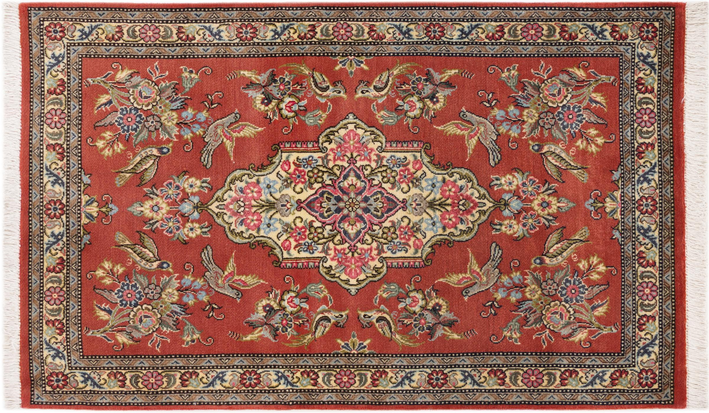 Carpet ID: 29681700109 Size: 123x76 cm Thickness: ap. 10 mm Knot density: 360 000 - 400 000 / m² Manufacturing: Knotted by hand Pile: Cork wool with silk Warp: Cotton Origin: Persia Age: New Weight: ap. 3 kg In stock: Unique - Only 1 in stock