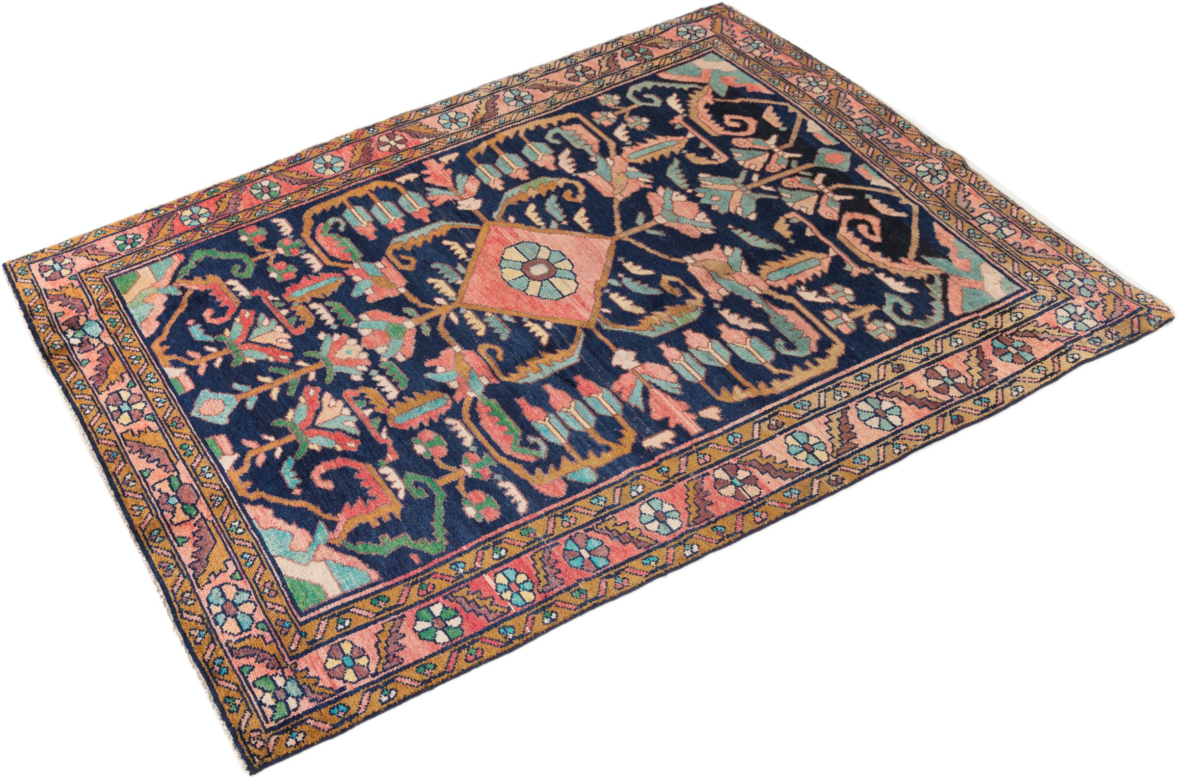 Carpet ID: 296166002 Size: 198x127 cm Thickness: ap. 8 mm Knot density: 200 000 - 250 000 / m² Manufacturing: Knotted by hand Pile: Handspun wool Warp: Cotton Origin: Persia Age: Old/Semi antique, over 50 years Weight: ap. 9 kg In stock: Unique - Only 1 in stock