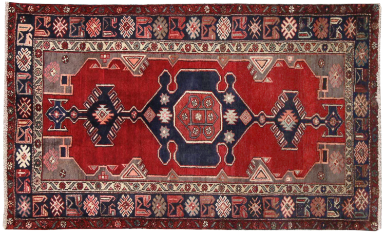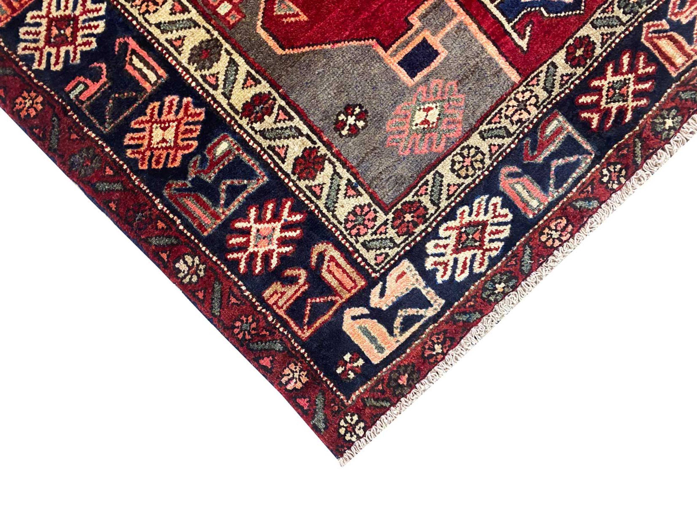 This rug belongs to village and nomadic rugs from Iran, formerly Persia. This type of rug is knotted by hand in smaller towns and villages in old tradition. Even nomads still knot Persian rugs in the open air. The rugs are knotted without a draft and completely from the mind. They are characterized by classical ornaments, which are arranged in straight and geometrical patterns. Thanks to their cultural-traditional origin, these rugs have a unique character that embodies ancient Persia.