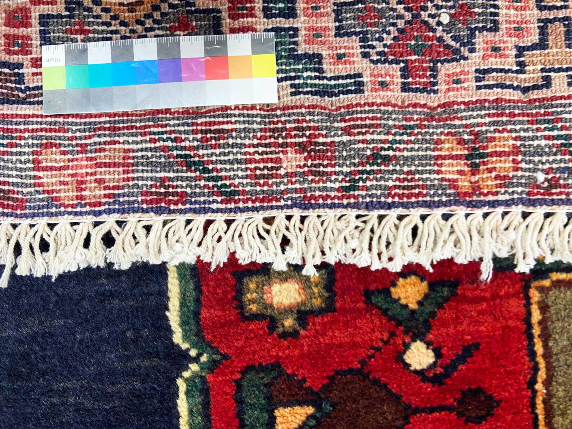 This rug belongs to village and nomadic rugs from Iran, formerly Persia. This type of rug is knotted by hand in smaller towns and villages in old tradition. Even nomads still knot Persian rugs in the open air. The rugs are knotted without a draft and completely from the mind. They are characterized by classical ornaments, which are arranged in straight and geometrical patterns. Thanks to their cultural-traditional origin, these rugs have a unique character that embodies ancient Persia.