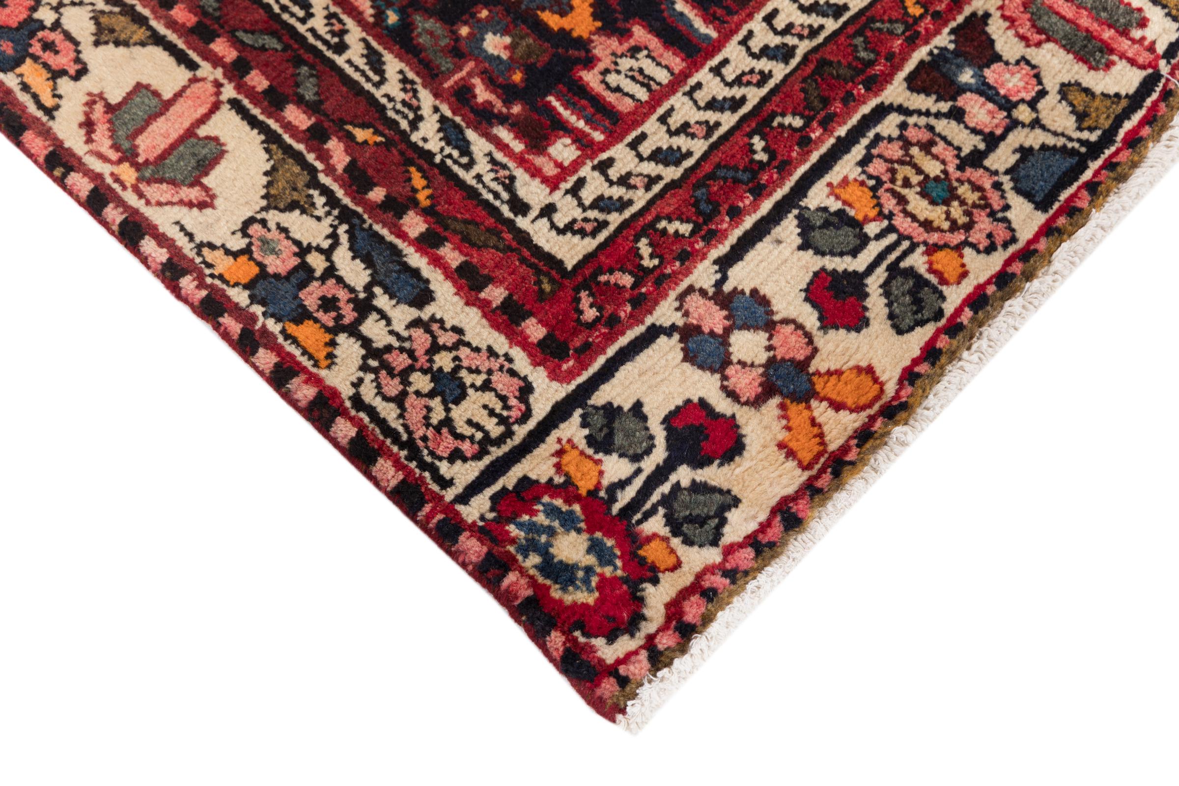 This rug belongs to village and nomadic rugs from Iran, formerly Persia. This type of rug is knotted by hand in smaller towns and villages in old tradition. Even nomads still knot Persian rugs in the open air. The rugs are knotted without a draft and completely from the mind. They are characterized by classical ornaments, which are arranged in straight and geometrical patterns. Thanks to their cultural-traditional origin, these rugs have a unique character that embodies ancient Persia.