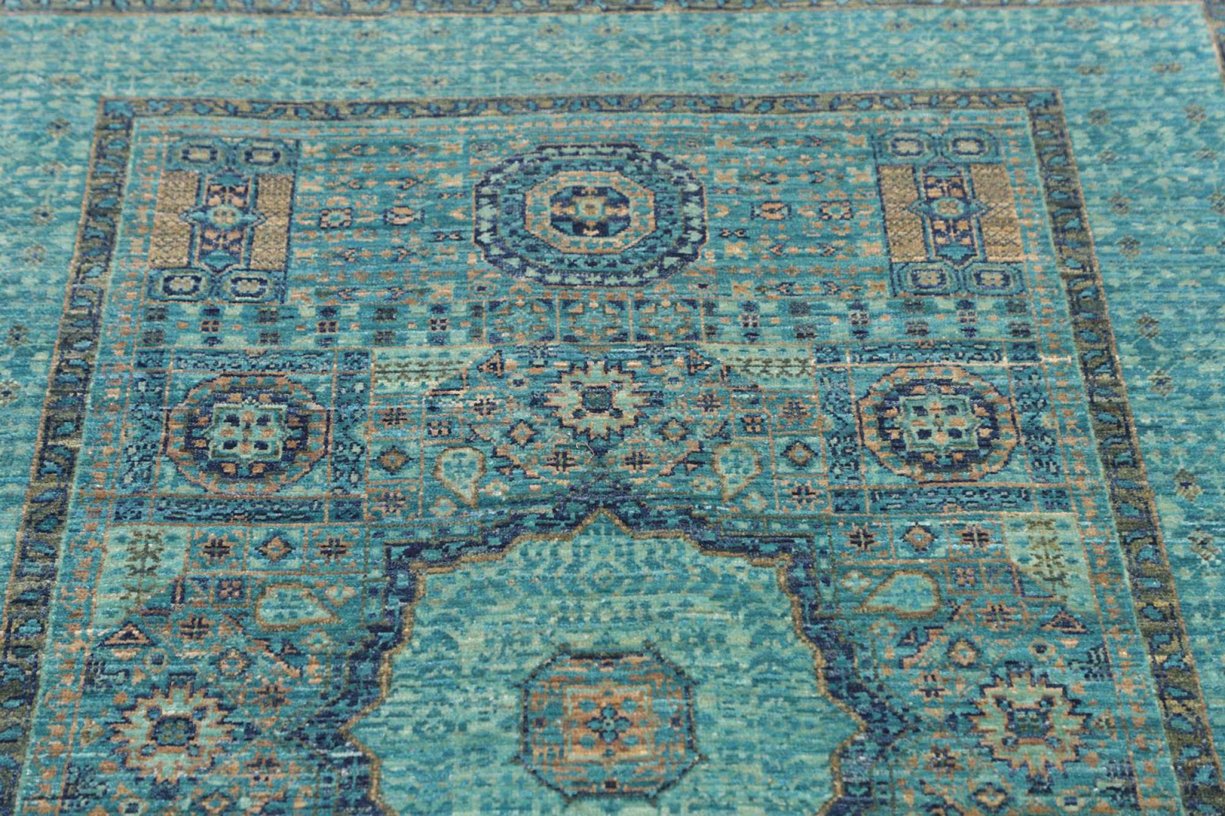 A large part of Pakistani rug production takes place in and around the cities of Lahore and Karachi. Many of the rug knotters of that time fled to Pakistan during the war with India and settled there. Today, especially hand-knotted Pakistan Bukhara rugs are well-known. Similar to the Afghan oriental rugs, Pakistani rugs are also made in dark colours and mostly have shades of red. Even the well-known elephant foot pattern (repeating octagonal pattern) can be found on a Pakistani.