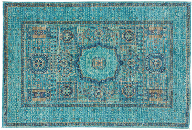 Carpet ID: 306860001253874 Size: 151x102 cm Thickness: ap. 6 mm Knot density: 200 000 - 250 000 / m² Manufacturing: Knotted by hand Pile: Handspun wool Warp: Cotton Origin: Pakistan Age: New Weight: ap. 5 kg In stock: Unique - Only 1 in stock