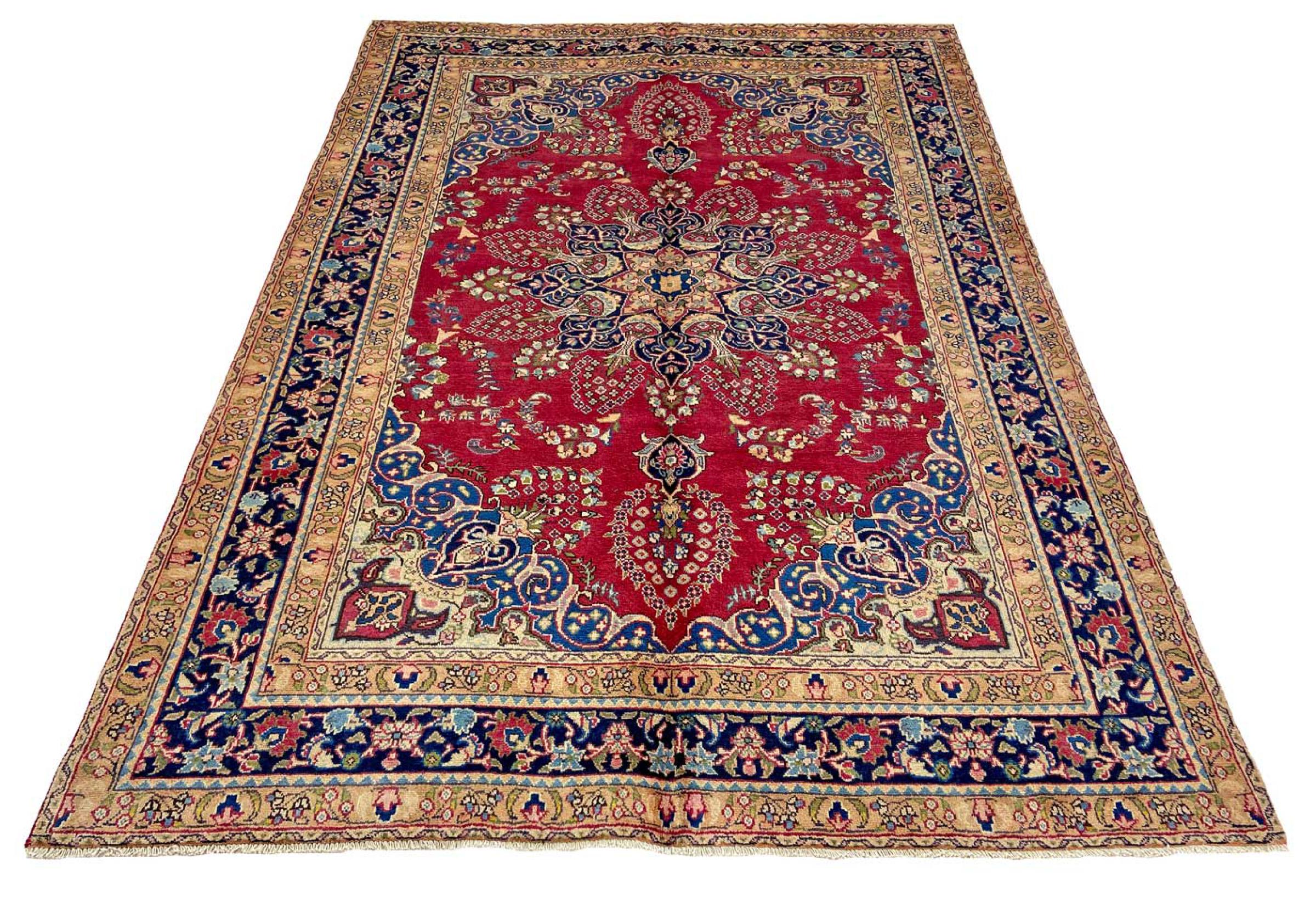 Carpet ID: 318763009055732 Size: 283x196 cm Thickness: ap. 12 mm Knot density: 200 000 - 250 000 / m² Manufacturing: Knotted by hand Pile: Handspun wool Warp: Cotton Origin: Persia Age: New Weight: ap. 19 kg Also know as Maschad, Meshed In stock: Unique - Only 1 in stock