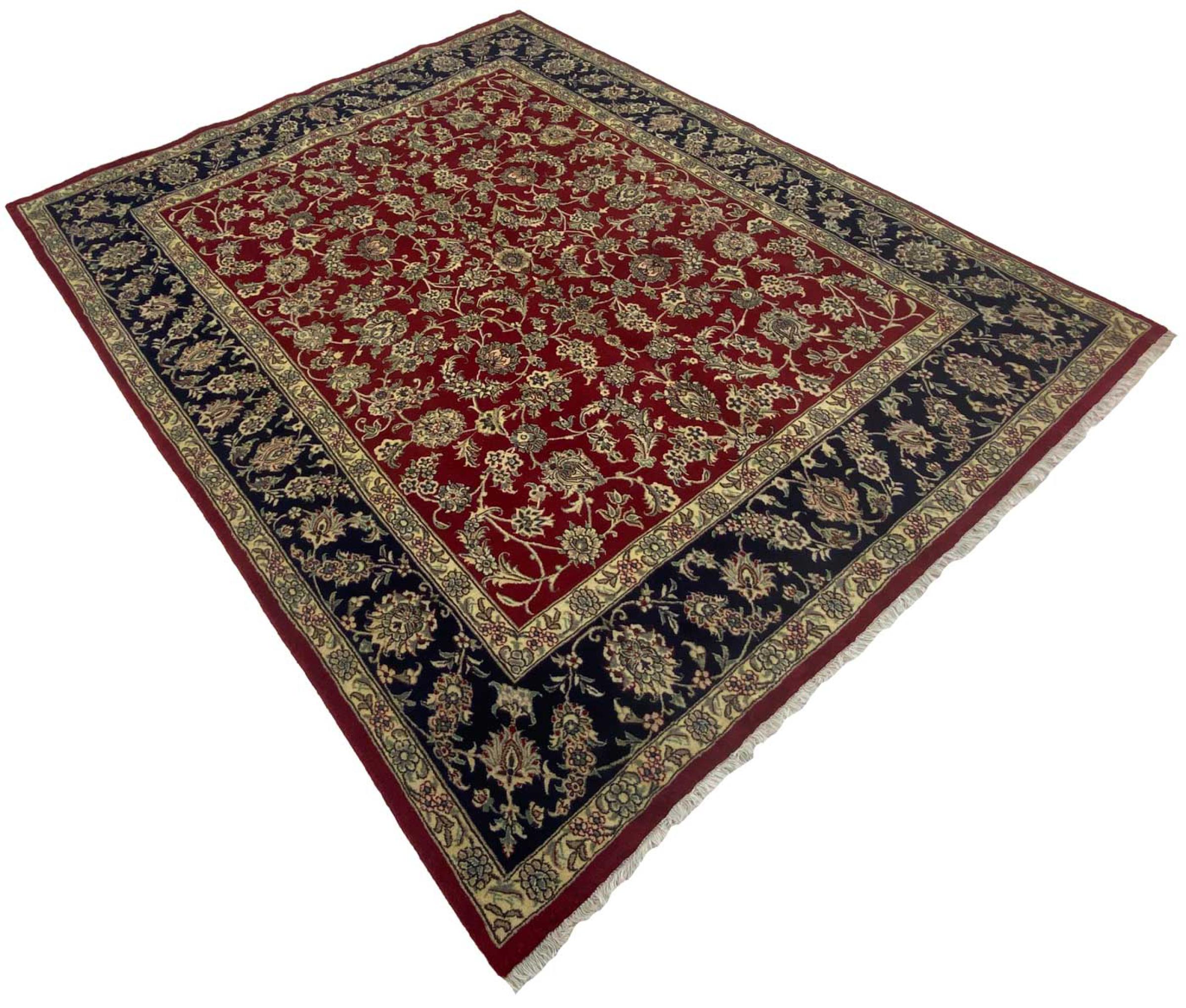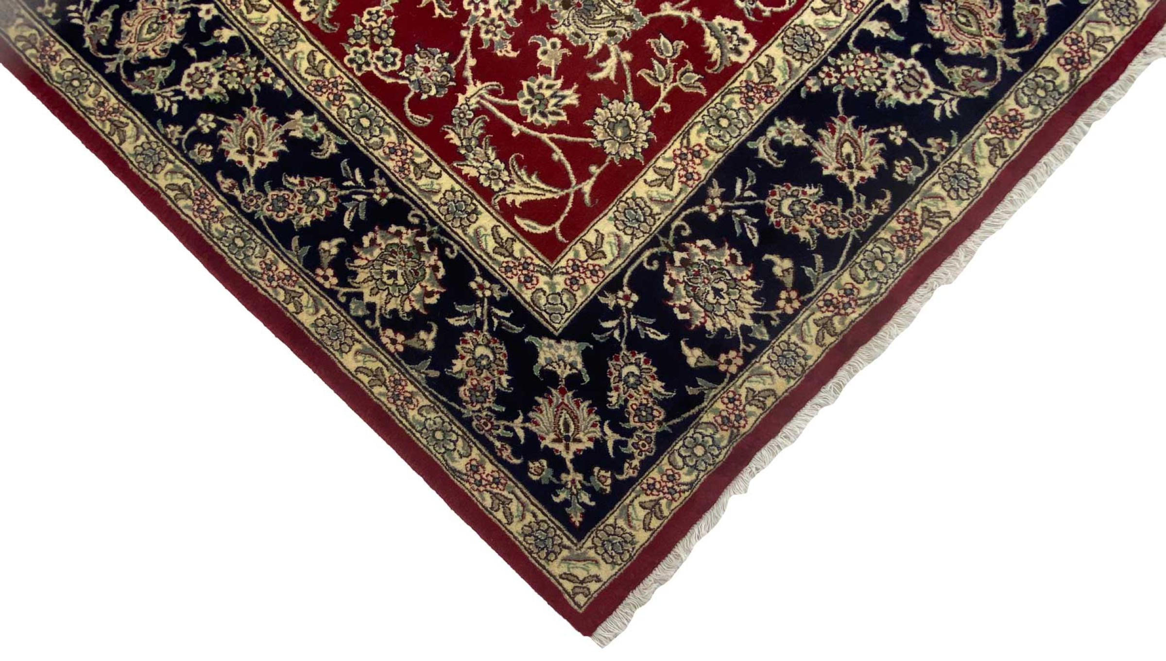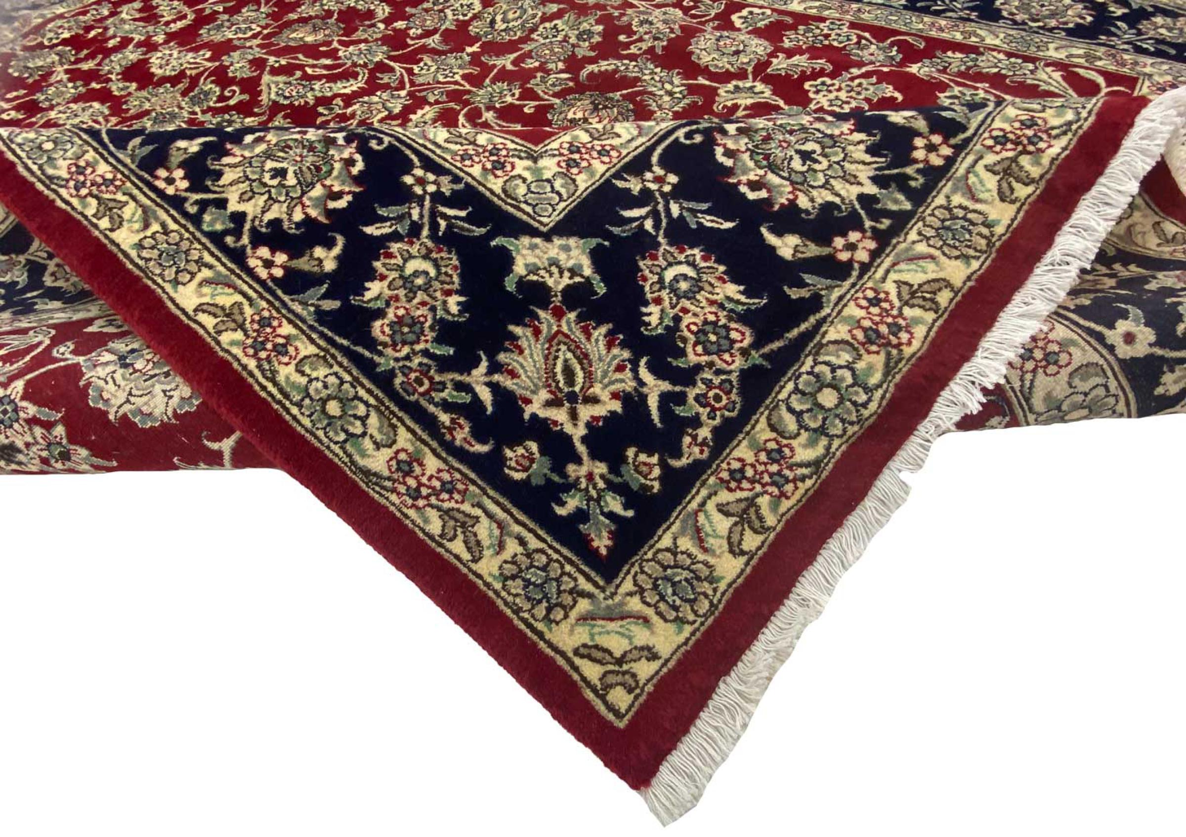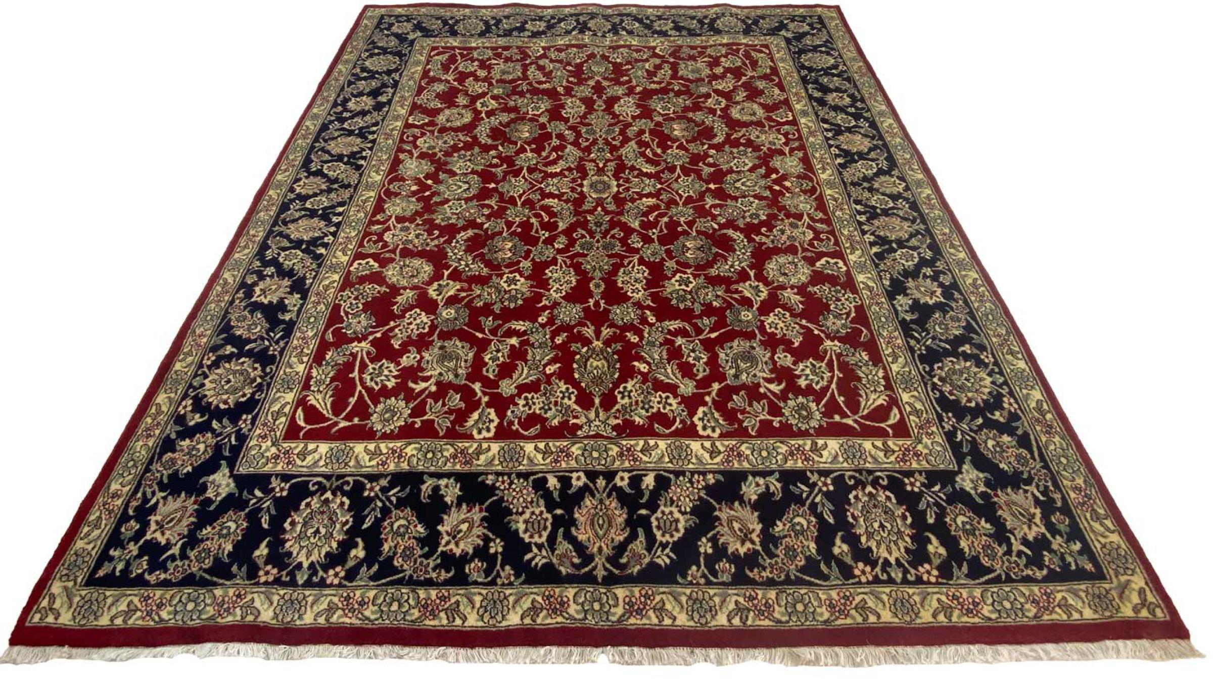 This carpet originates from Mashhad, one of the biggest cities of Iran and Persia. Mashhad carpets are known to be robust and enduring. Mostly they come in extraordinary large scales. A large genuine Persian carpet like this one requires a lot of skill and experience. Generally, it takes several months to craft such a carpet by hand in traditional handicraft.