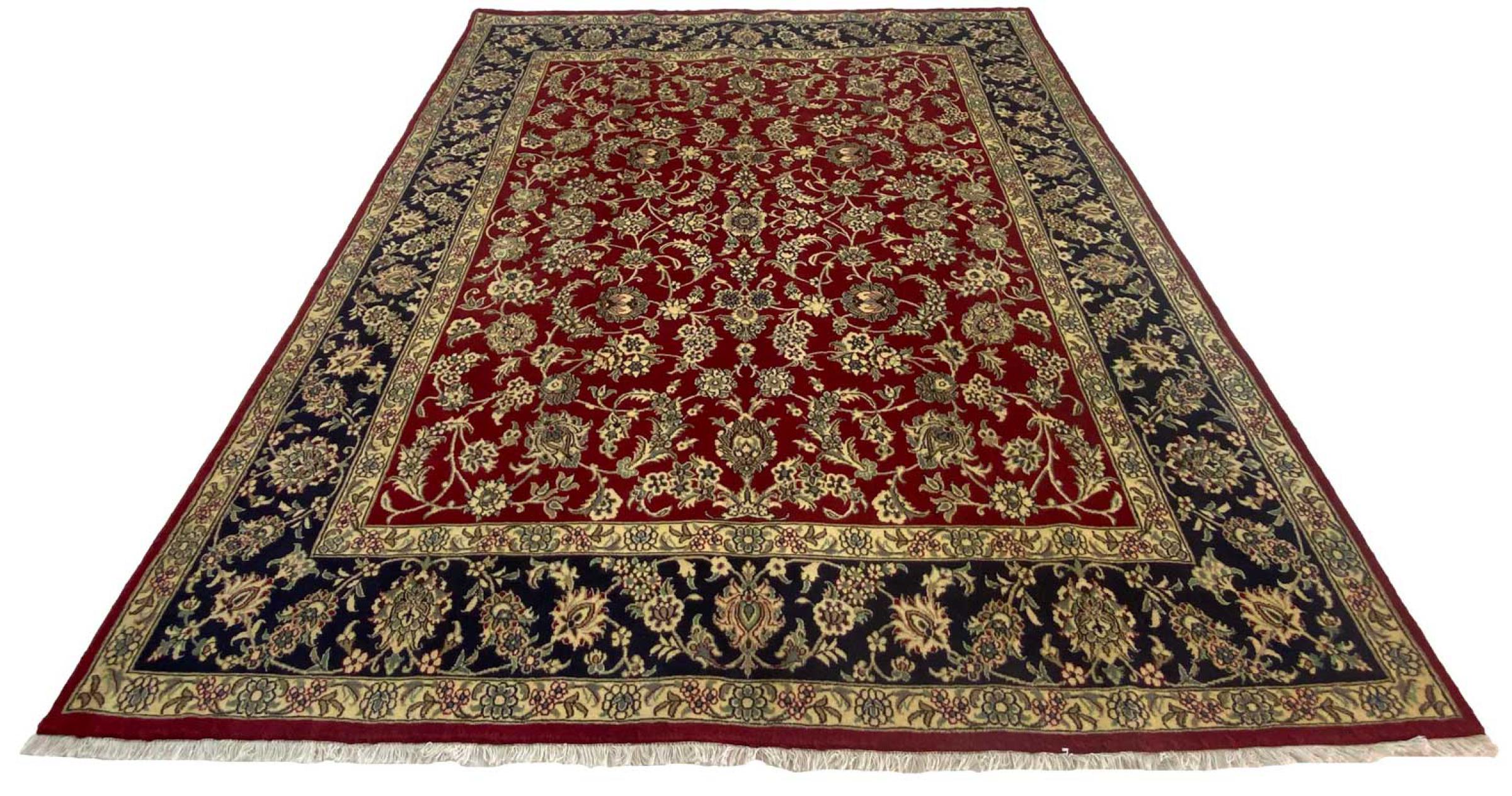 This carpet originates from Mashhad, one of the biggest cities of Iran and Persia. Mashhad carpets are known to be robust and enduring. Mostly they come in extraordinary large scales. A large genuine Persian carpet like this one requires a lot of skill and experience. Generally, it takes several months to craft such a carpet by hand in traditional handicraft.