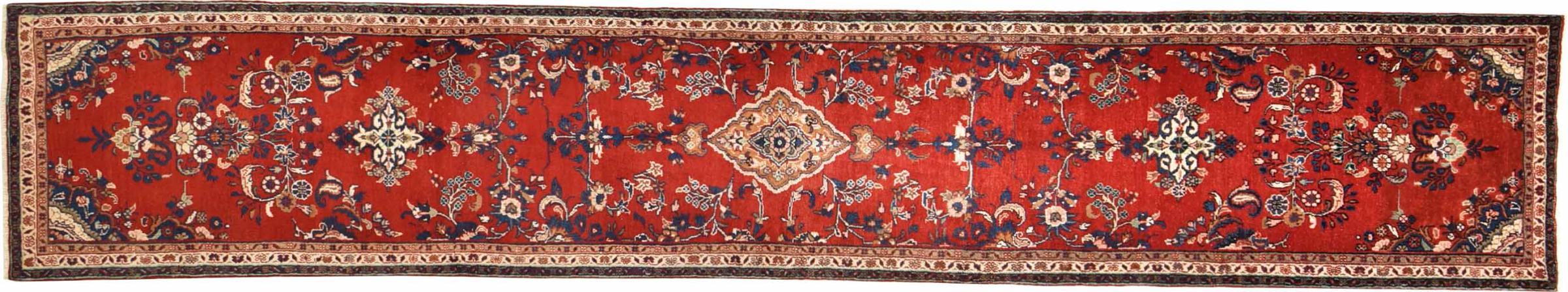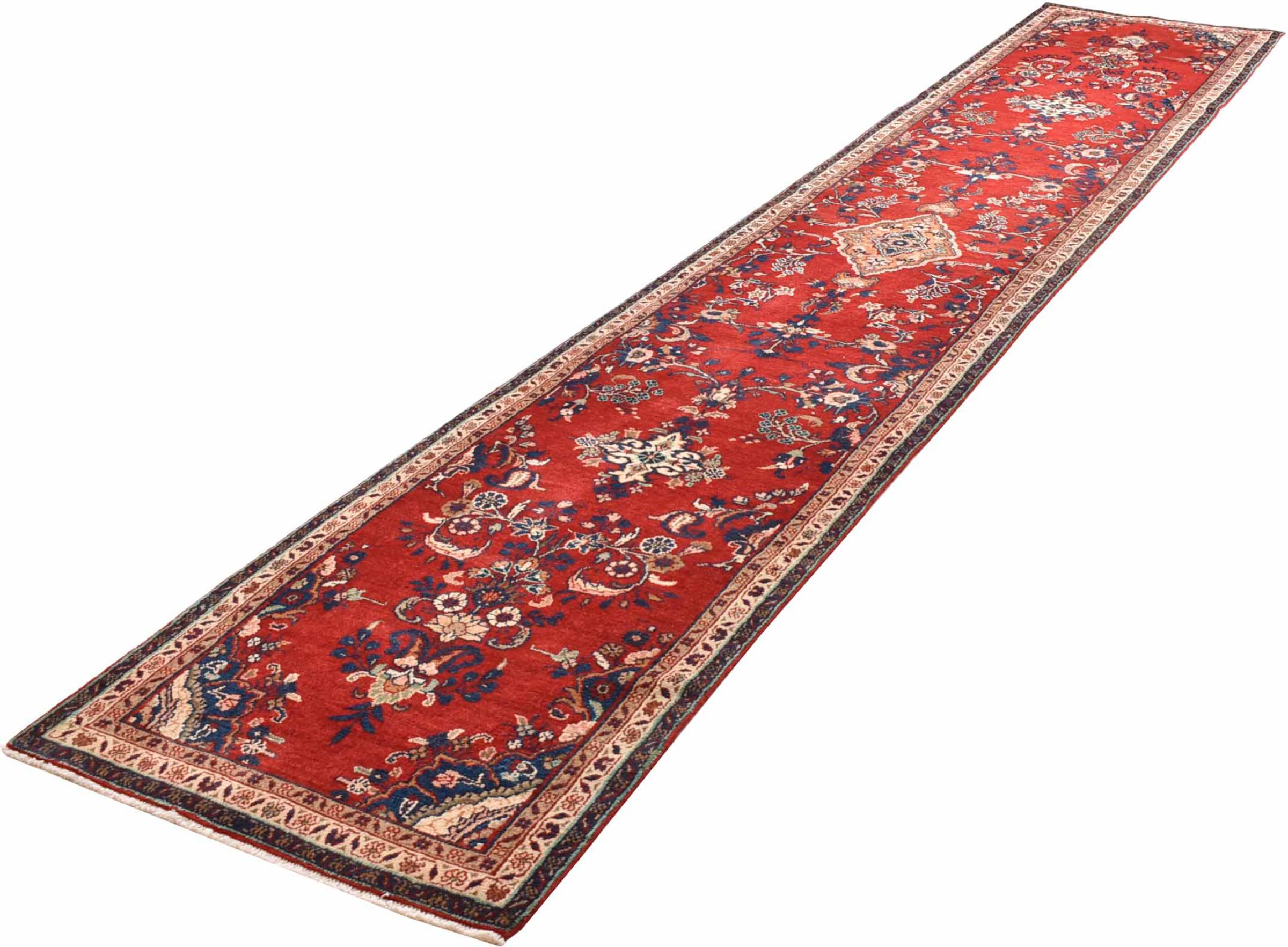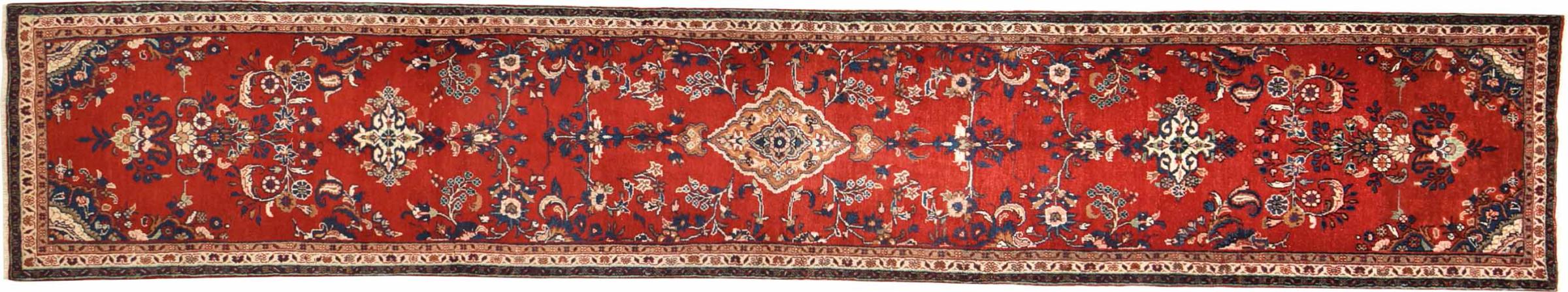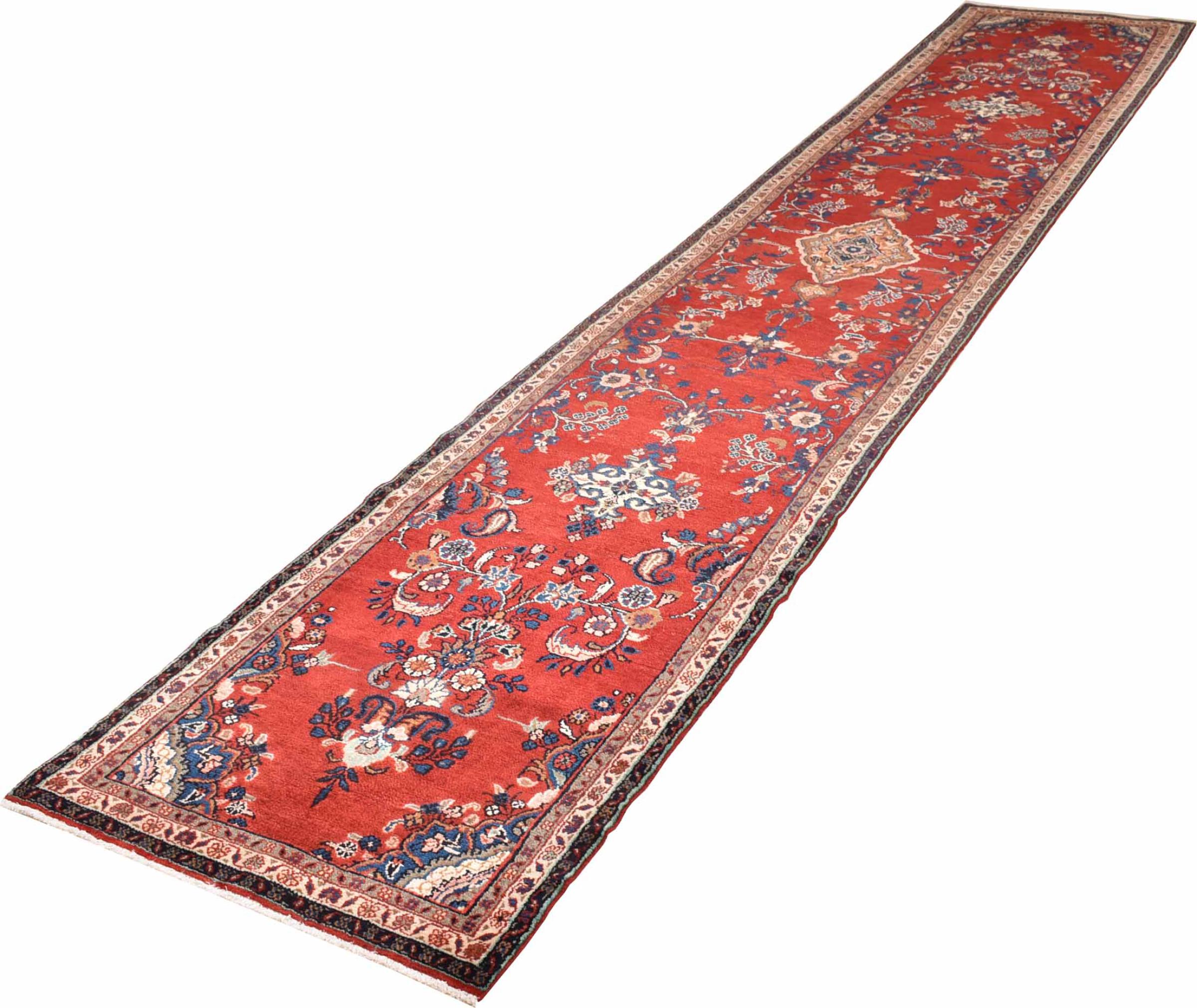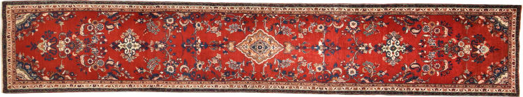 Carpet ID: 300902006393520 Size: 488x87 cm Thickness: ap. 12 mm Knot density: 128 000 - 160 000 / m² Manufacturing: Knotted by hand Pile: Handspun wool Warp: Cotton Origin: Persia Age: New Weight: ap. 15 kg Also know as Meriban In stock: Unique - Only 1 in stock