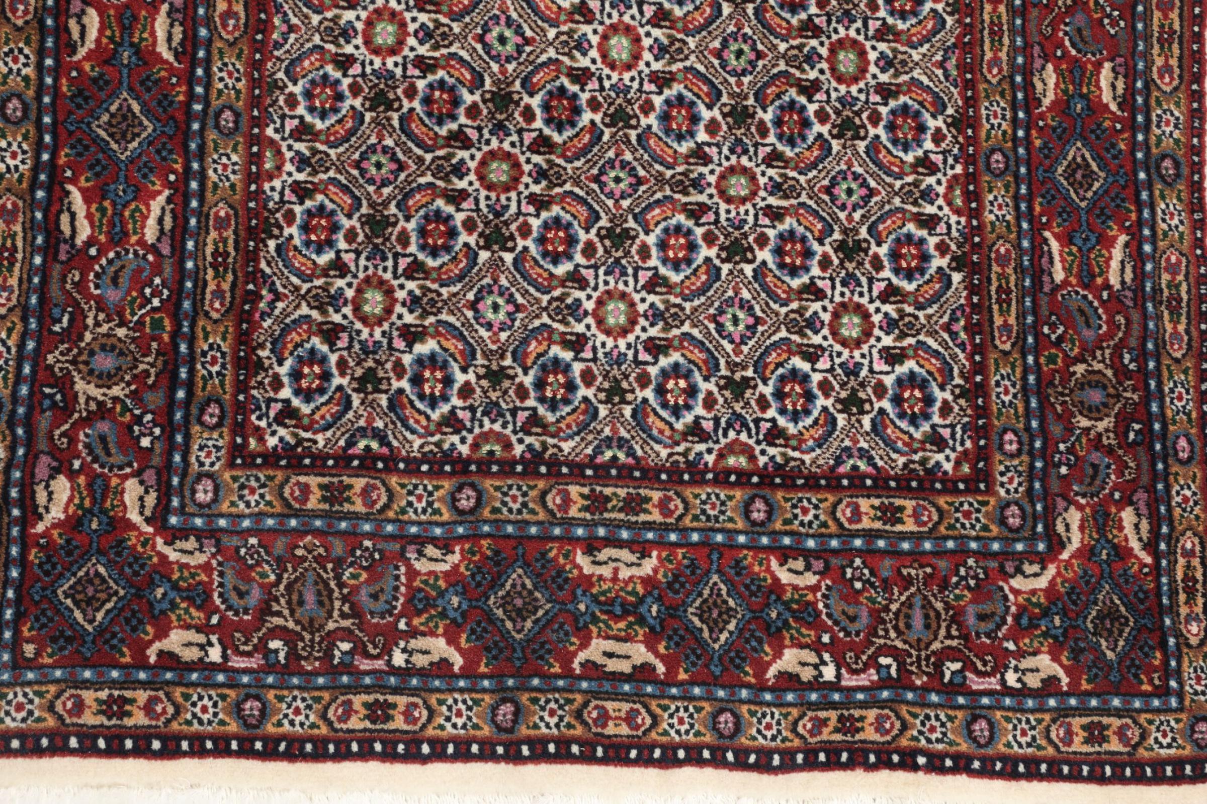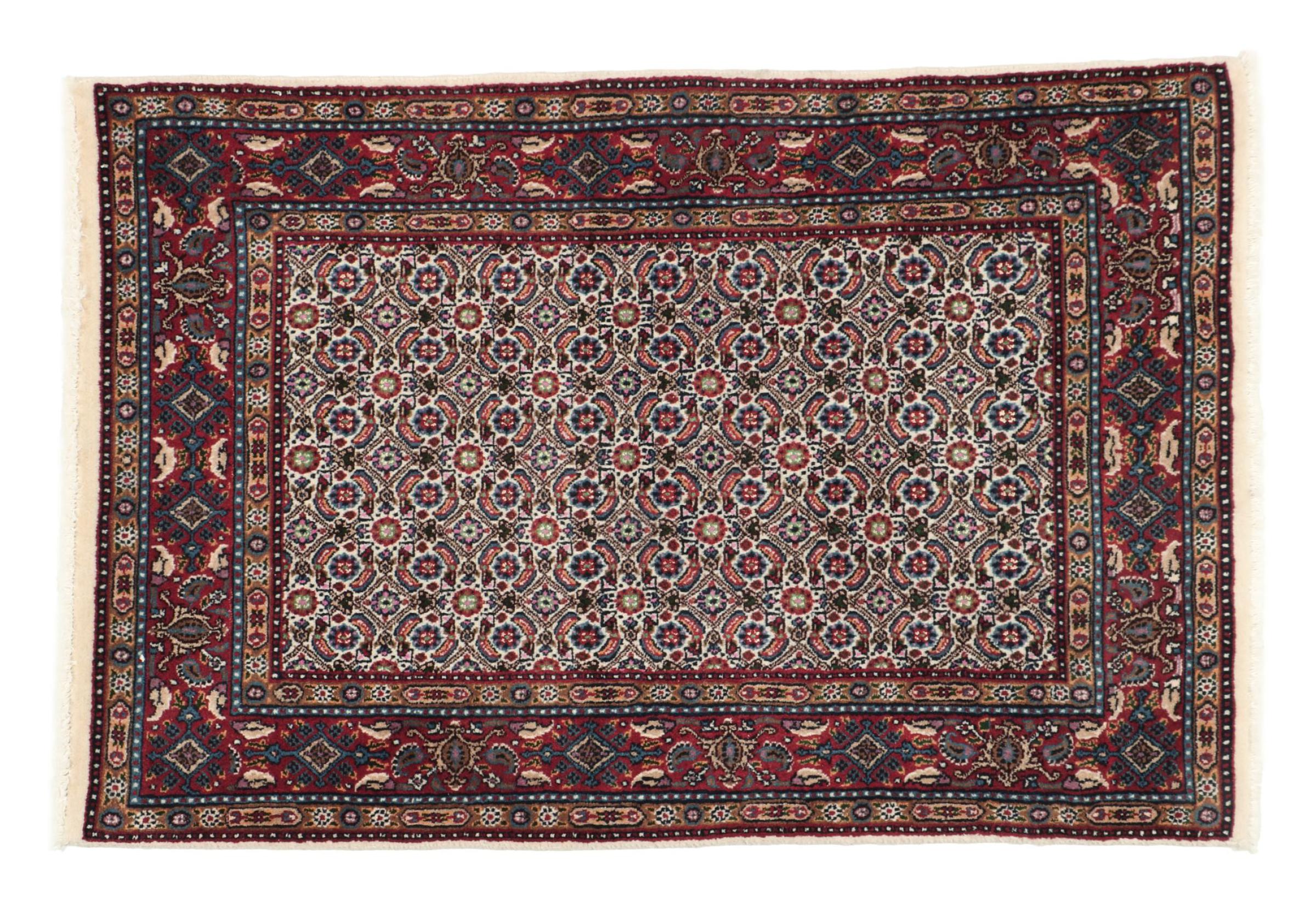 Moud is located in Iran, south of Mashhad. As a city of former Persia, its tradition of rug-making goes back many centuries, if not thousands of years. Hand knotted rugs from Moud enjoy an excellent reputation. They are made with the famous Persian knot. Typically, Moud Persian rugs have a pattern that covers the entire surface. The Garden pattern with motifs from Persian gardens or the Herati pattern.