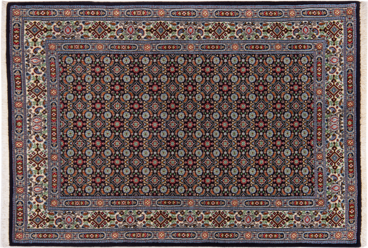 Moud is located in Iran, south of Mashhad. As a city of former Persia, its tradition of rug-making goes back many centuries, if not thousands of years. Hand knotted rugs from Moud enjoy an excellent reputation. They are made with the famous Persian knot. Typically, Moud Persian rugs have a pattern that covers the entire surface. The Garden pattern with motifs from Persian gardens or the Herati pattern.