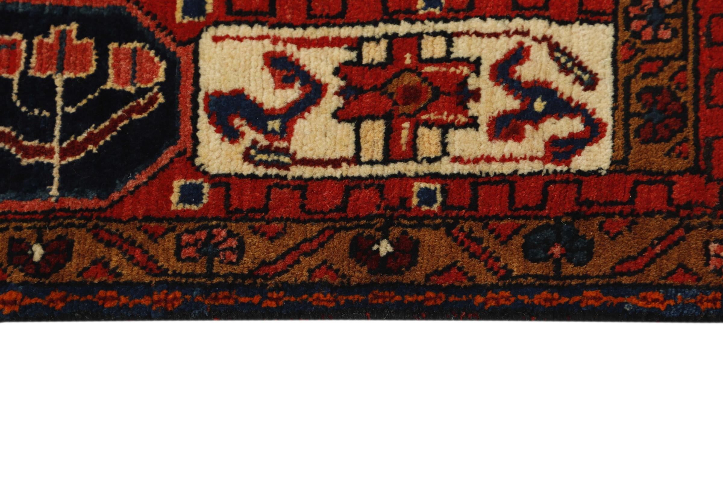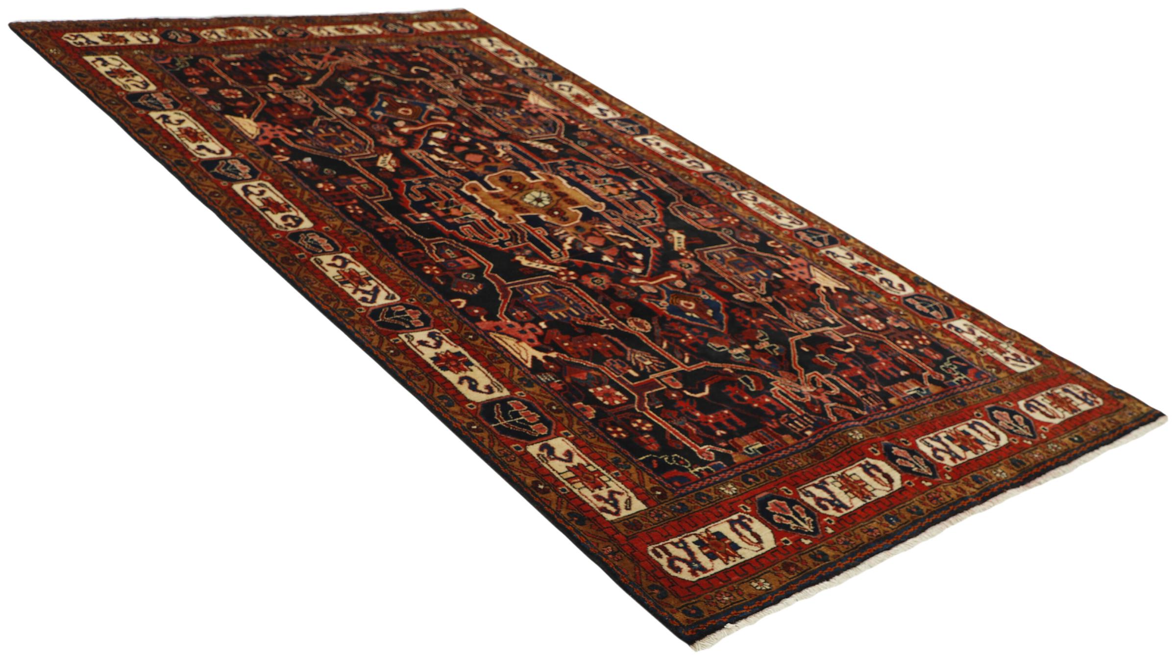 This rug belongs to village and nomadic rugs from Iran, formerly Persia. This type of rug is knotted by hand in smaller towns and villages in old tradition. Even nomads still knot Persian rugs in the open air. The rugs are knotted without a draft and completely from the mind. They are characterized by classical ornaments, which are arranged in straight and geometrical patterns. Thanks to their cultural-traditional origin, these rugs have a unique character that embodies ancient Persia.