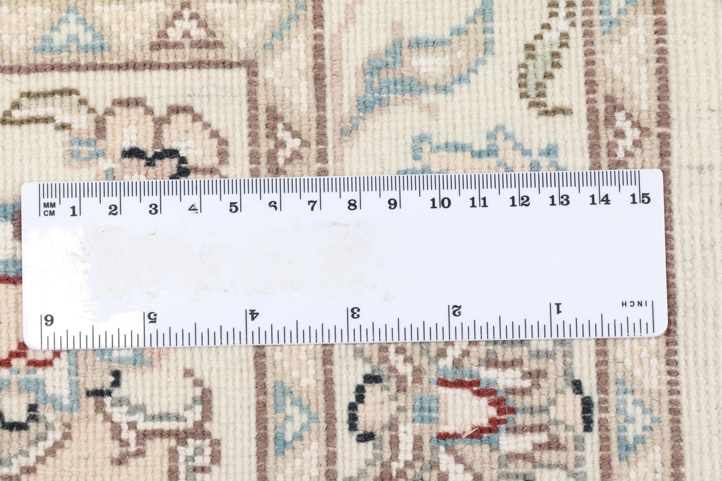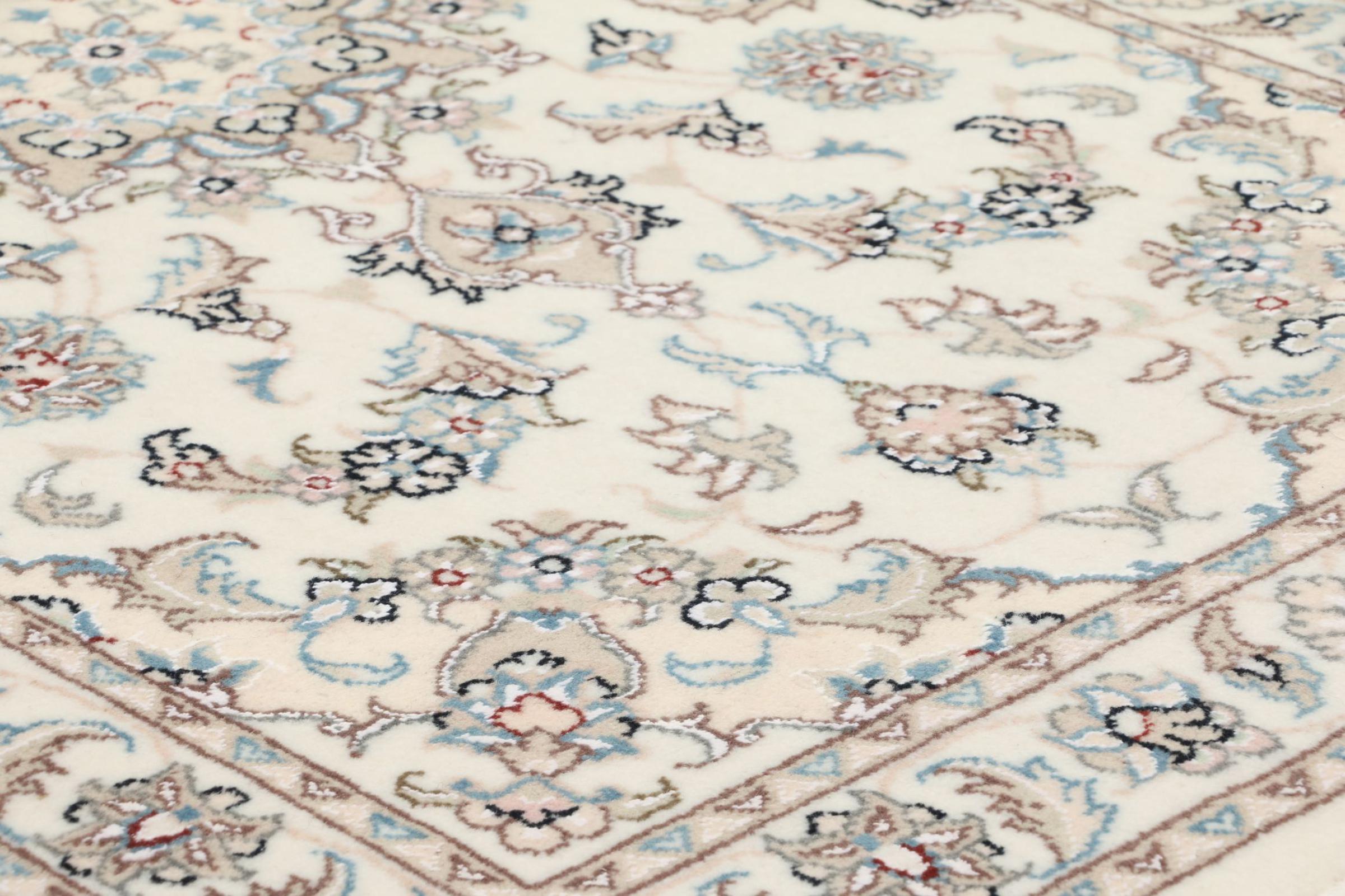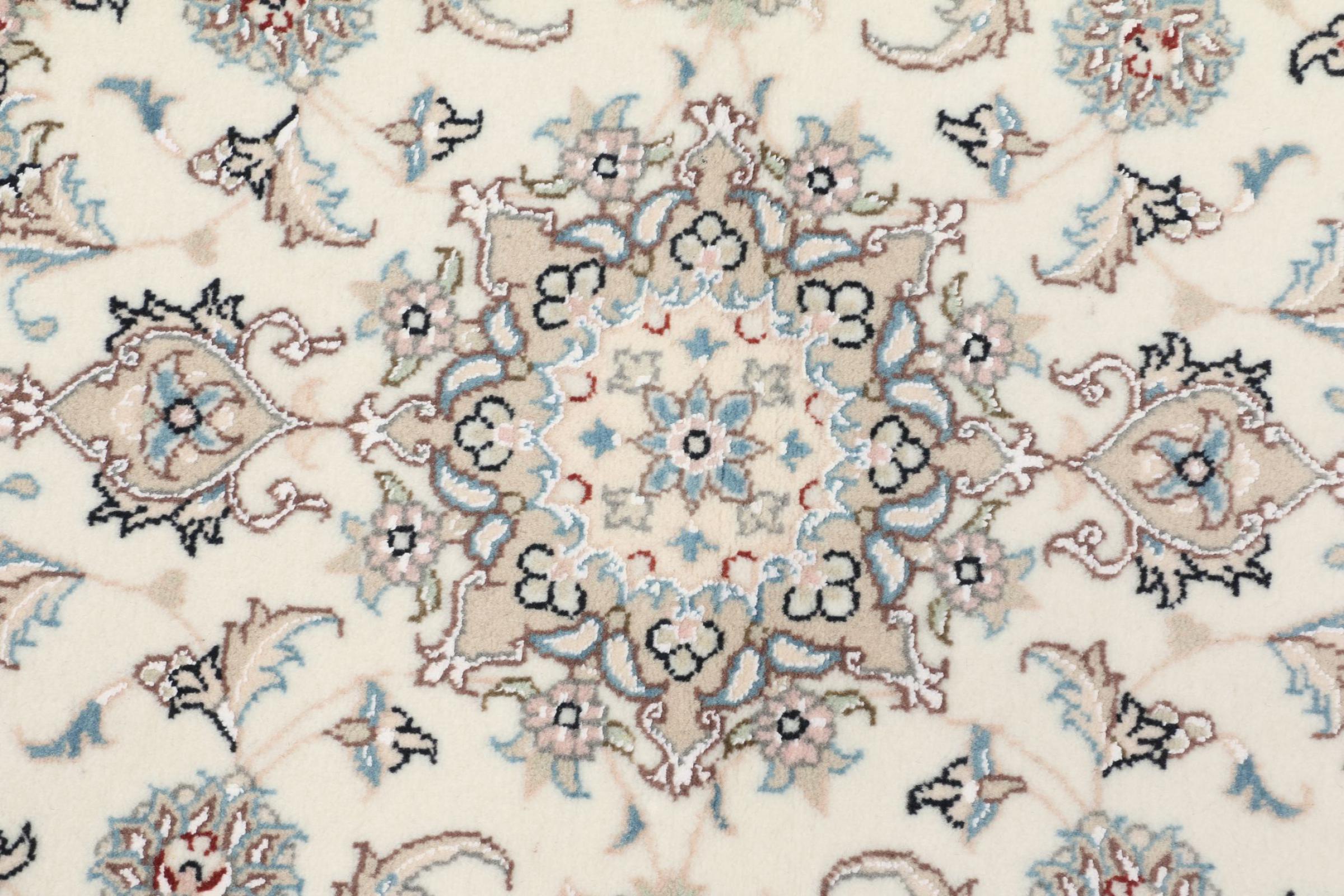 This Nain rug is classified as 9La. The excellent quality, the beautiful oriental design with its curvilinear patterns will delight every buyer. This Persian rug was hand-knotted in the city of Nain, which lies on the western edge of the Dasht-e-Kavir desert, from high-quality wool and natural silk. 9La Nain rugs are significantly finer than a 12La and already show beautiful details.